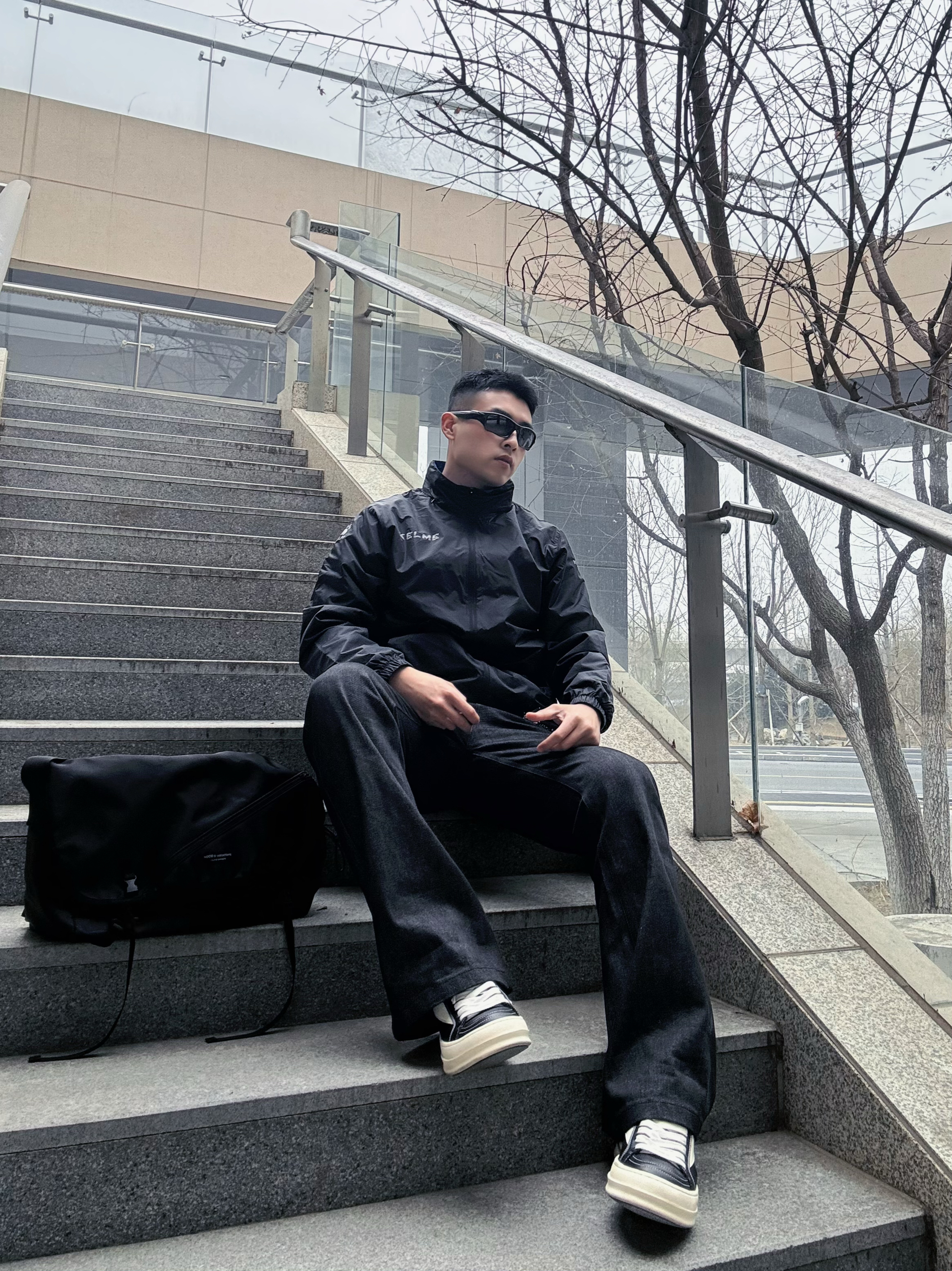 这件风衣真是挖到宝了,正肩版型挺括显精神,防泼水面料刚好应对春夜的小雨。轻薄不压身,看球激动时抬手欢呼也毫无束缚感。 搭条黑牛和大头鞋,墨镜一戴就是cleanfit标准答案。全黑造型不用费脑子,坐在屏幕前或去酒吧都稳稳拿捏氛围感 尺码:180/70 XL