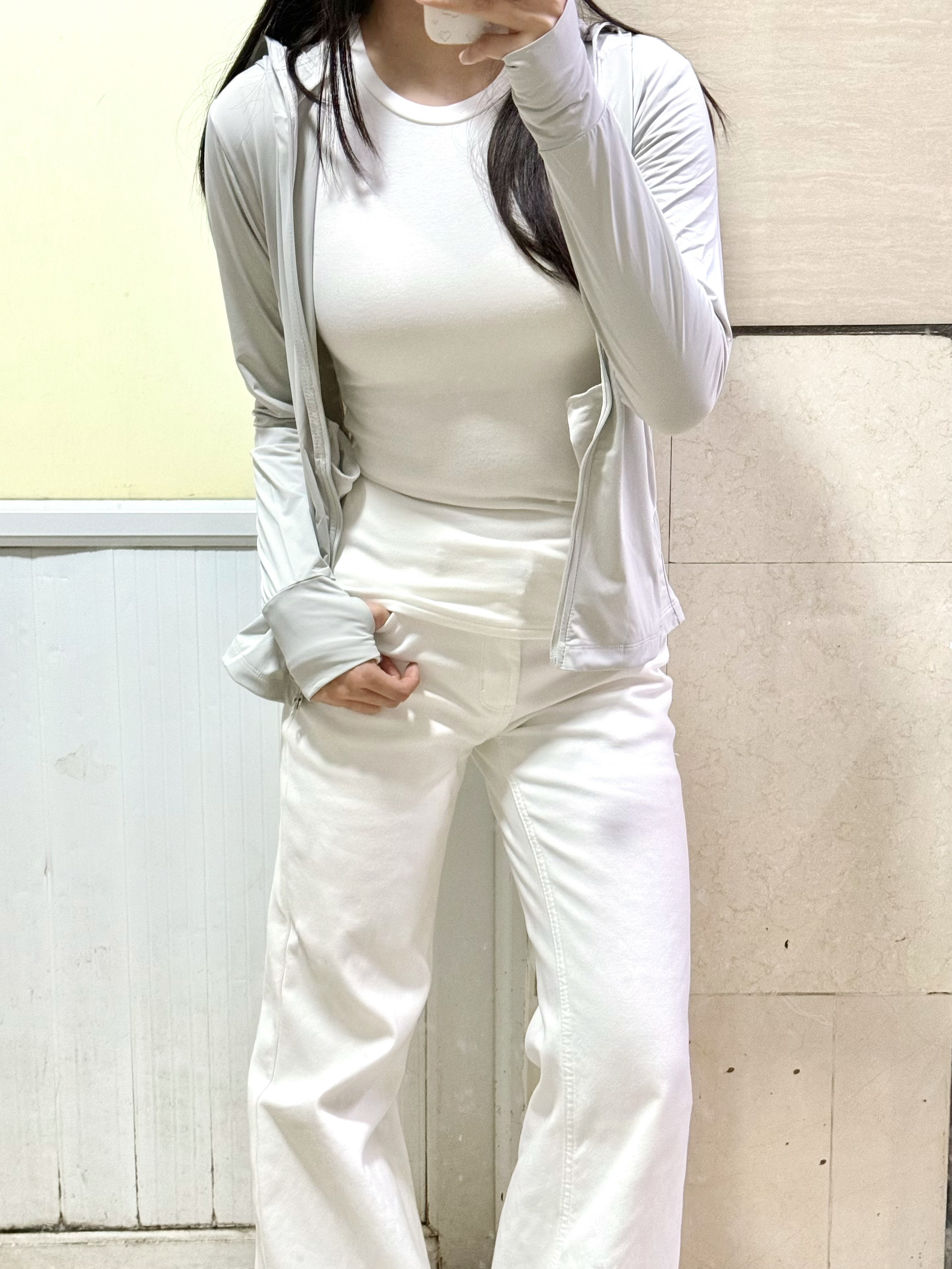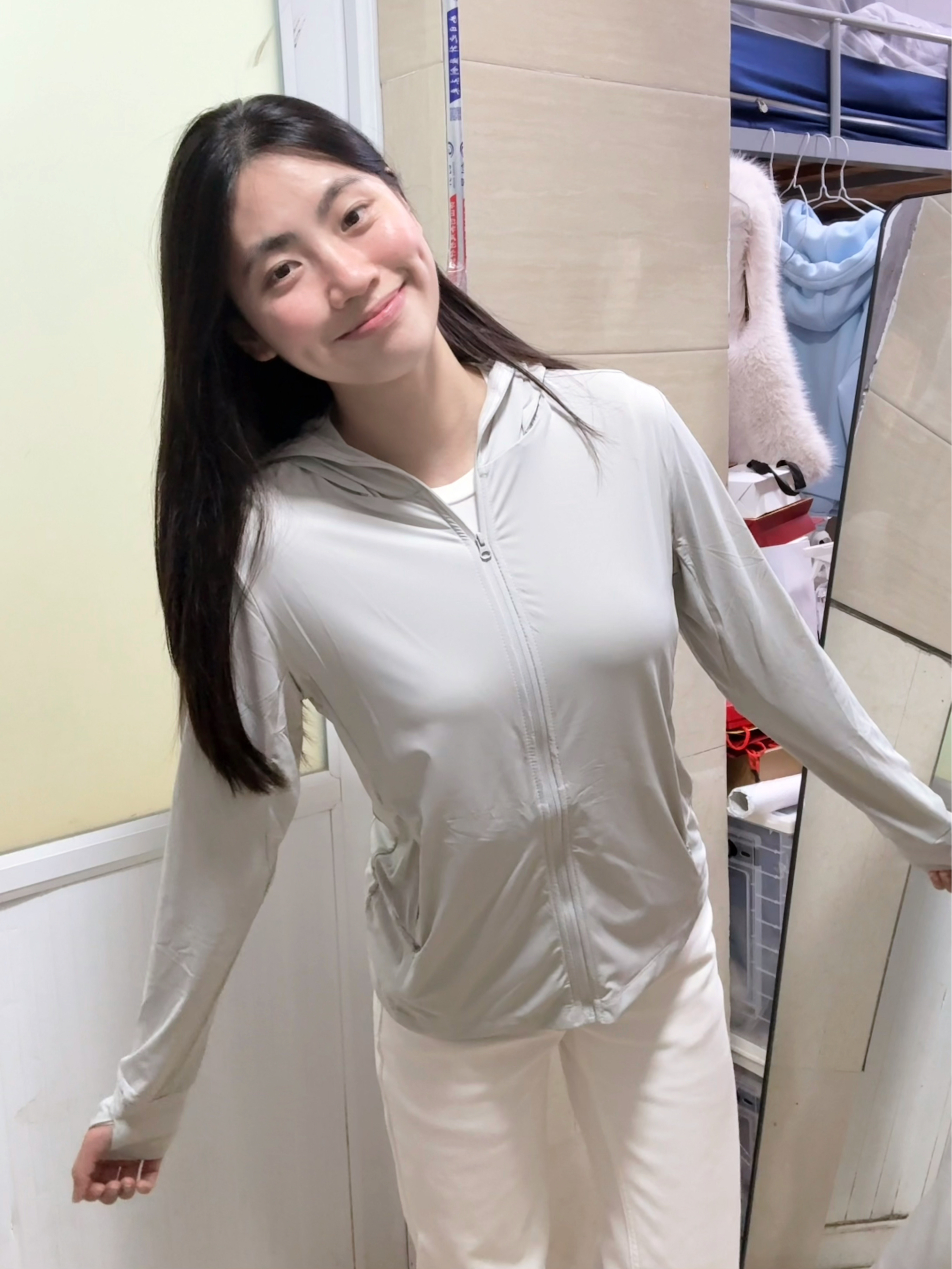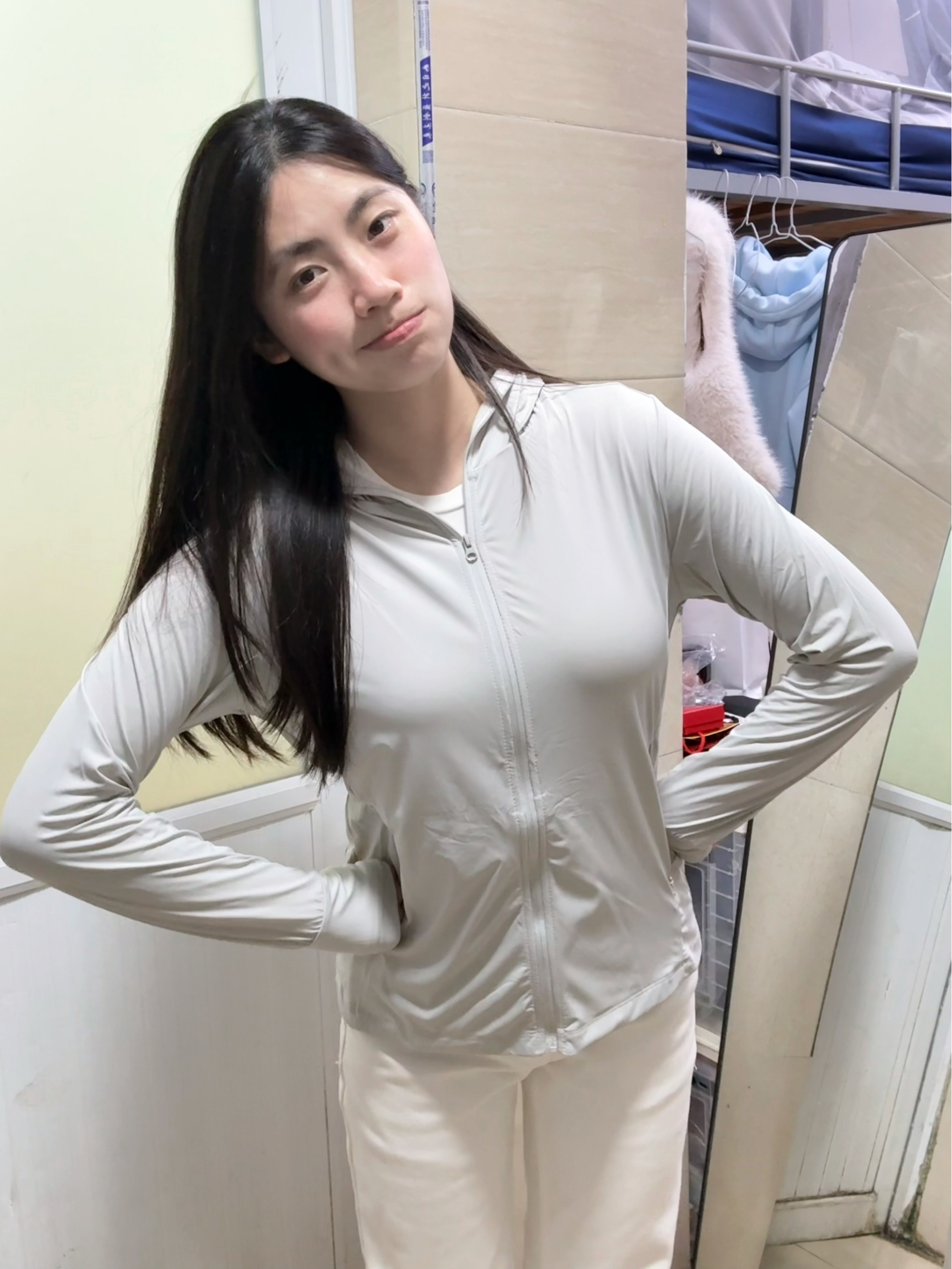 166 102穿的是M码 被这个防晒衣惊艳到了 一拿到手 我就觉得面料摸起来很凉 很舒服 上身真的是那种自带冰感的 而且我觉得版型还蛮显瘦呢 喜欢的宝宝可以参考一下哦