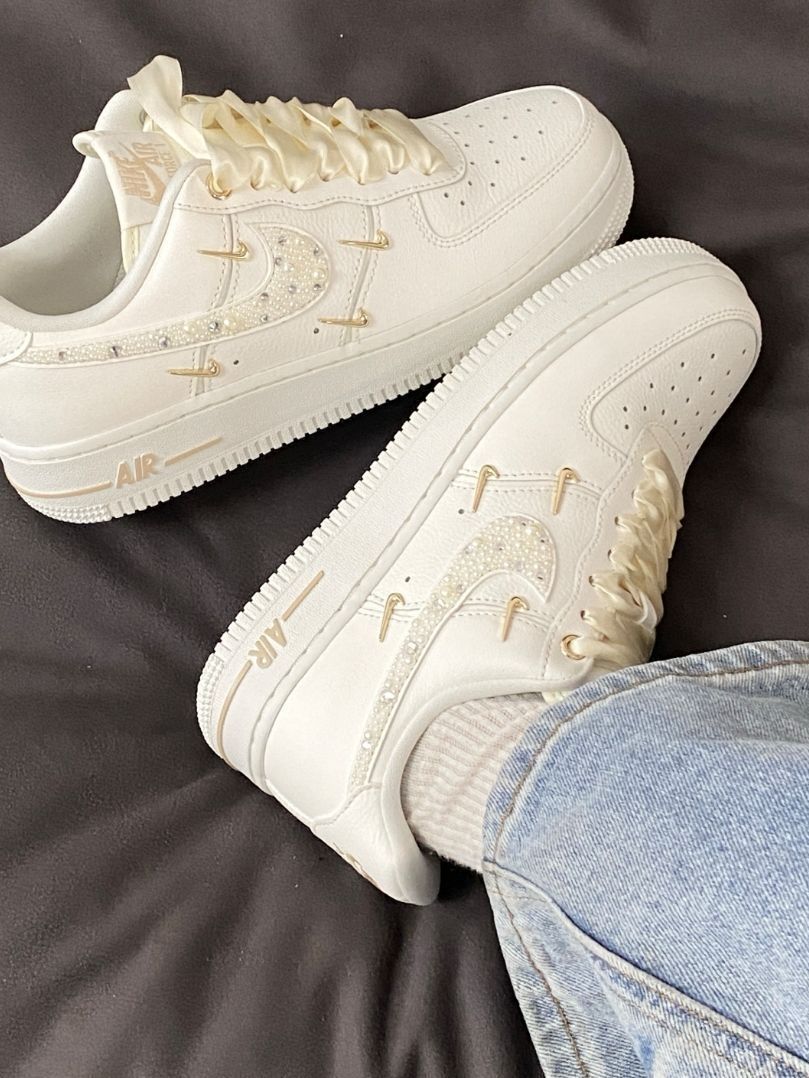 奶白鞋面+蕾丝鞋带+金箔Swoosh,定制款Air Force 1把千金温柔感拿捏得恰到好处,搭连衣裙、牛仔裤都超有氛围感!