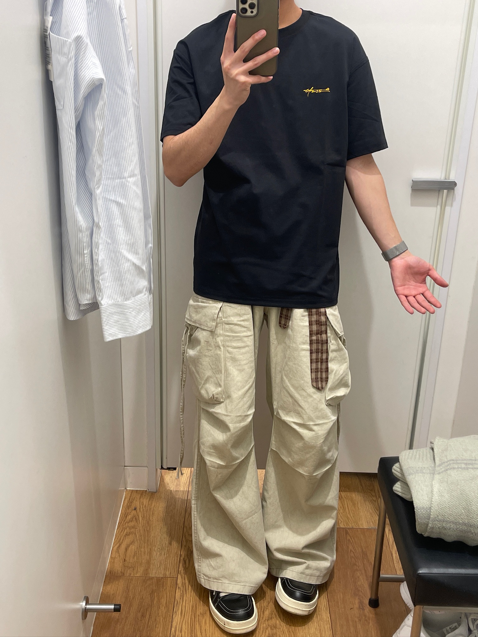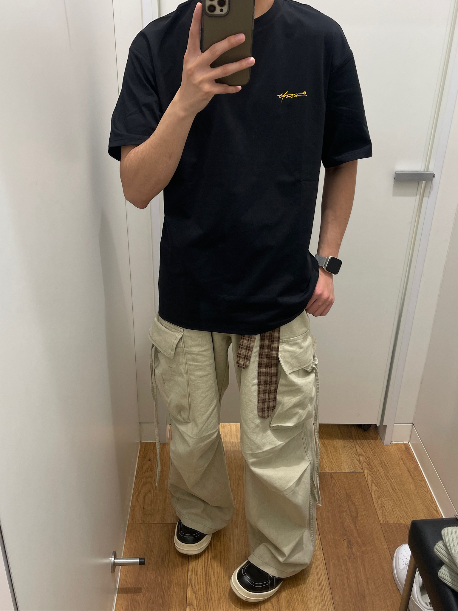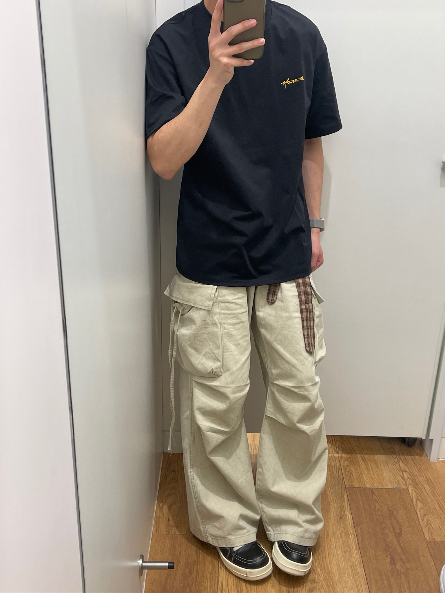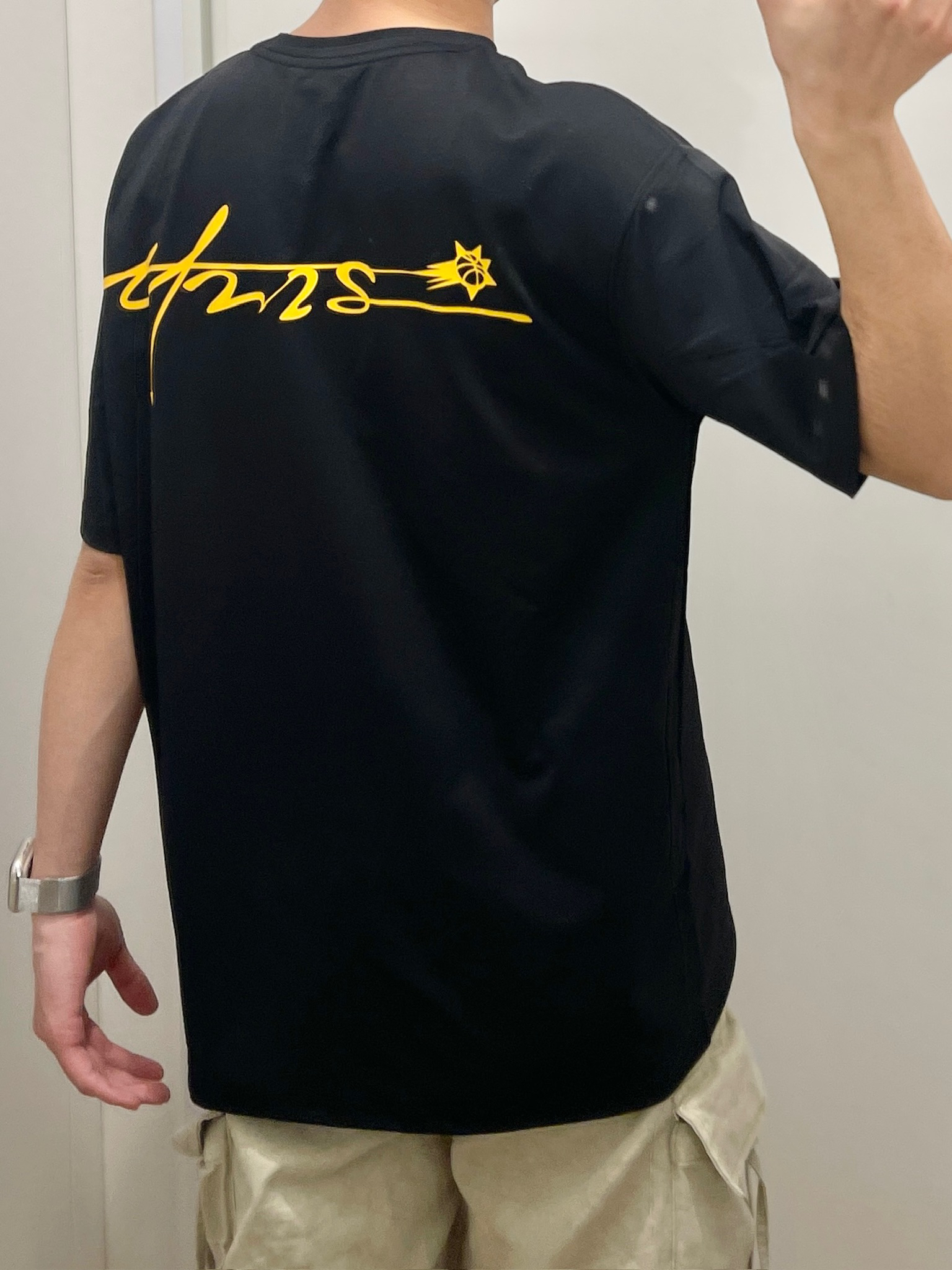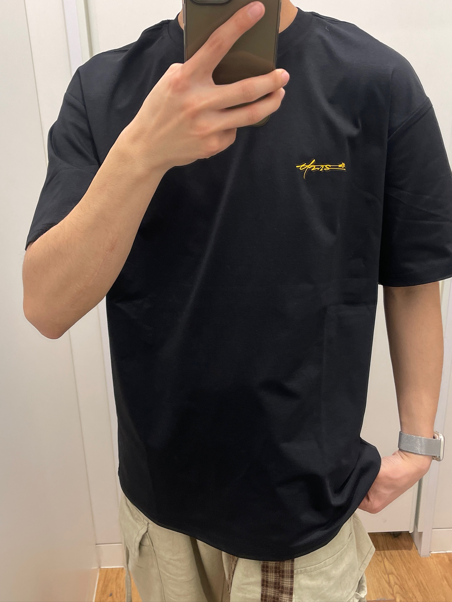 试了这套UZIS黑T+卡其工装裤,真的越穿越喜欢🥹 黑T版型是微宽松的,不会贴身上显臃肿,面料挺括不容易变形。背后黄色流星印花很有街头感,不夸张但辨识度高。我175/62穿M码,长度刚好盖过腰线,配工装裤显腿长,通勤、约会、打球都能穿,实用性拉满~#有志者UZIS# #有志者UZIS信标短袖#