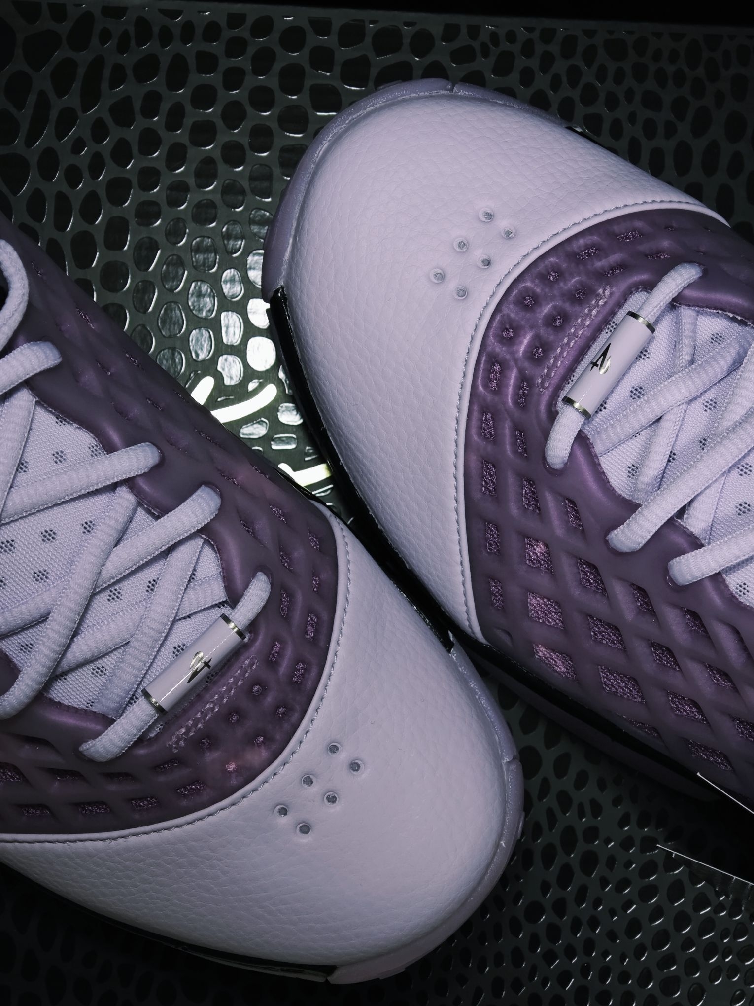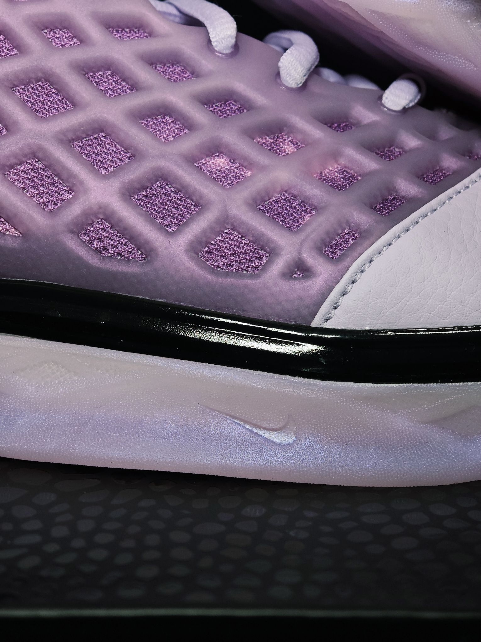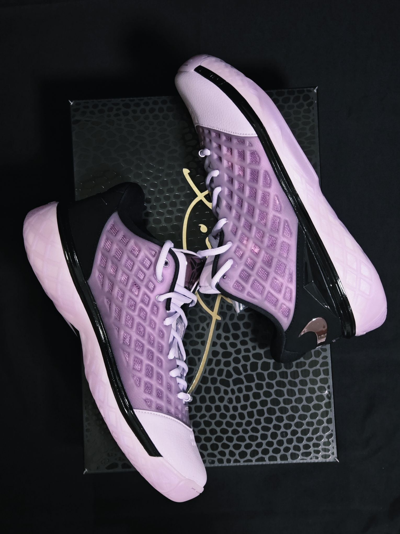 以前一直觉得3代是科比系列中相当普通的一款 万万没想到还能有这样的颜值 钩子把这双原始的高邦设计魔改成了更符合当下审美的低邦 可以说是相当成功 结合一众nba球星的上脚 把科3带回了大众视野 鞋身粉紫色的主体色调 非常清新 很有春天的感觉 十有八九是以花为设计灵感🌸 最后温馨提示 到手之后一定要检查气垫❗️