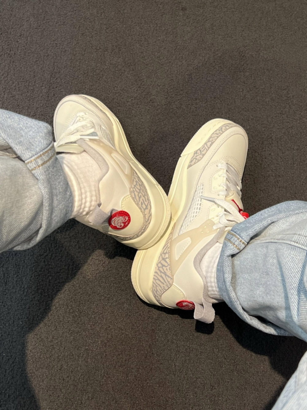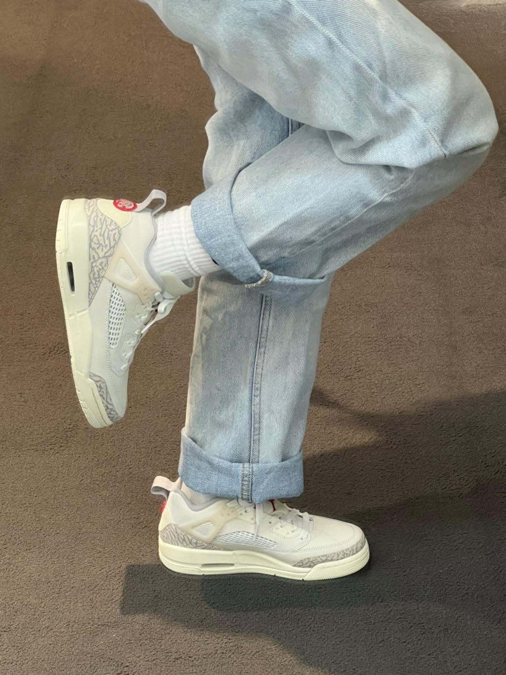 这双Jordan Spizike Low真的把春日干净感玩明白了🤍 奶fufu的米白底色+经典爆裂纹,温柔又复古,越看越上头! • 鞋面采用细腻皮革+标志性爆裂纹材质,肌理感拉满,摸起来软糯又有质感,日常耐脏还显高级 • 低帮版型+利落鞋型,搭配卷边牛仔裤、运动裤都超适配,轻松拿捏美式复古松弛感 • 鞋身点缀的红色小跳标+后跟红圈细节,瞬间点亮整体造型,低调又吸睛,避免了全白的单调感 • ...