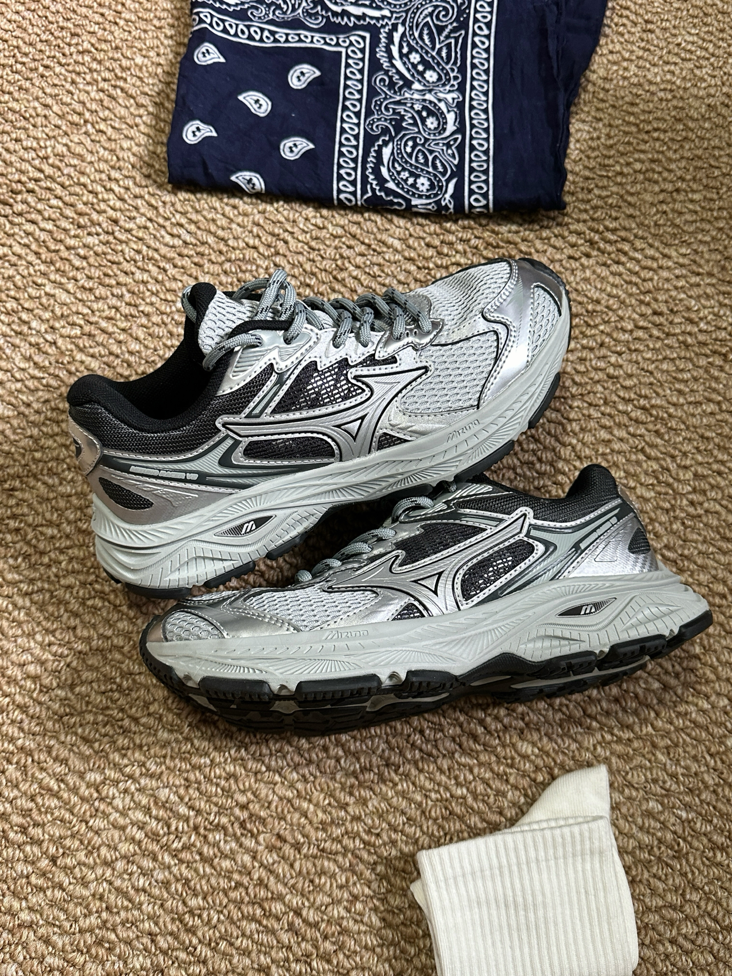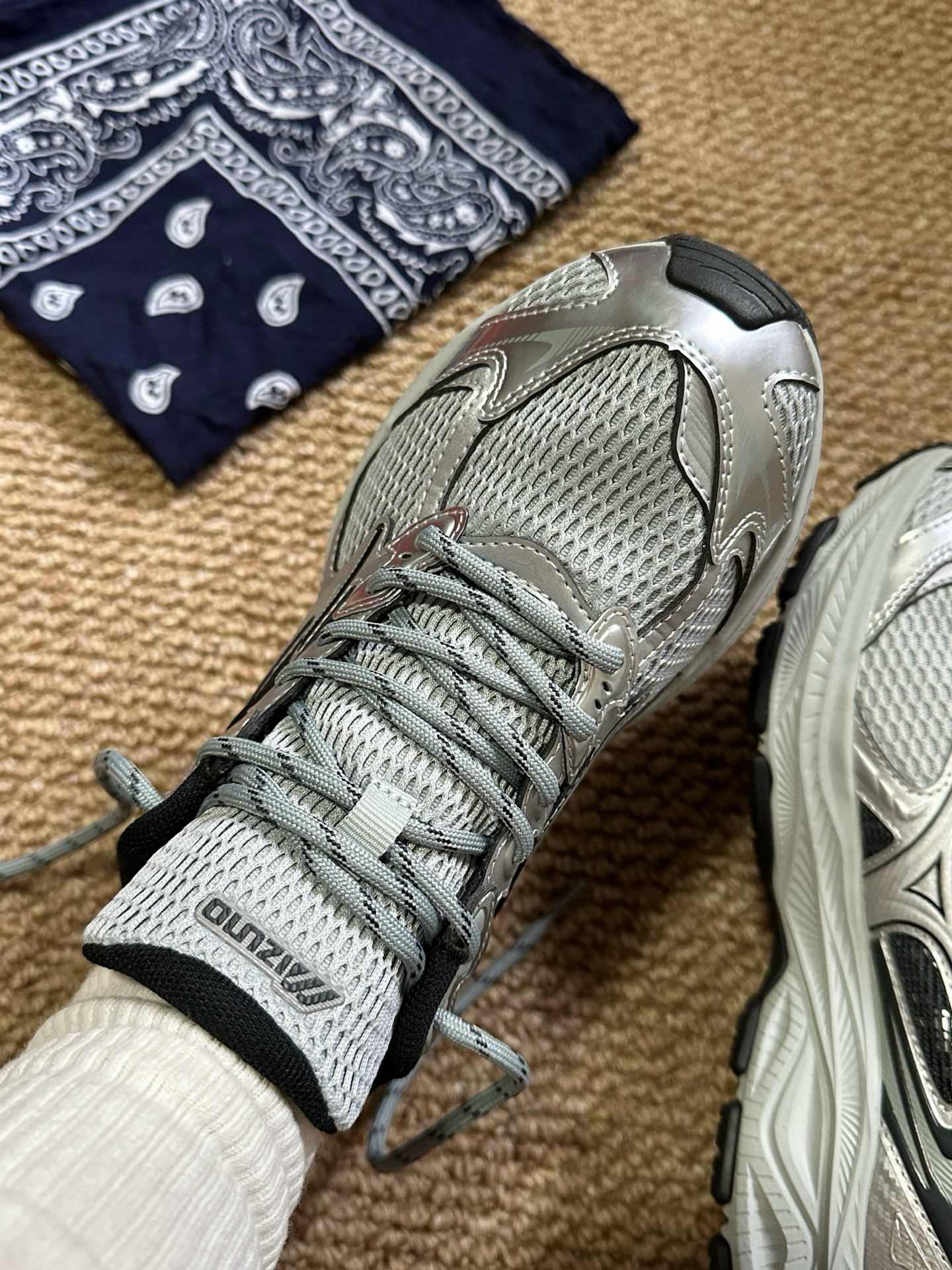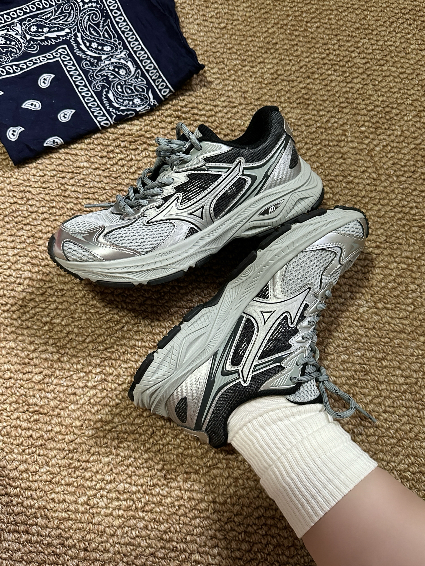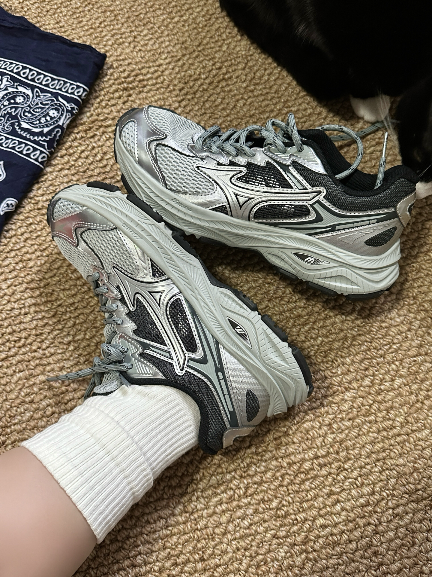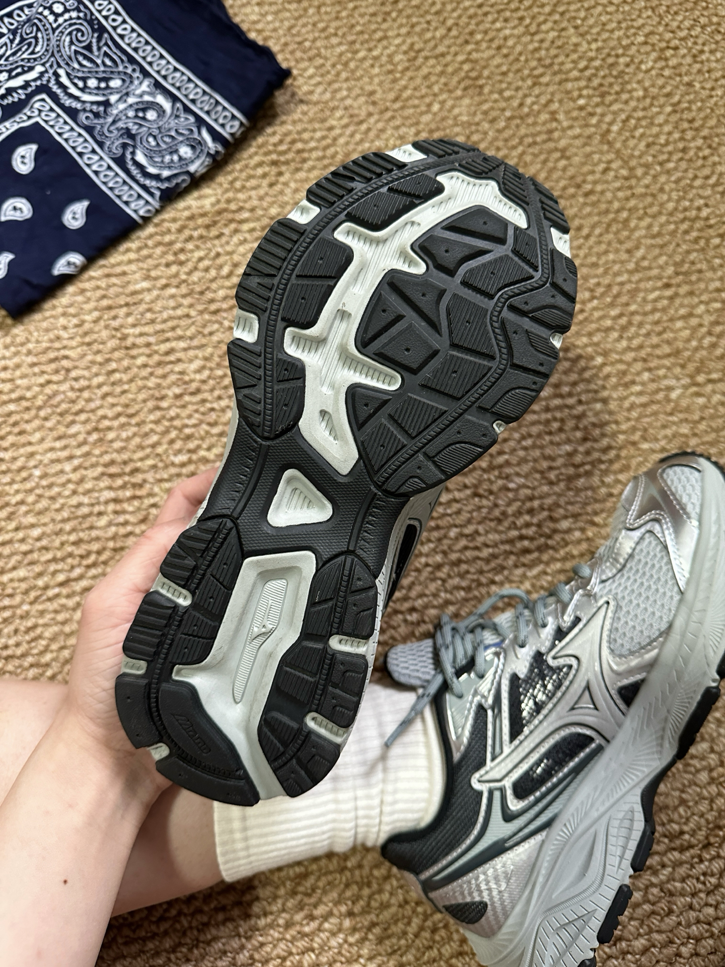 作为日常分享的博主,这双 #Mizuno 跑鞋真的戳中我啦~银灰+黑的配色简约又复古,网面透气不闷脚,鞋底软弹走路久了也不累。搭配白袜或休闲裤都超和谐,通勤、遛弯都能穿,实用性和颜值都在线,真心推荐给喜欢舒适穿搭的朋友~ #单鞋拿捏春日氛围感 #性价比从夯到拉 #此人鞋商极高 #美津浓MIZUNO #跑步鞋高颜值