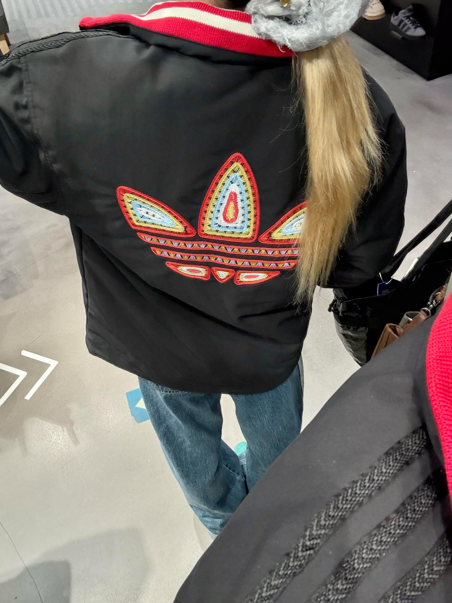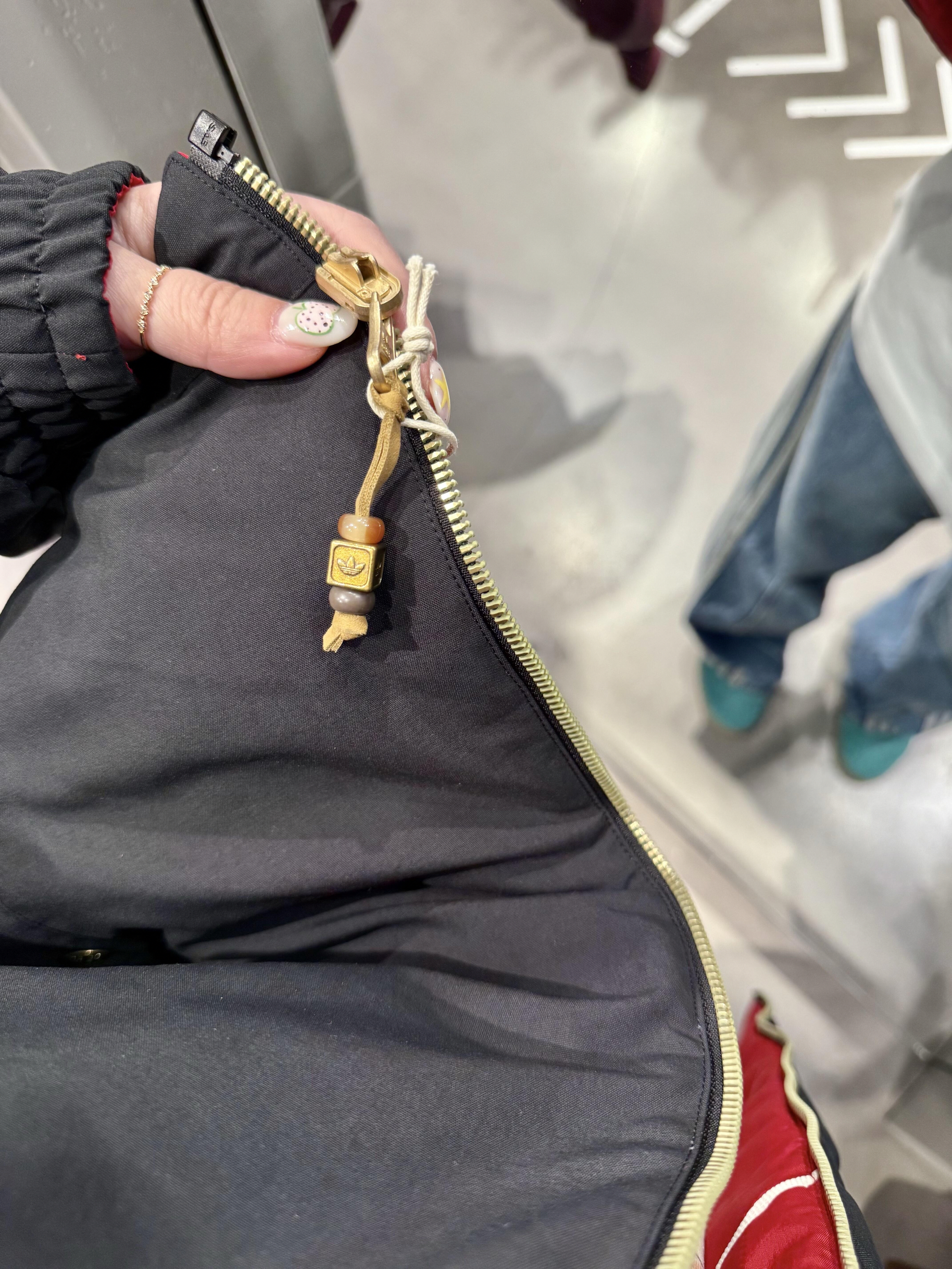 这三叶草黑红拼接外套真的把复古年味感玩明白了🧧 经典黑红撞色+条纹翻领,自带90年代复古运动滤镜,过年穿也太应景了! • 面料是顺滑的防风梭织材质,挺括有型,日常通勤、出街都能抗风,保暖又不臃肿 • 红白条纹翻领+内里红衬,瞬间点亮整体造型,低调又吸睛,年味感直接拉满 • 胸口金色三叶草logo低调点缀,质感拉满,比普通胶印更显高级,辨识度拉满 • 金色拉链+抽绳细节,复古又精致,袖口和下...