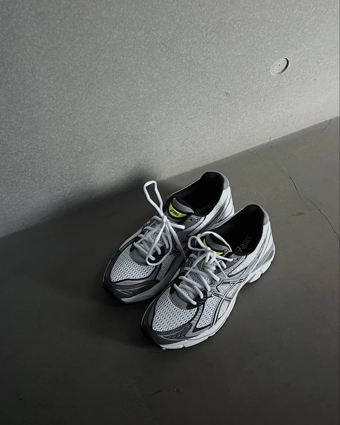 这双蒙特利尔极简美学代表——JJJJound x ASICS GT-2160!🤍 如果说有什么鞋子能让人一眼静下来,那一定是这双纯白配色。干净的白色网面搭配灰色覆层,再用一抹荧光绿点睛,整个鞋面就像一幅精心构图的极简画作 🎨
