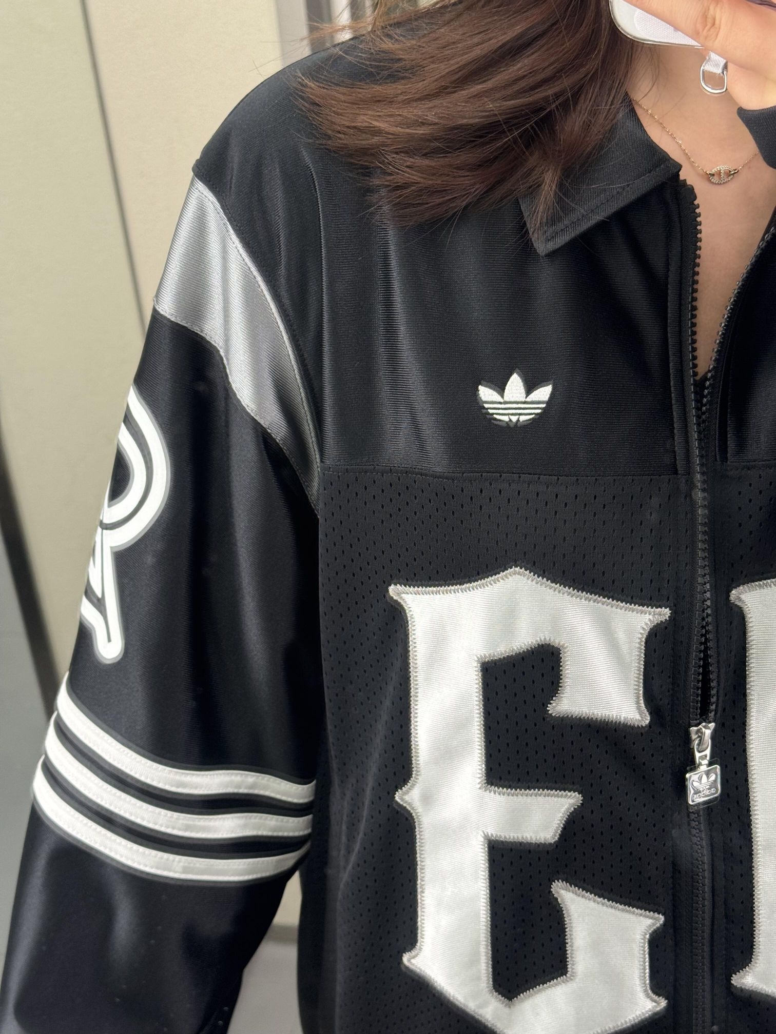 雾霾蓝缎面+网眼拼接,质感拉满又透气超大字母贴布+徽章刺绣,复古学院感直接焊在身上黄蓝撞色肩线+三条杠,细节控狂喜搭牛仔裤就是美式辣妹,春天穿去炸街超吸睛!