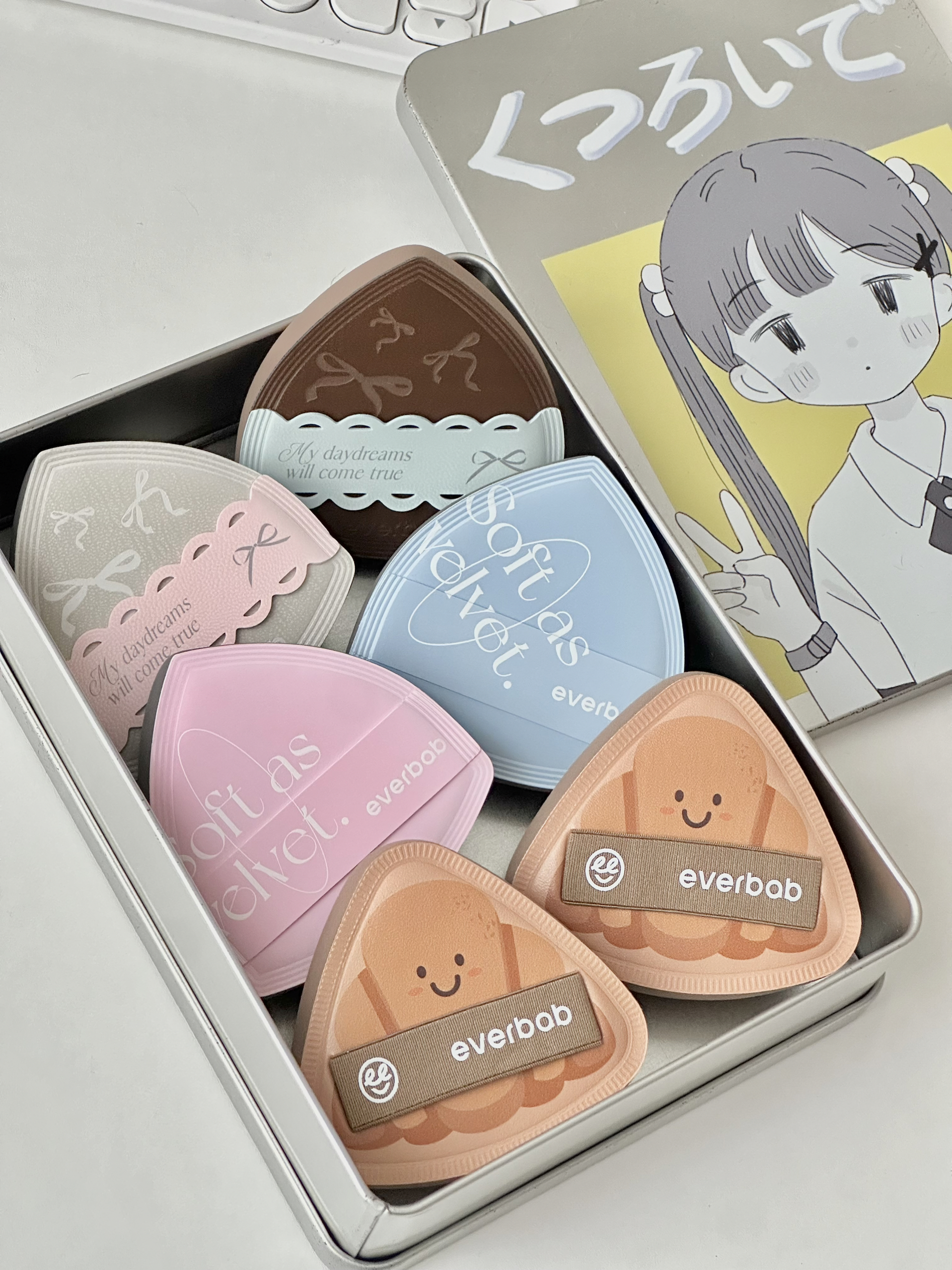 太喜欢everbab这次的新品啦 All in回来拆开 我一整个心情大好 软糯Q弹的大粉扑上粉底还挺均匀滴! 生巧可颂三角粉扑 XL加大号,几下拍完全脸,早八懒人必备!厚实回弹不吃粉,边缘无死角,底妆服帖到像长在脸上! -蝴蝶结奶皮粉扑 蝴蝶结压纹配蕾丝缎带,少女心炸裂!Q弹奶皮质感,干湿两用,膏类液体底妆通吃,眼下鼻翼都能照顾到 睫毛夹也是可以照顾到我的边边角角短睫毛啦! 睫毛膏也是我很喜欢...