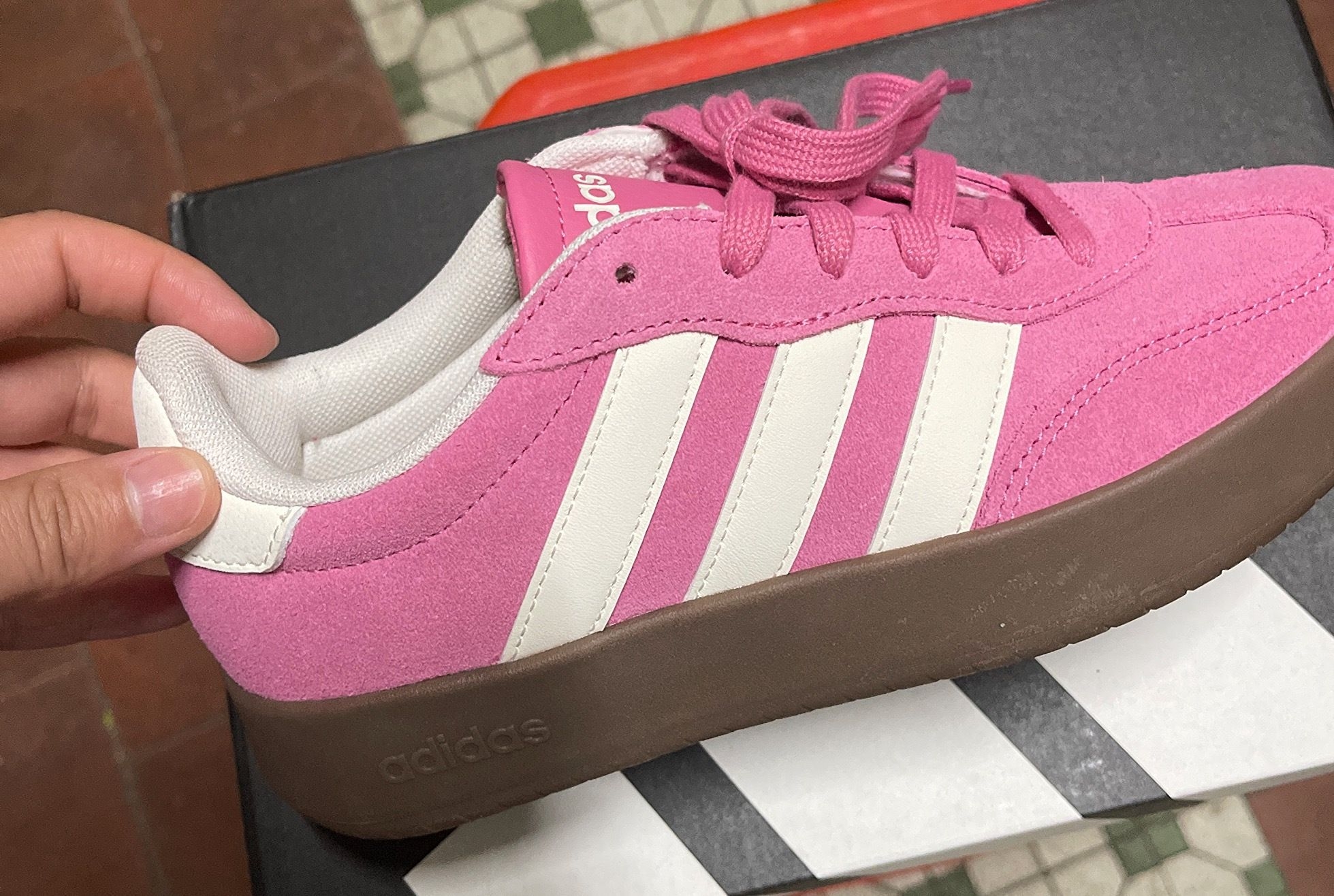 本篇笔记关联了adidas Barreda 运动休闲鞋 T头鞋 德训鞋 低帮牛剖层革薄底轻运动支撑平跟圆头 粉色/汉玉白色等商品,为用户提供真实的使用体验和购买参考。