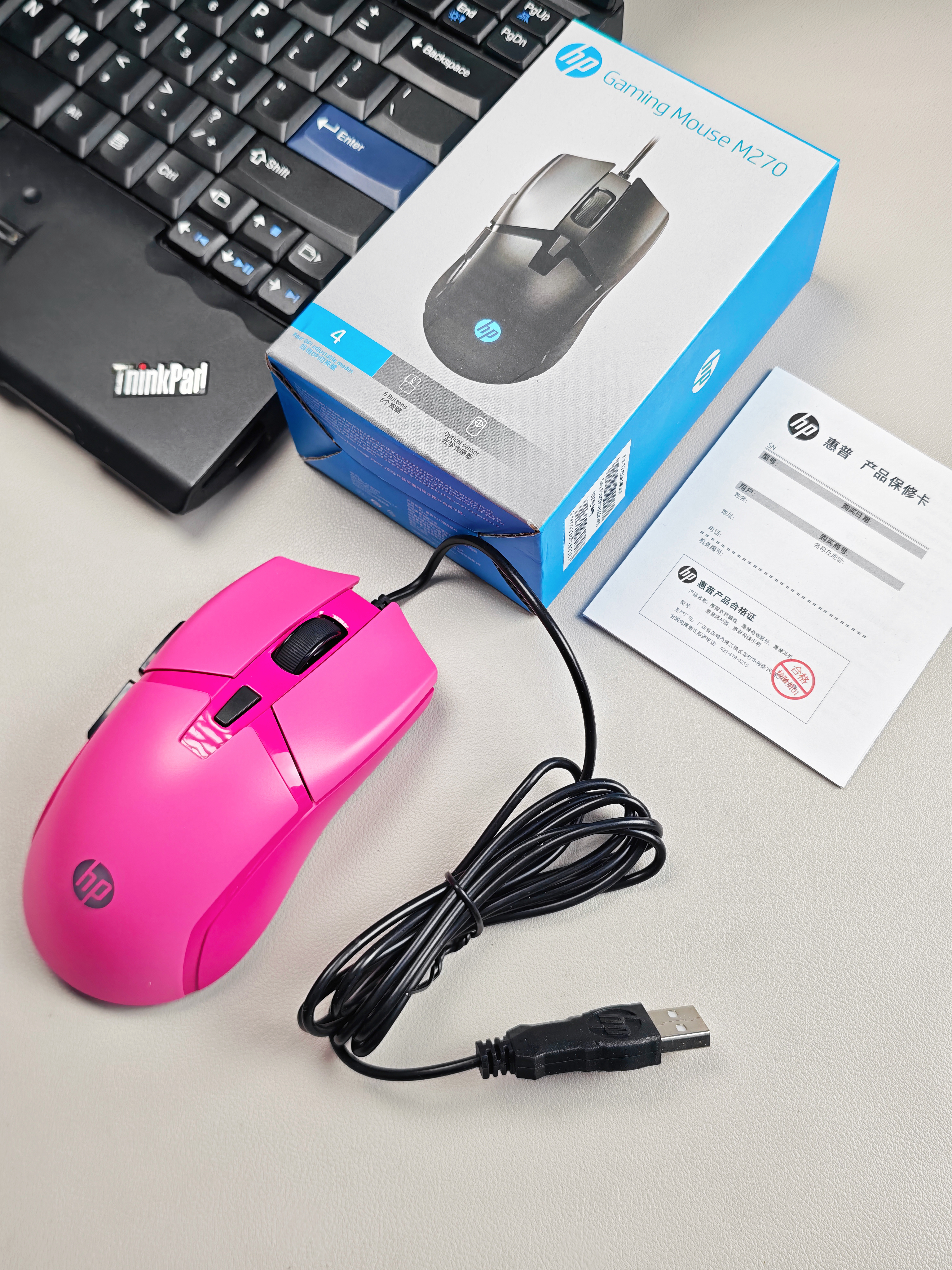 只要家里有电脑的,不管有多少个无线鼠标🖱️,我觉得都要多备一只靠谱的有线鼠标(有过重装系统经历的人都懂)。当然如果你喜欢玩电脑游戏,那它就更不可少了。 我手里这只看起来又香又艳的玫红色鼠标,是HP的 M270,只要 30 多块,就是一杯拿铁☕️的价格。 虽然价格不高,但是体验却很实在:它只有 108 克的重量,轻量化设计,宽体造型,能适配大多数人的手掌🖐️,基本上可以满足把手搭在上面、保持很...