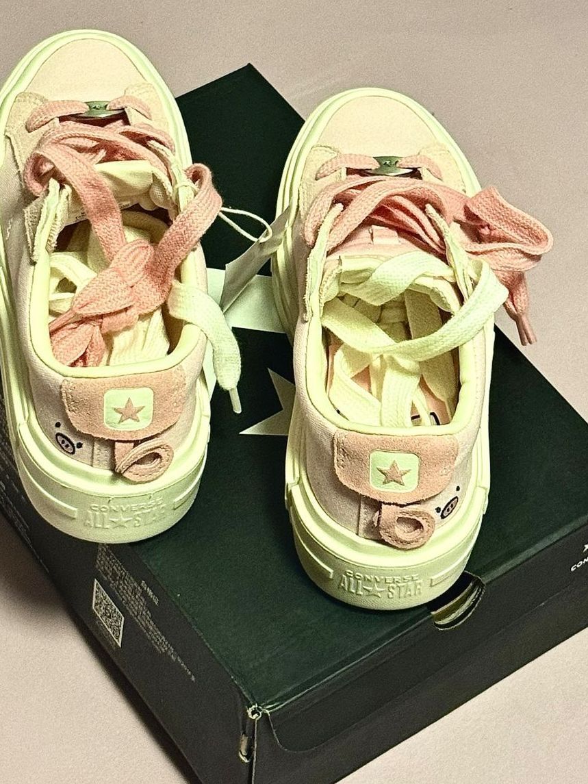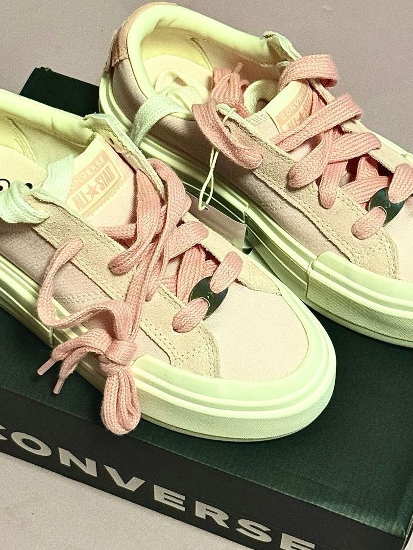 谁懂啊!这双粉匡威把温柔感拉满~浅粉鞋面+奶绿厚底,撞色设计清新又少女,软乎乎的太戳人。