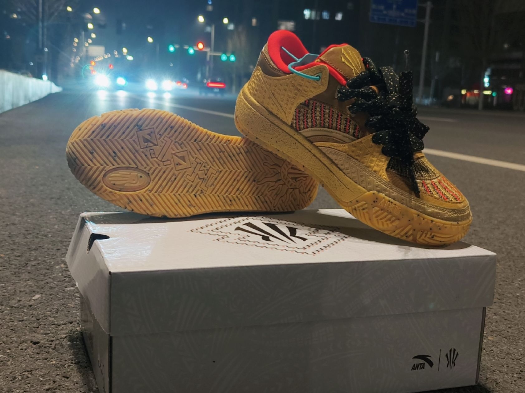 追欧文这么多年,他的鞋基本都收过。 自从与安踏签约后发布的签名显示越来越潮,颜值都十分的耐打。 🏀 欧文元素: 1️⃣ 配色:Kyrie标志性的黄黑撞色,懂的自然懂(想起哪些经典战靴了没?) 2️⃣ 细节:鞋舌内侧的欧文个人图腾(见图4),后跟的Logo刺绣,处处是彩蛋。 3️⃣ 气质:这双鞋给人的感觉,就像欧文的球风——华丽、灵动、不按套路出牌。 👟 上脚感受: 虽然是板鞋,但保留了篮球鞋...