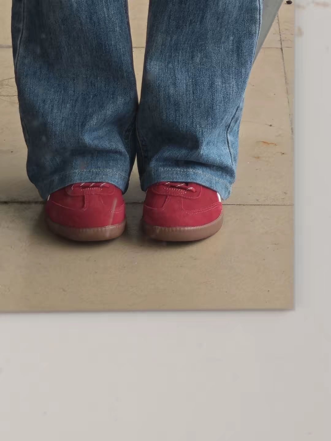 - 外观:复古红+生胶底,麂皮质感高级,小众不撞款 - 舒适度:薄底轻便,包裹感好,久穿不累脚 - 搭配:微喇牛仔裤+红德训=复古氛围感天花板,拍照巨出片 - 细节:红绳鞋带+侧条设计,细节拉满,辨识度超高 唯一的缺点就是太好看了,怕很快断码