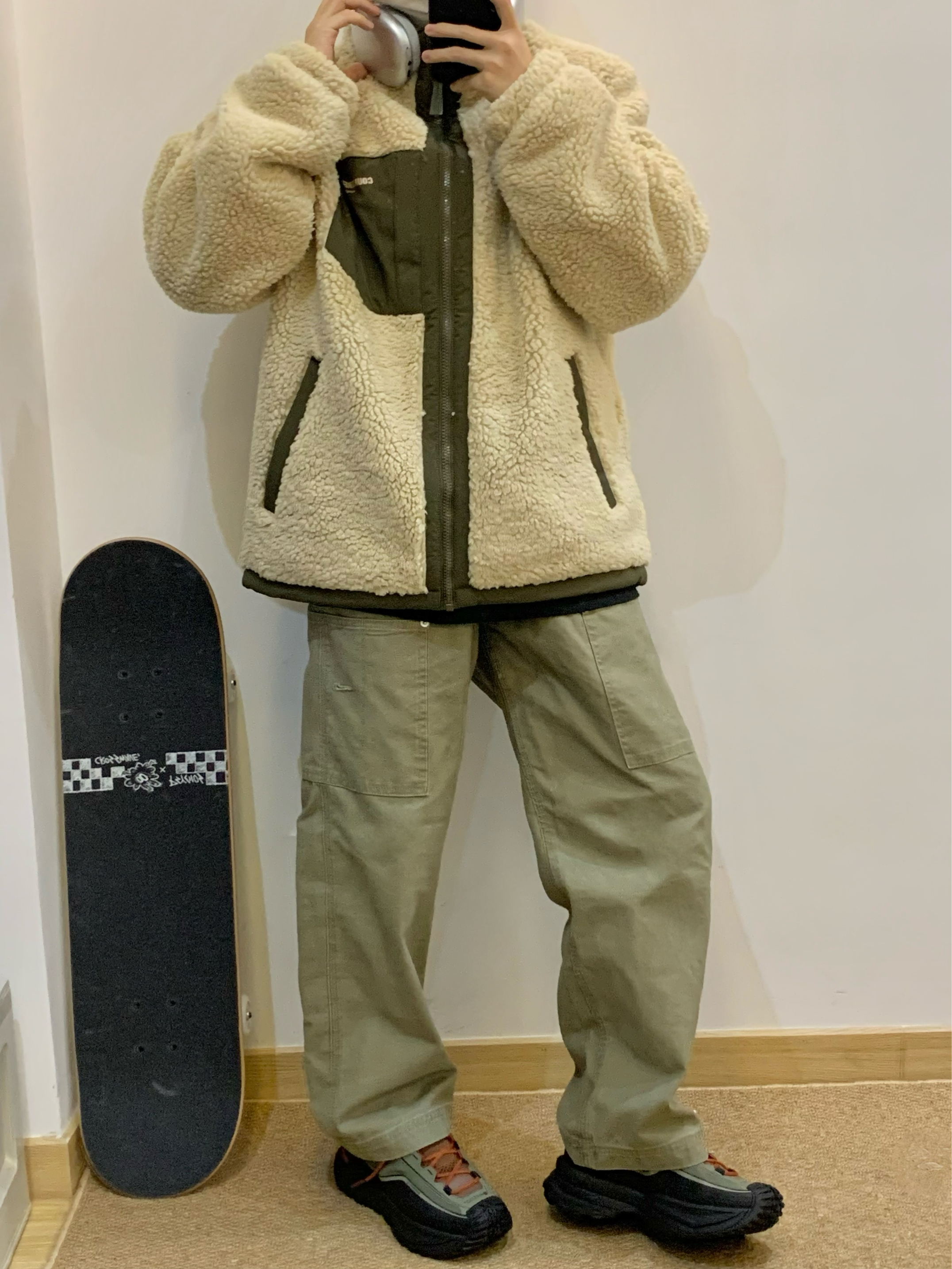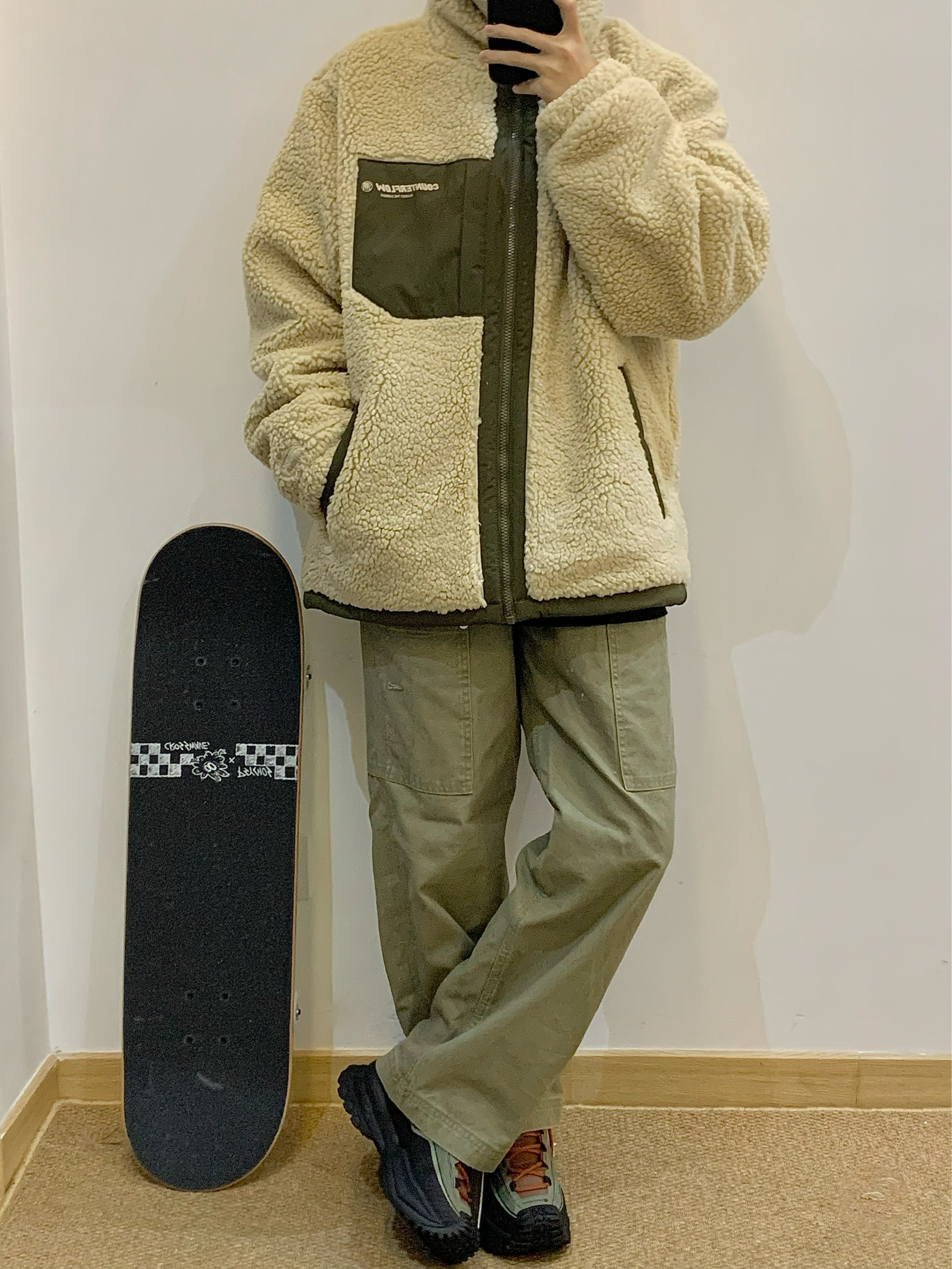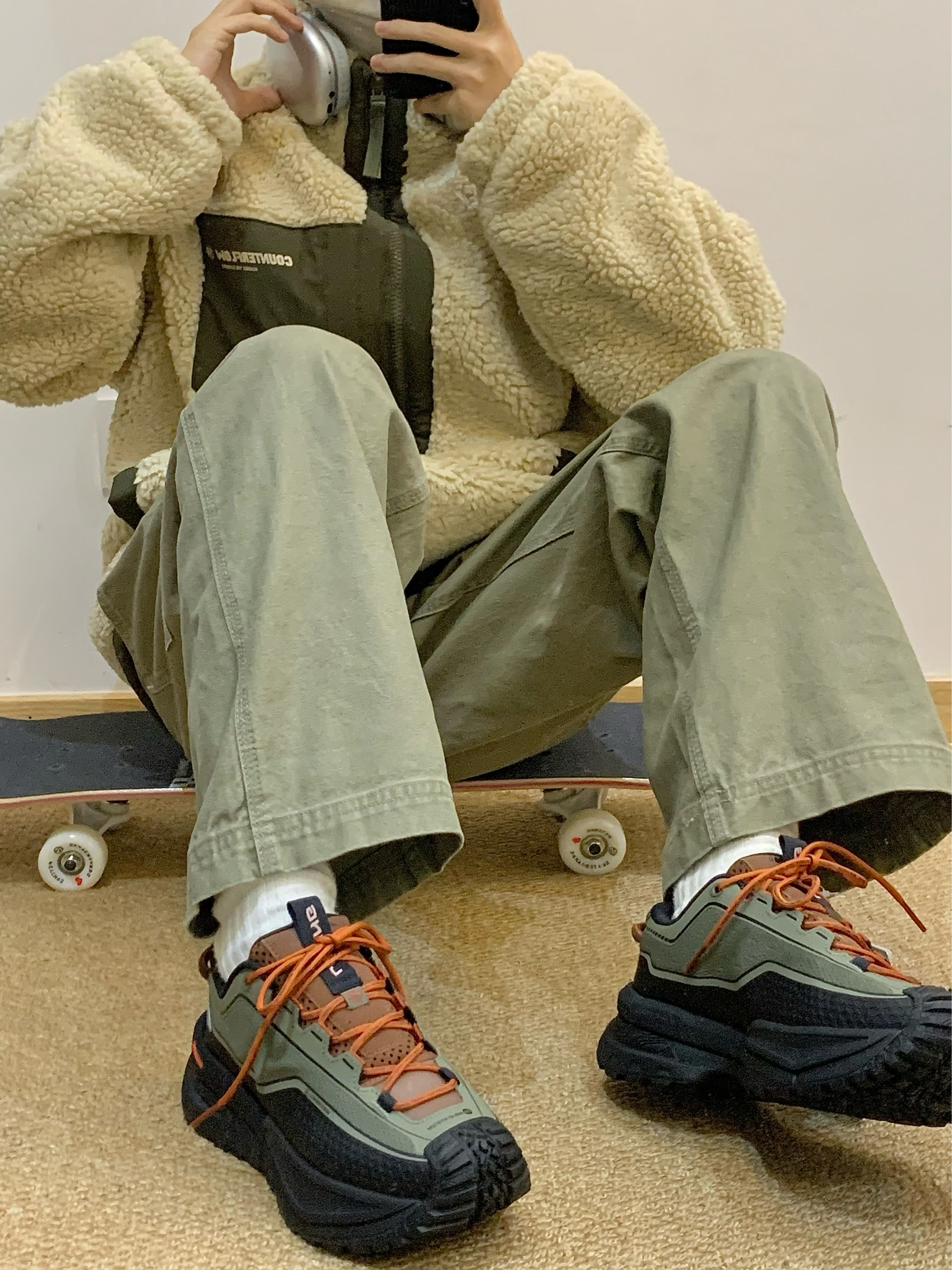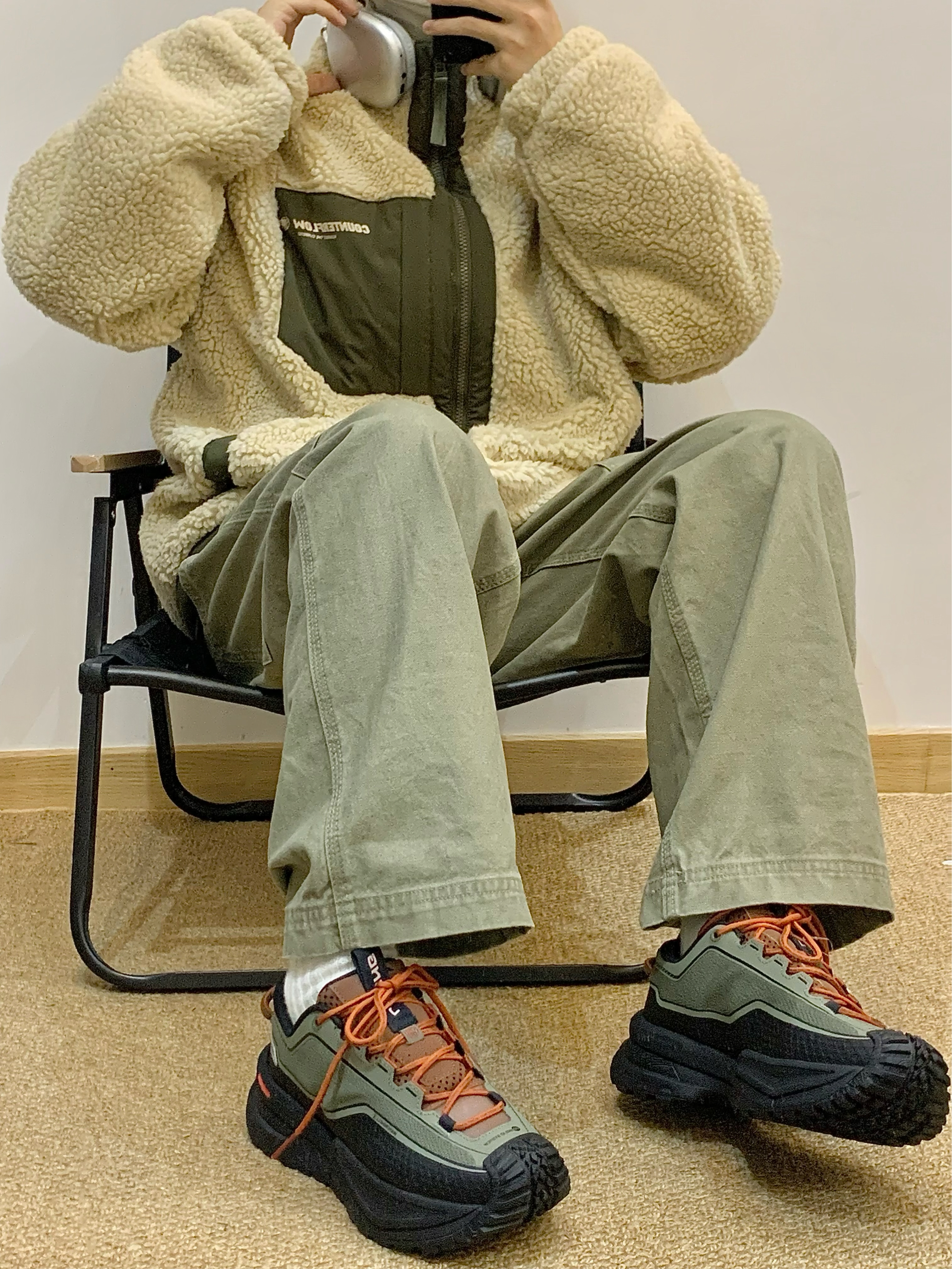 复古休闲的米绿撞色搭配 羊羔毛面料软糯又保暖 包裹在温暖里 享受属于自己的降温安全感 搭配同墨绿拼色休闲徒步鞋 轮胎鞋底的造型很特别 日常和户外都超合适的 👔:Li-Ning 👟:Li-Ning