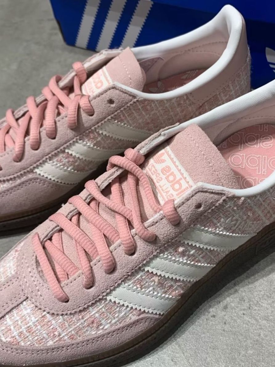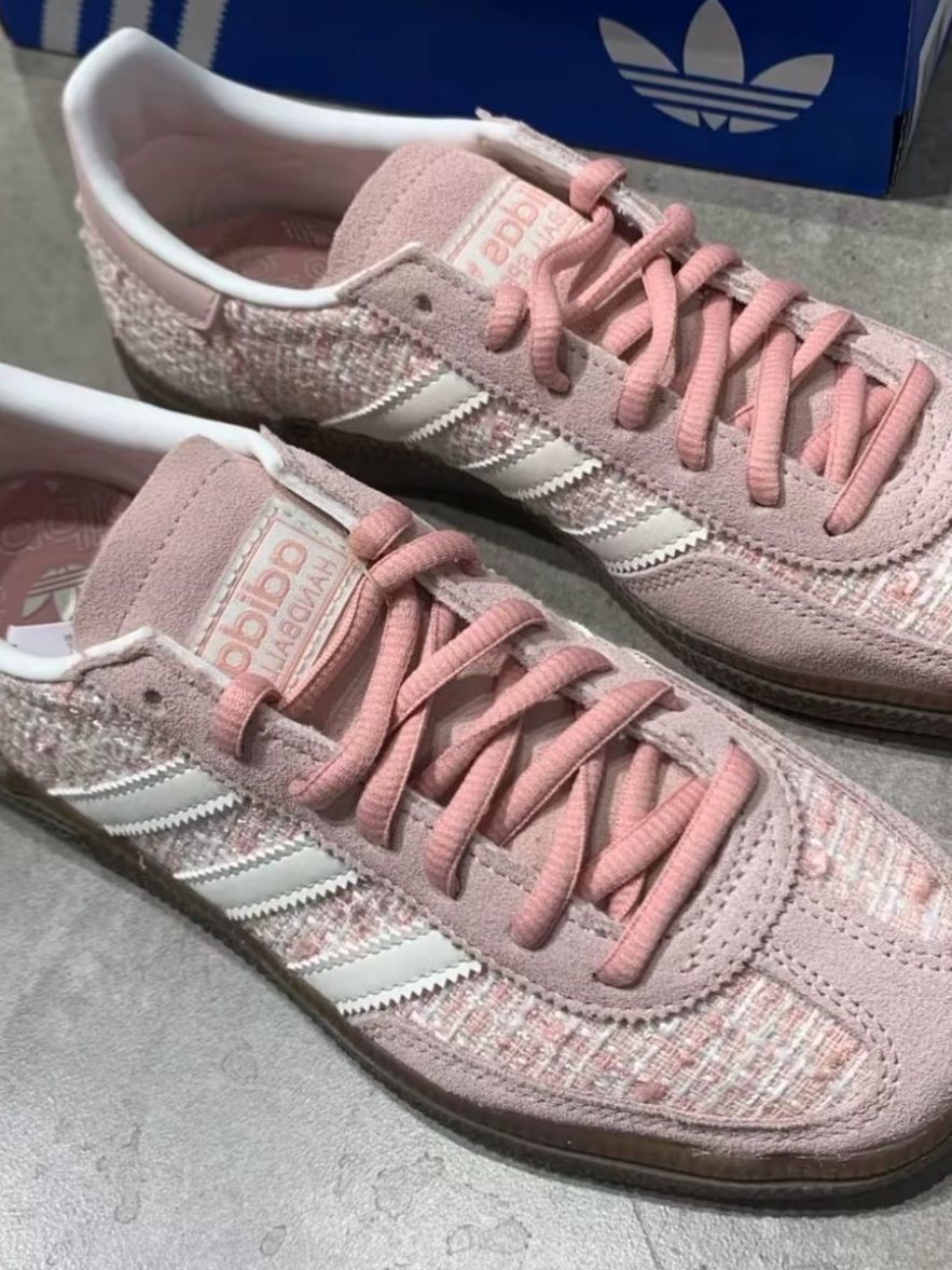 谁懂啊!这双adidas小香风粉鞋真的戳中少女心✨ 粗花呢纹理+奶fufu的粉色,温柔又显贵 生胶底+经典三条杠,复古感拉满 搭配牛仔裤/百褶裙都超绝,早春氛围感直接拉满 马思纯同款果然好穿又好看,日常通勤、约会都适配~
