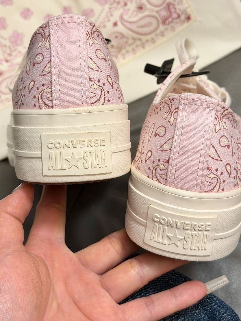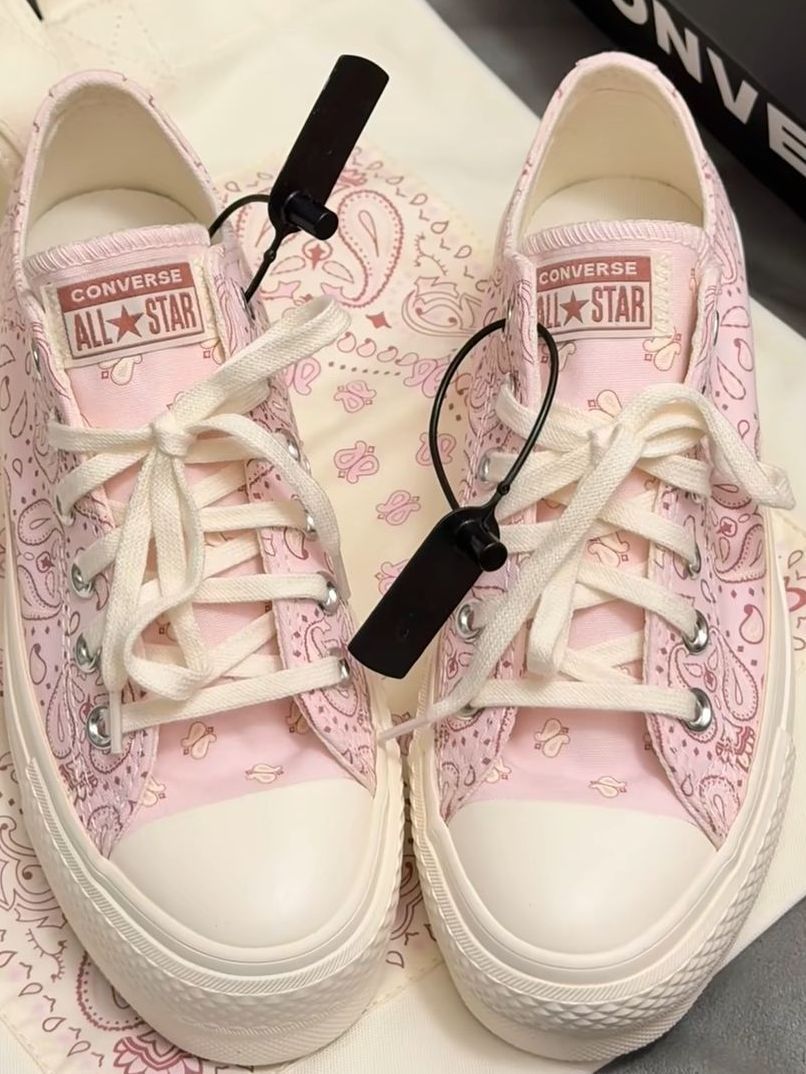 谁能拒绝这双粉粉嫩嫩的腰果花匡威啊!浅粉底色+复古腰果花印花,温柔又显白。厚底设计悄悄增高,走路还超稳,搭配百褶裙或牛仔裤都超减龄,春日出门踏青穿它,氛围感直接拉满,少女心爆棚!