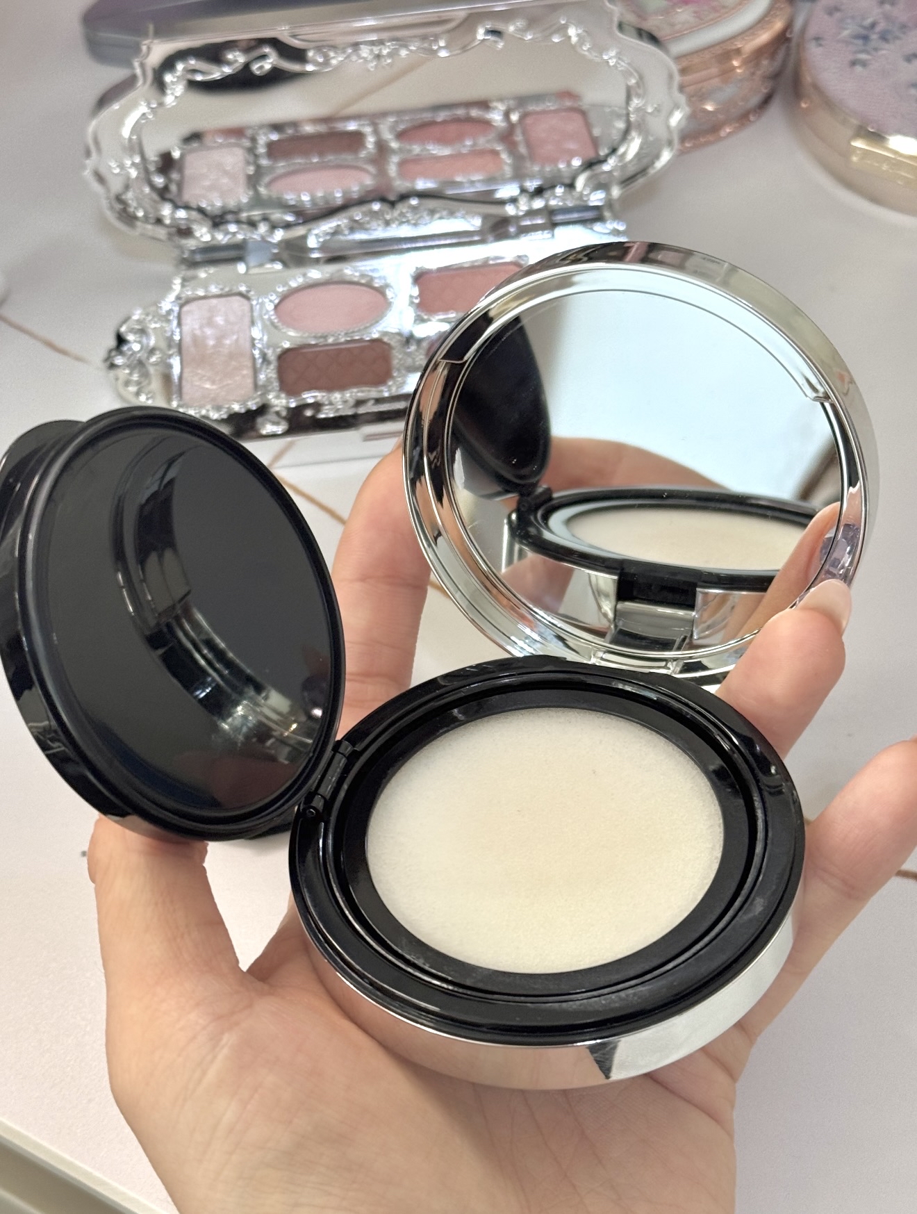 救命!这颜值真的戳爆心巴🩵 雾霾蓝菱格皮革壳,拿在手里补妆都超有面~上脸冰冰凉凉,一秒吸油,0粉感巨轻薄。遮瑕在线,红血丝、浅痘印一键隐形,持妆半天不斑驳,微微出油更服帖。伪素颜、通勤妆都能打,贵气感和实用性双在线,混油混干闭眼冲✅