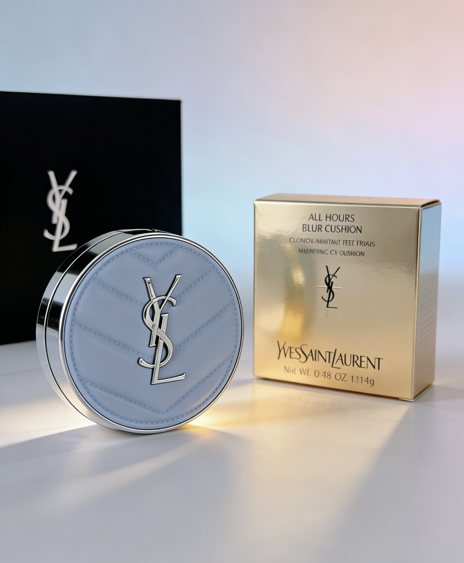 💄 YSL 粉气垫礼盒评 ✨ 颜值与质感 • 外观设计:淡蓝色菱格纹皮革外壳搭配金属YSL大标,精致又高级,自带轻奢感,拿在手里像个迷你手包,颜值拉满。 • 包装细节:礼盒与产品盒的黑金/金粉配色,送礼或自用都很有仪式感,细节处尽显品牌格调。 🎁 产品亮点 • 核心产品:YSL All Hours 粉气垫主打“柔焦雾感”,上脸能隐匿毛孔、控油持妆,适合油皮/混油皮打造清透底妆。 • 礼盒价值:除了...