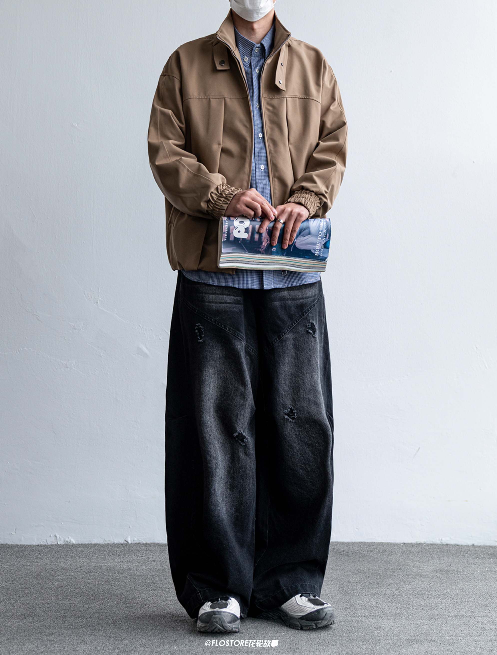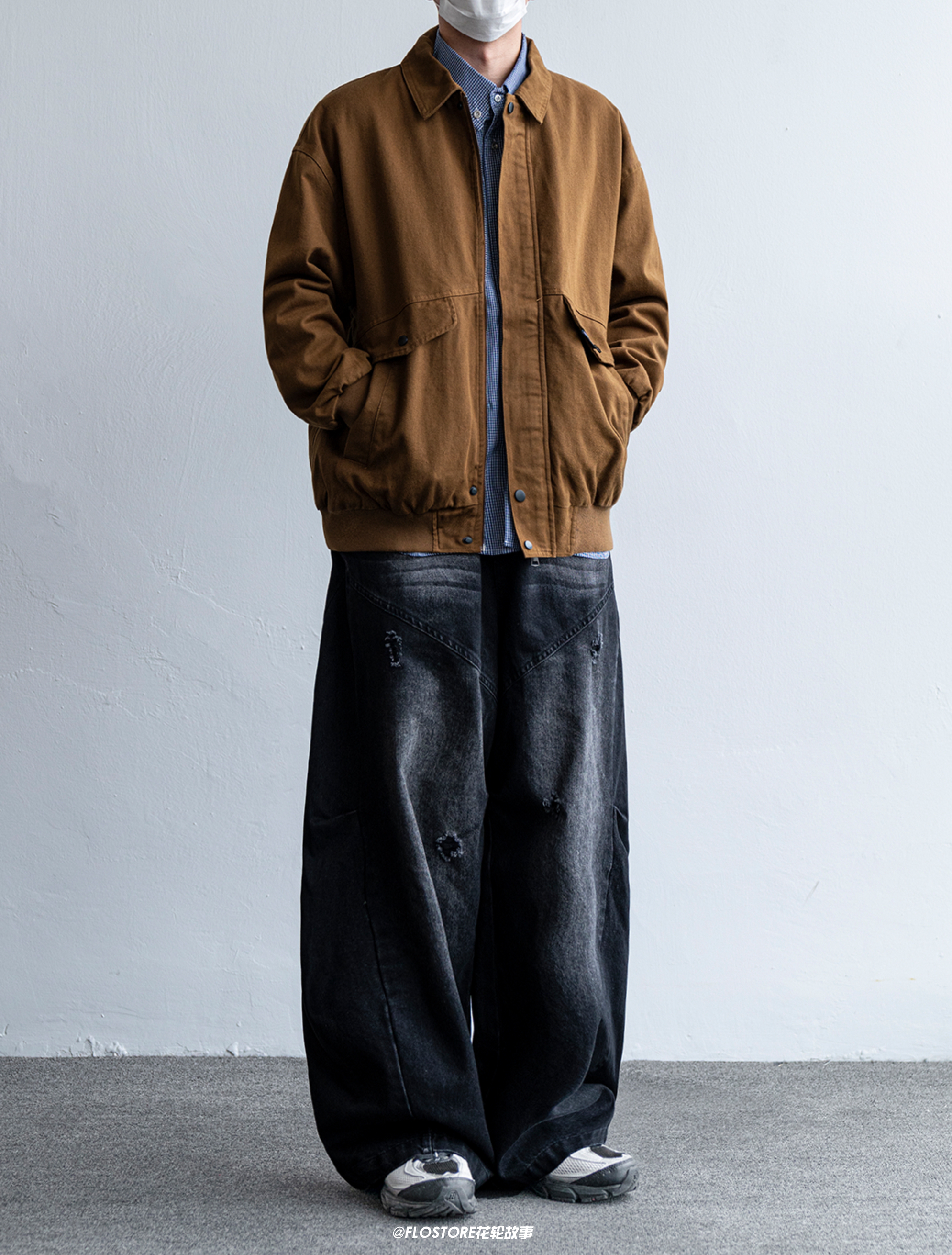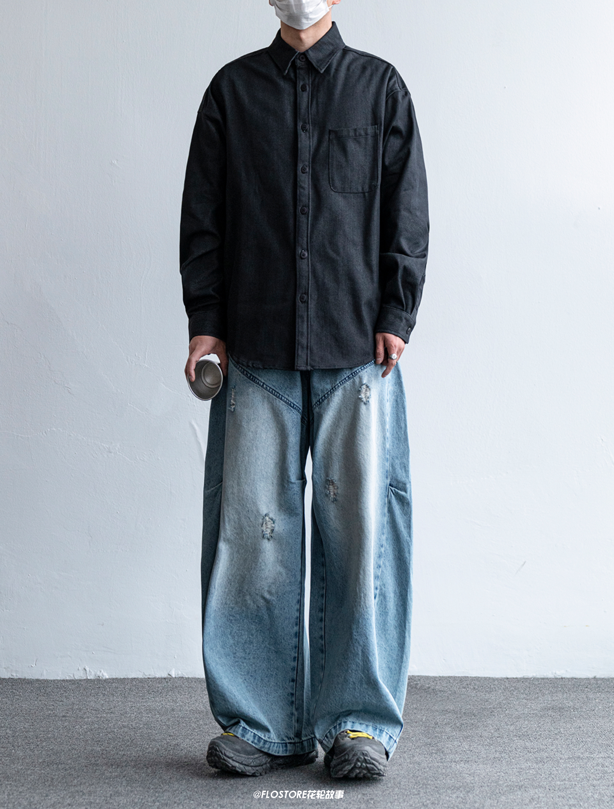 可以说谁都可以轻松驾驭了 偏宽松的版型很适合大众群体身材 是很有质感的牛仔裤,上身干净麻利 整个做旧效果可以给人太多的惊喜 宽大的直筒设计可以给整个裤子增加很多细节 更多文艺日系氛围的感觉扑面很cool 穿上没有紧绷感,就垮在胯上刚刚好 凹造型满分,上身分分钟变成酷哥 - 本人:身高172CM | 体重62.5KG Flostore花轮故事