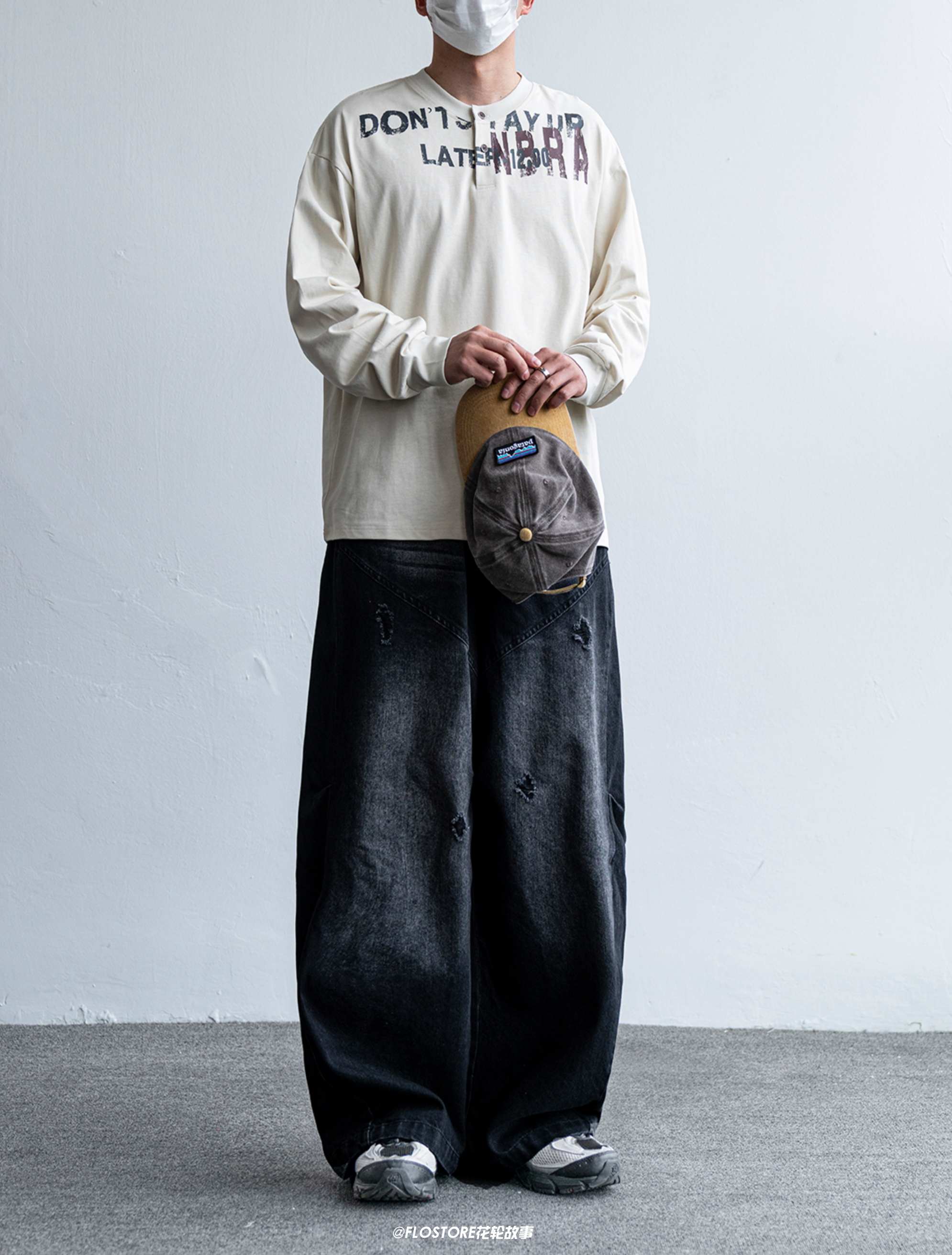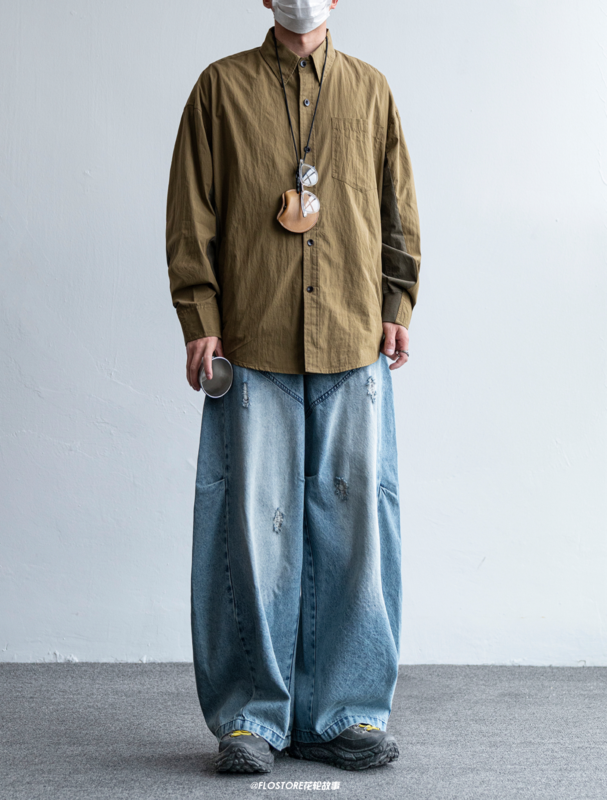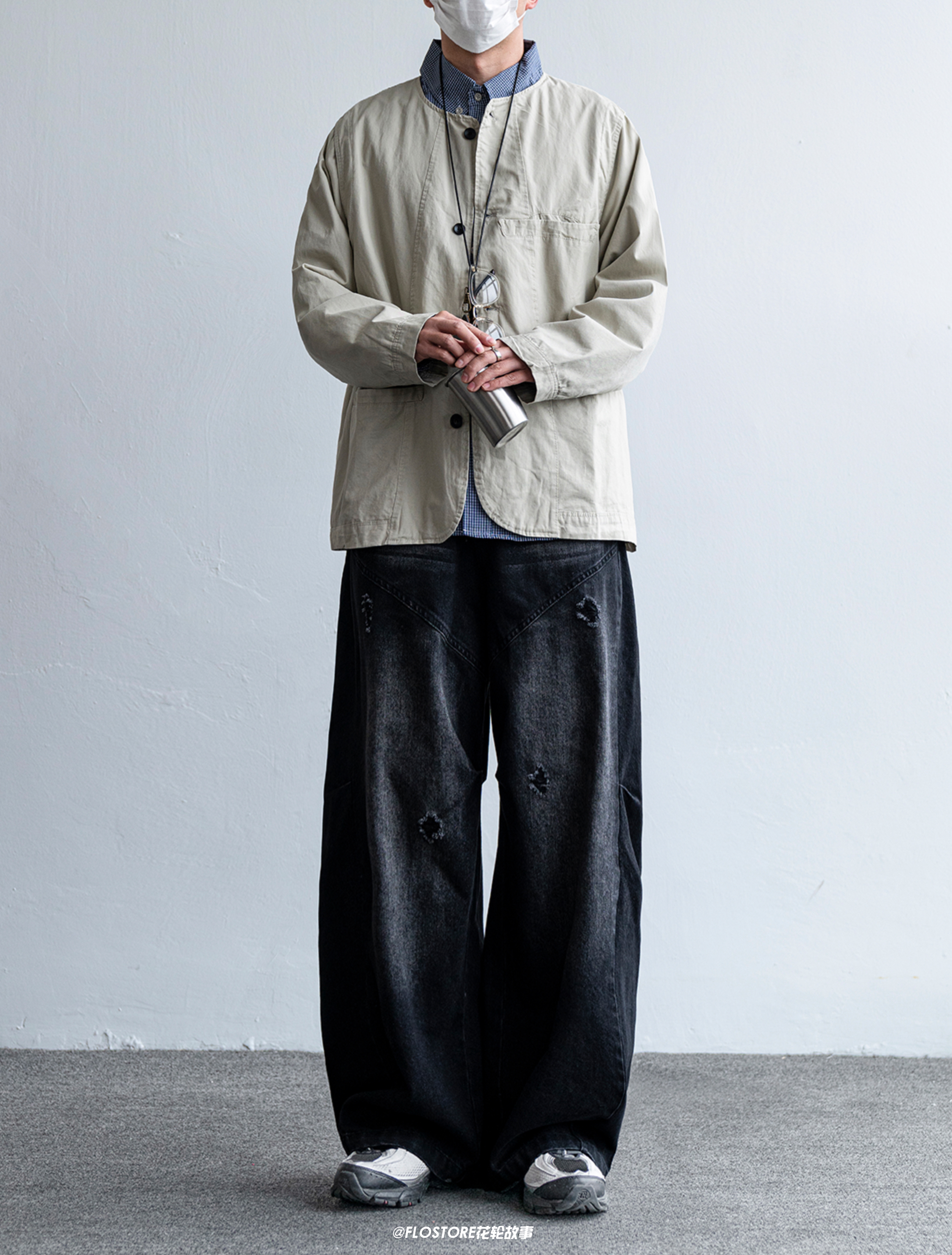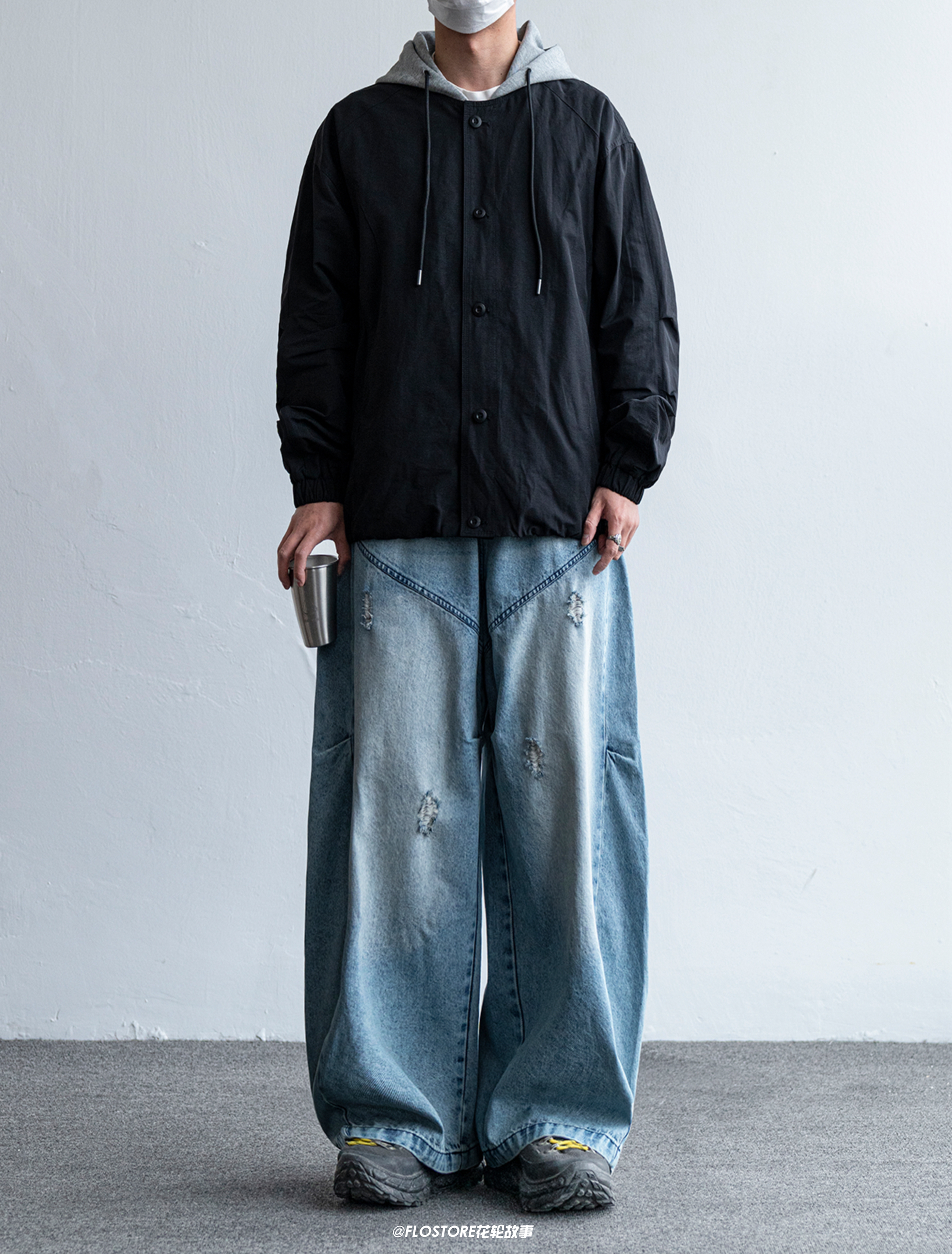 可以说谁都可以轻松驾驭了 偏宽松的版型很适合大众群体身材 是很有质感的牛仔裤,上身干净麻利 整个做旧效果可以给人太多的惊喜 宽大的直筒设计可以给整个裤子增加很多细节 更多文艺日系氛围的感觉扑面很cool 穿上没有紧绷感,就垮在胯上刚刚好 凹造型满分,上身分分钟变成酷哥 - 本人:身高172CM | 体重62.5KG Flostore花轮故事
