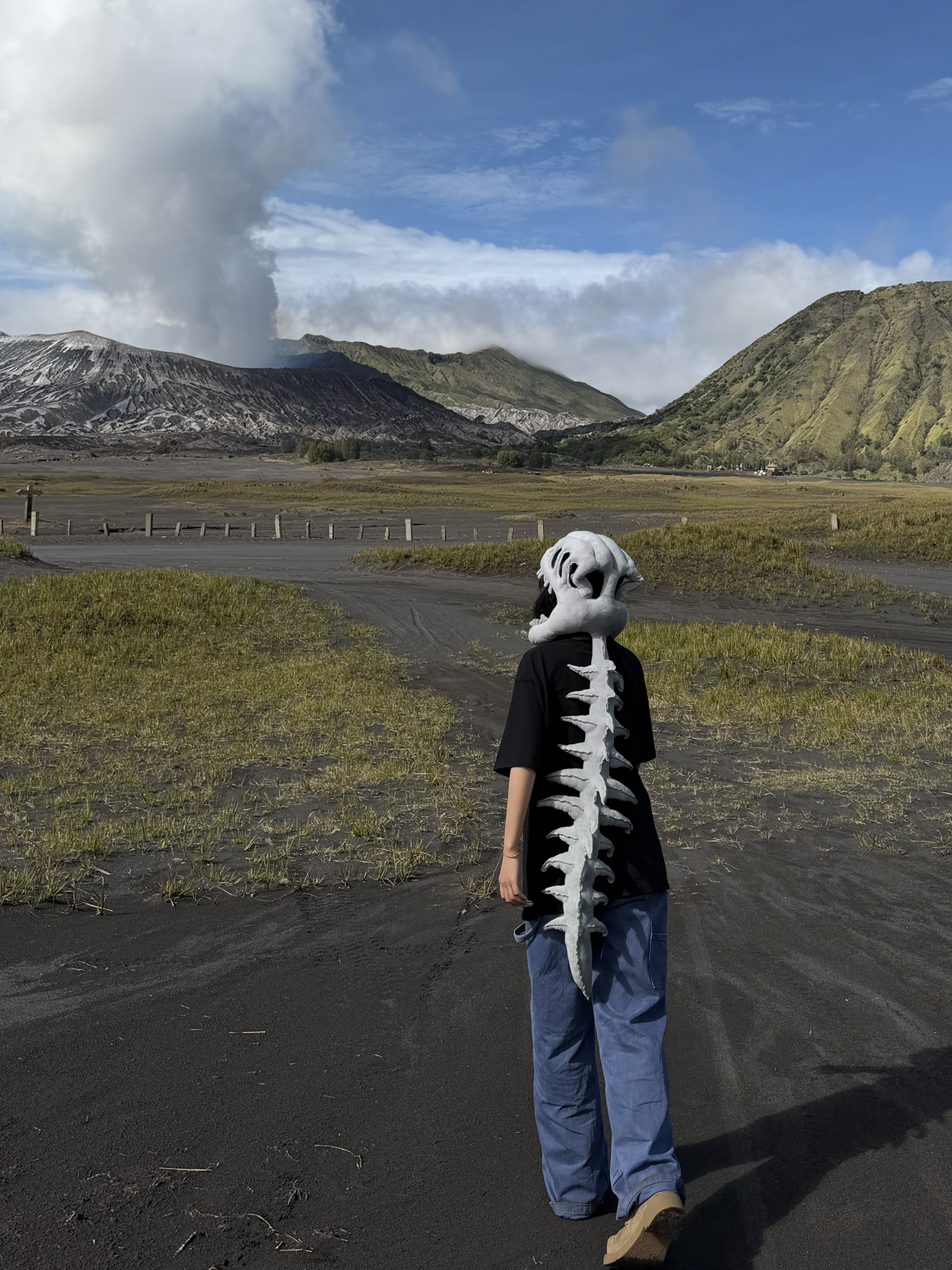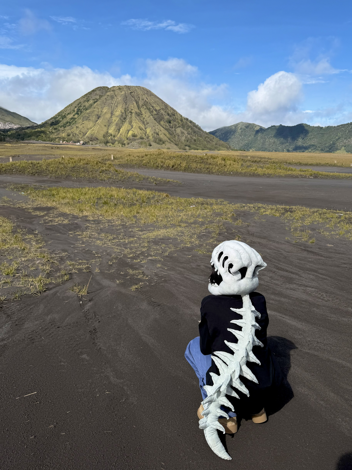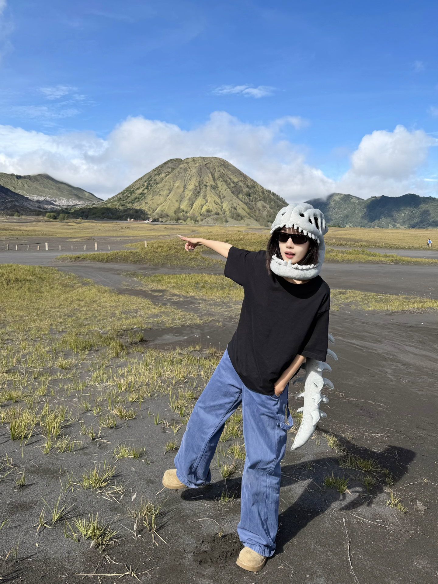 布罗莫火山终于看到了 带上我的小恐龙去看看 嘎嘎出片啦 黑色短袖加蓝色工装裤 #超出片的户外穿搭 #户外拍摄姿势 #户外出片搭配拿捏 #我的玩具毛茸茸 #秋游出片穿搭整装过冬