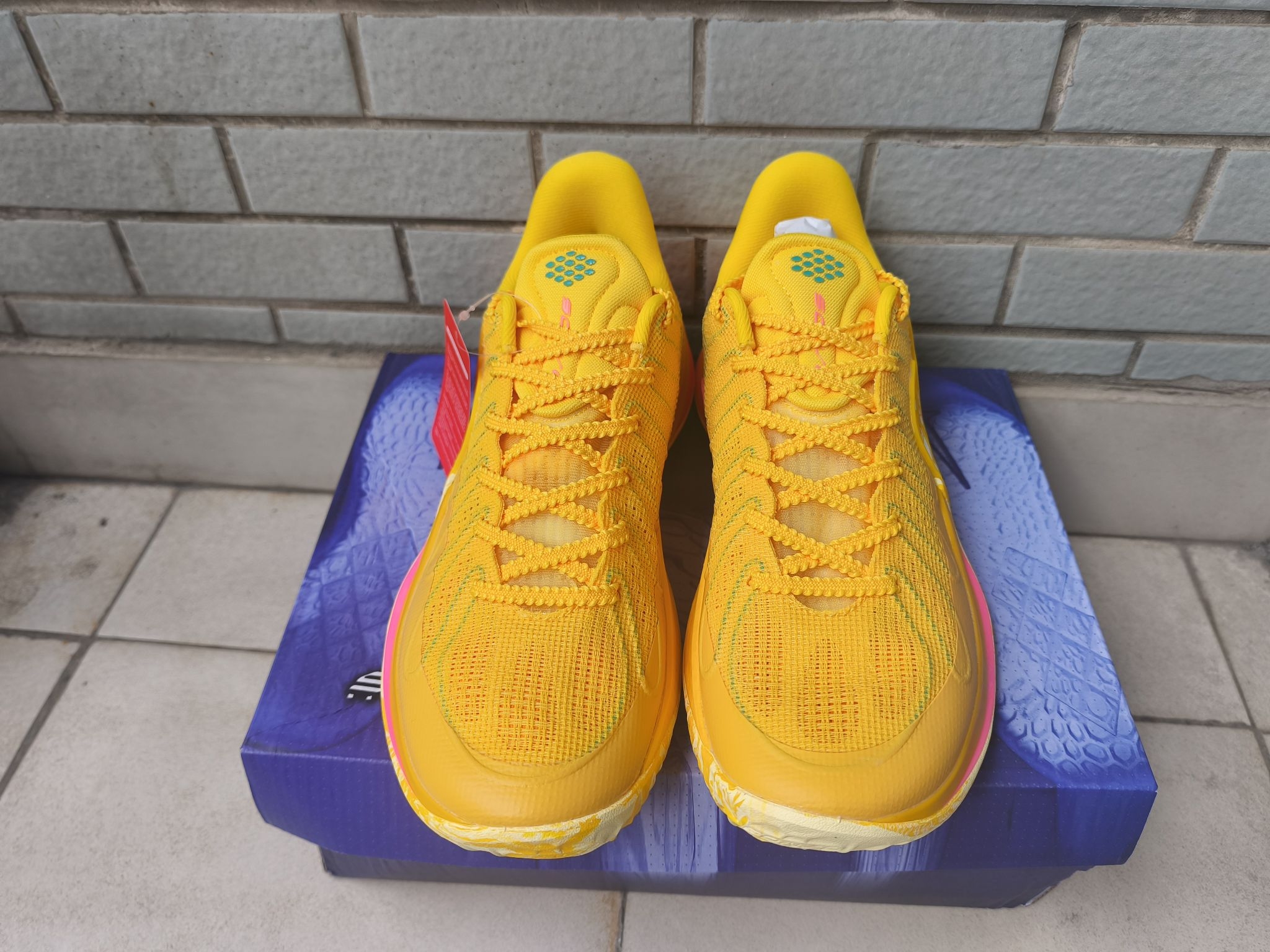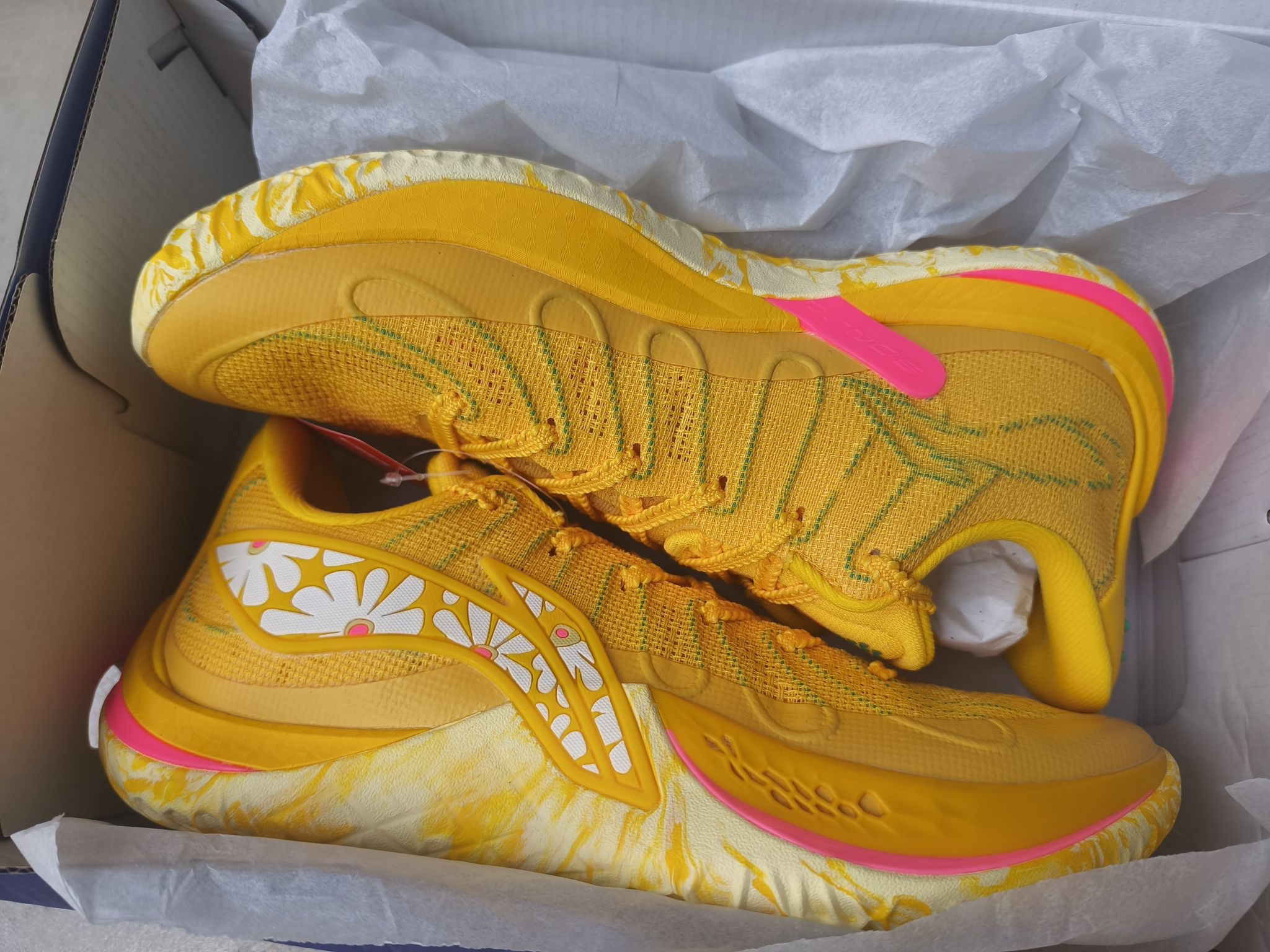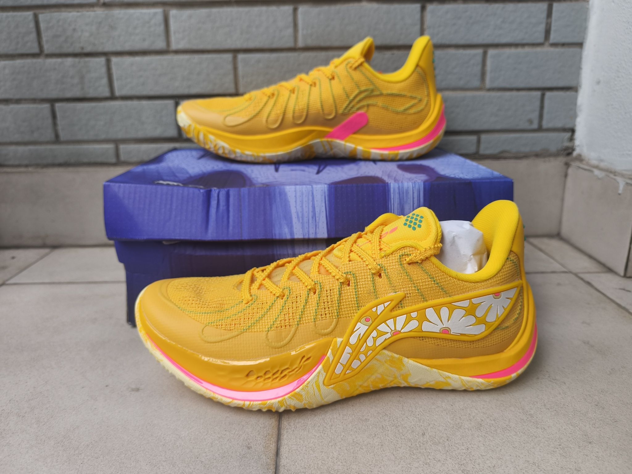 䨻科技真的不是玄学,踩下去软弹反馈很明显,落地时膝盖几乎没负担。网纱鞋面透气不闷脚,夏天打球终于不用脱鞋倒汗了。关键是轻,跑全场折返一点不拖沓,防滑纹路抓地稳,急停变向心里很有底。 柠檬黄实物比图里还亮,球场上基本不会被认错,但又不会太跳脱难搭配。低帮设计对脚踝灵活度友好,包裹和支撑也到位。 四开的价格拿到这配置,识货的兄弟直接冲就完事了。 这个夏天就穿它了