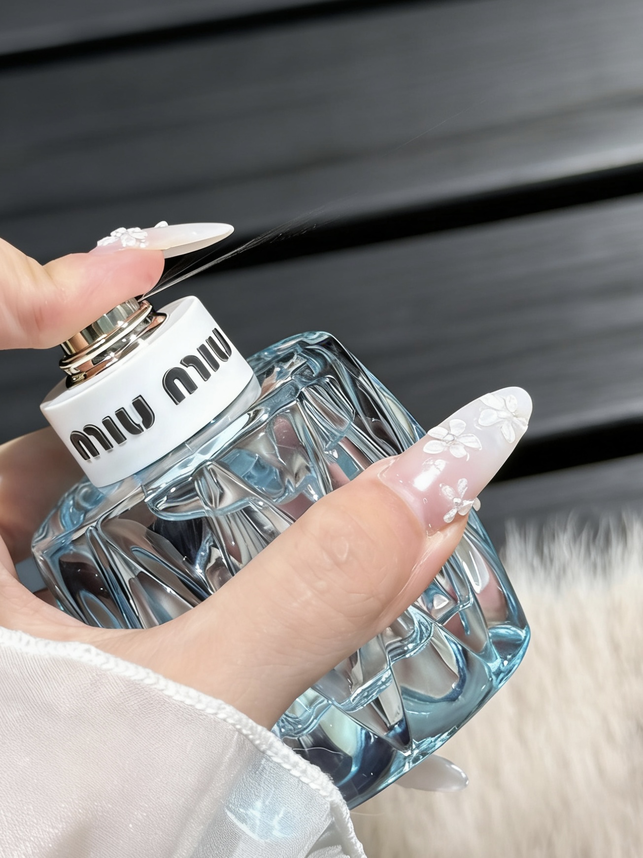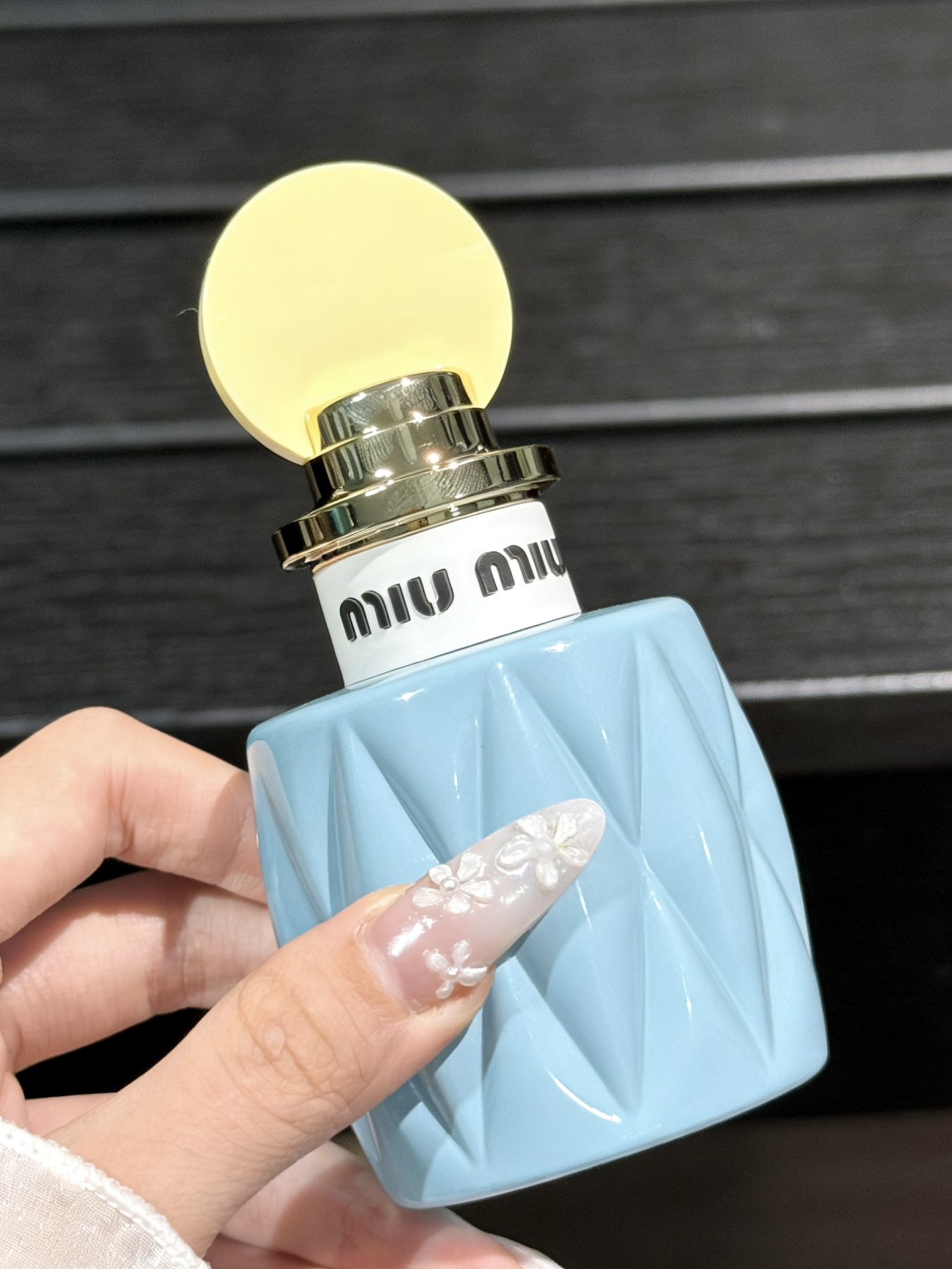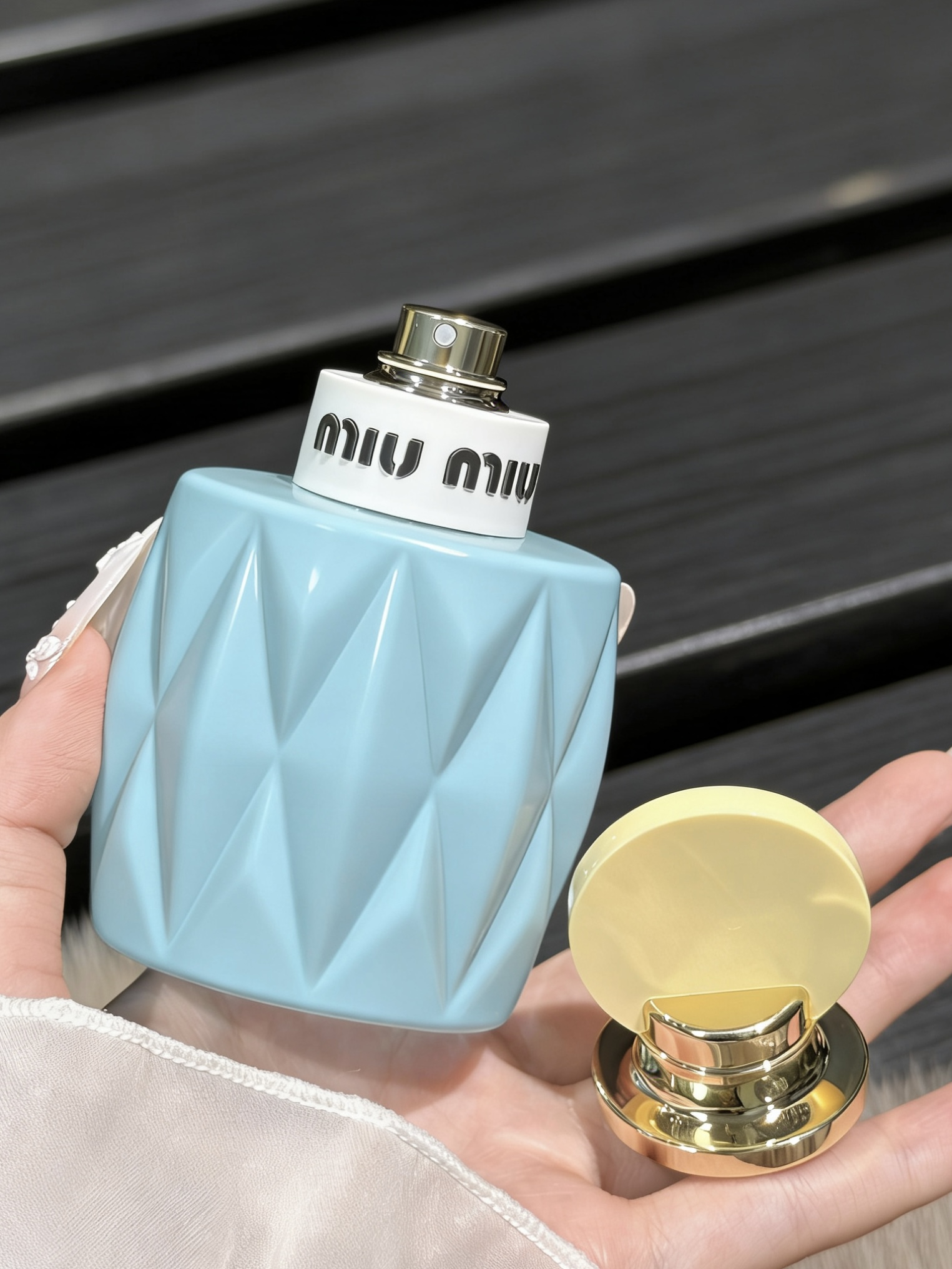 新入手的miumiu香水,冰蓝色菱形瓶身+奶黄圆盖,像把春日的晴空揉进了瓶子里,拿在手里软乎乎的,少女感直接拉满💙 前调是清新的铃兰与黑醋栗,带着一点点俏皮的酸感;中调慢慢过渡到温柔的茉莉与玫瑰,干净又纯粹;后调的木质香让整体更有层次,甜而不腻,像春日里的一阵微风,清透又治愈 留香也很在线,喷在衣服上一整天都能闻到淡淡的香气,通勤、约会都超合适,温柔又灵动,少女感直接拿捏