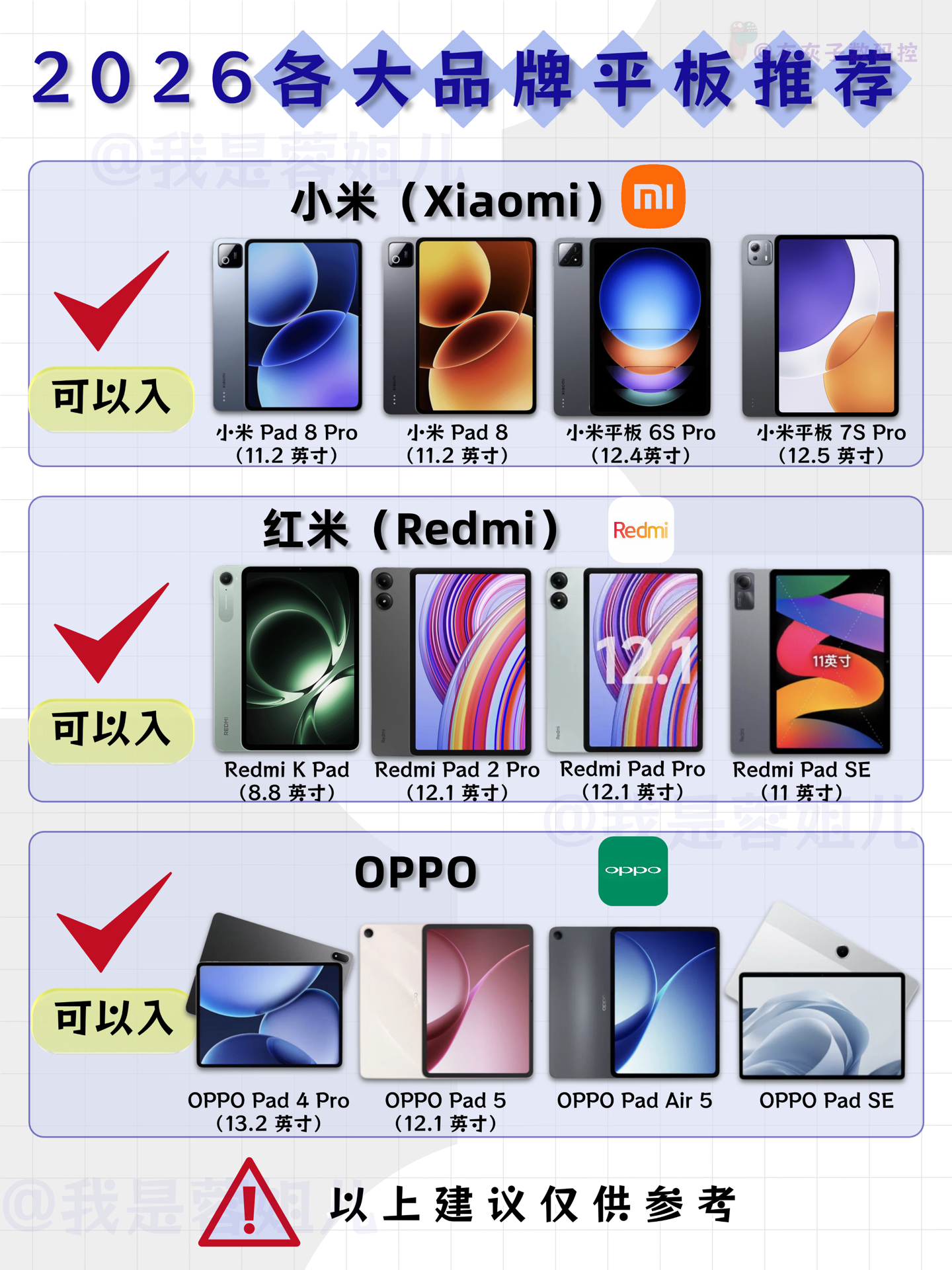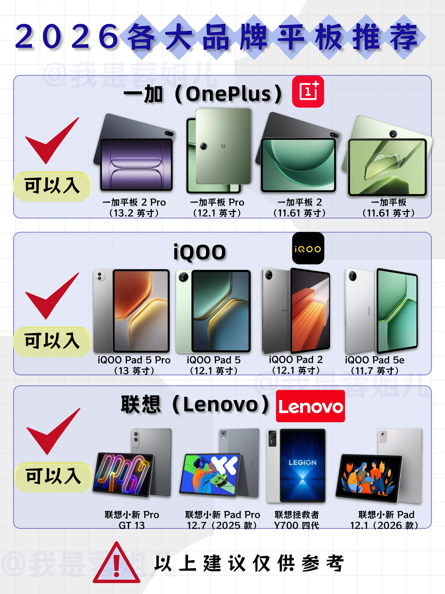 ⚠️ 以上建议仅供参考,大家还是要根据自己的需求和预算来选哦~#平板选购指南 #平板种草 #三张图安利你的电子产品 #年度数码iPhone