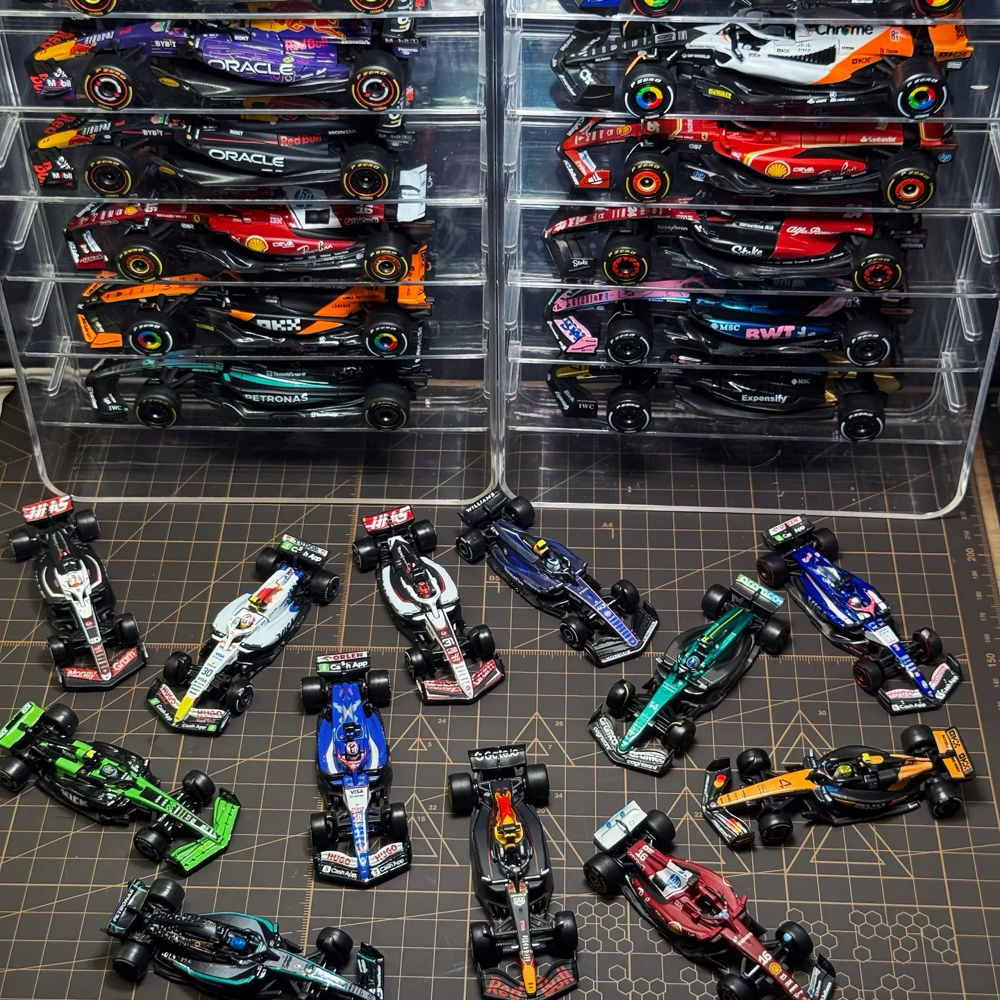 谁能拒绝一整面墙的F1小车呢? 从红牛的橙红闪电,到迈凯伦的橙黄锋芒,再到梅奔的银箭传奇… 每一台都藏着赛道的风与光,是我对F1最纯粹的热爱。 指尖划过车身上的涂装,仿佛能听见引擎轰鸣,看见每一场超车与逆转。 这哪里是模型,明明是我亲手搭建的迷你赛车宇宙 它们安安静静地待在展示架上,却又好像随时能发动引擎,冲向赛道。 有人说模型是“大人的玩具”,但对我来说,这是藏在日常里的热血与梦想。 毕竟,谁不...