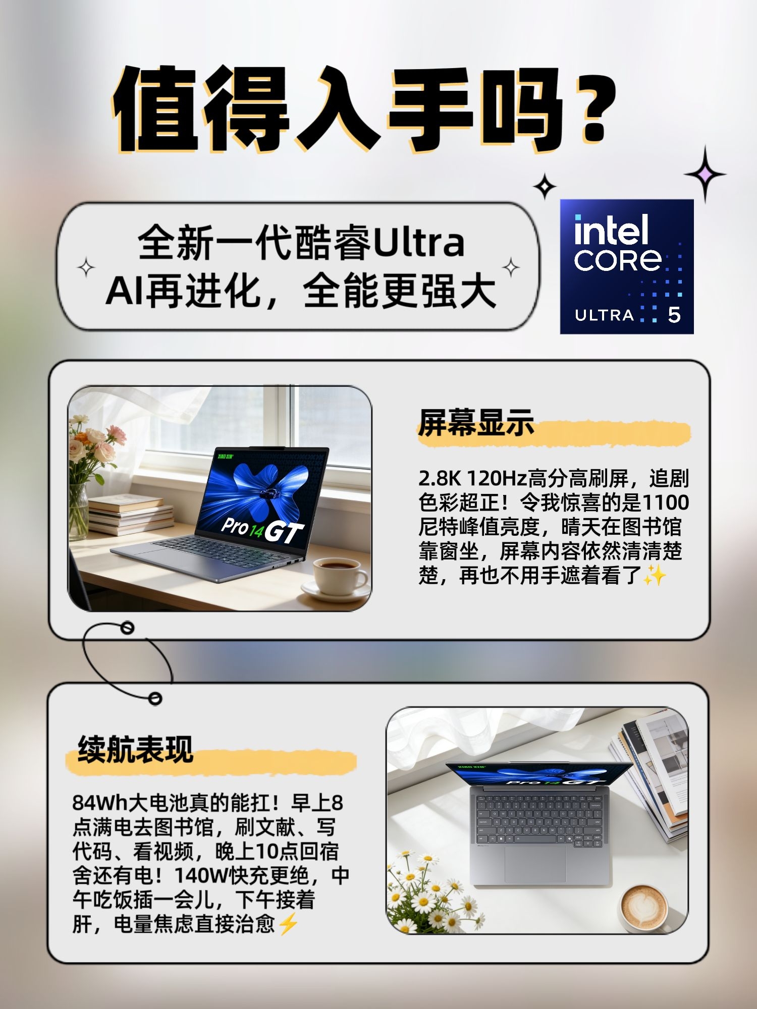 本篇笔记关联了Lenovo/联想 小新Pro 14 GT AI元启版 酷睿版 2025款 14英寸 笔记本 2.8K OLED屏 84Wh长续航 高色域 高刷屏 标压 灰色等商品,为用户提供真实的使用体验和购买参考。