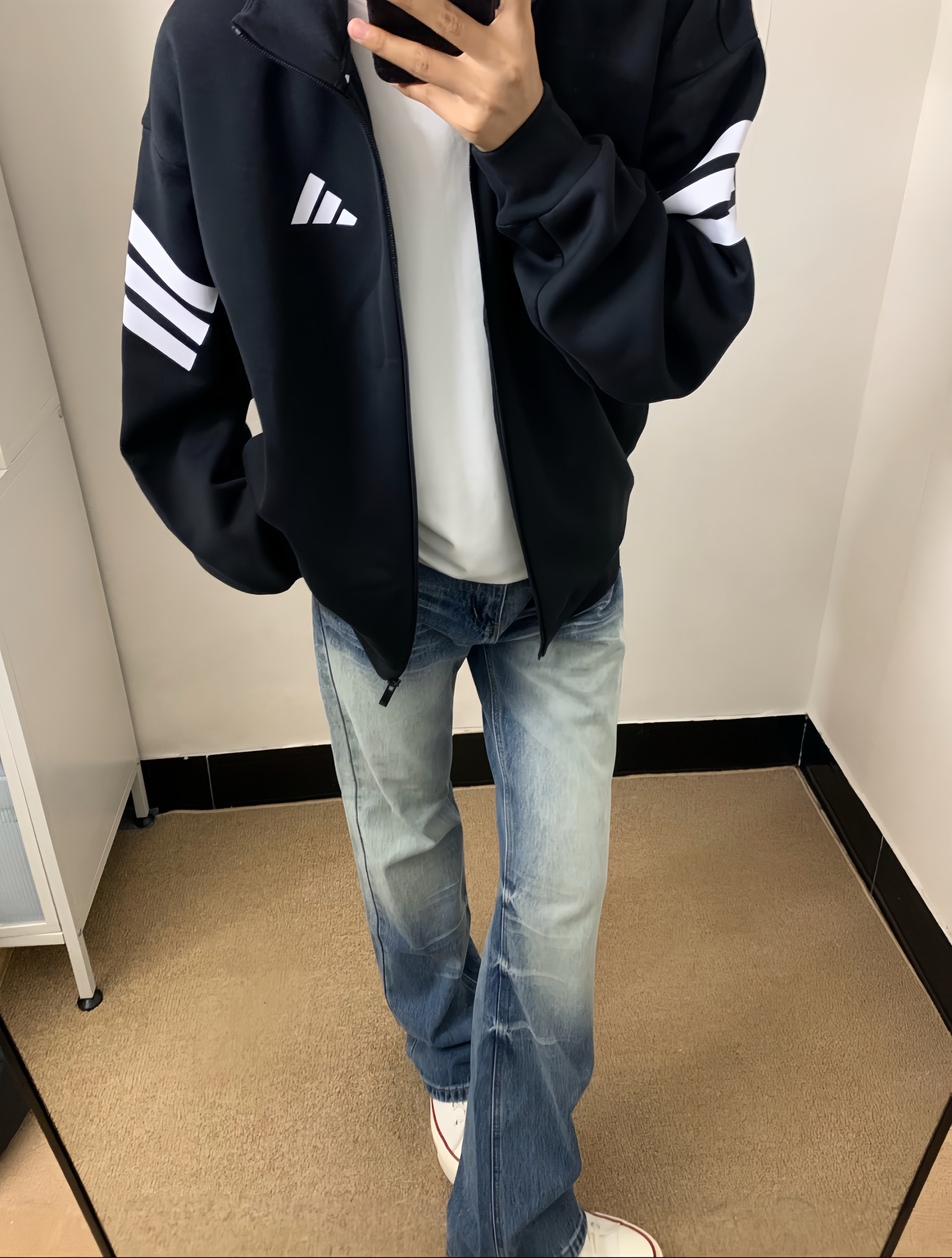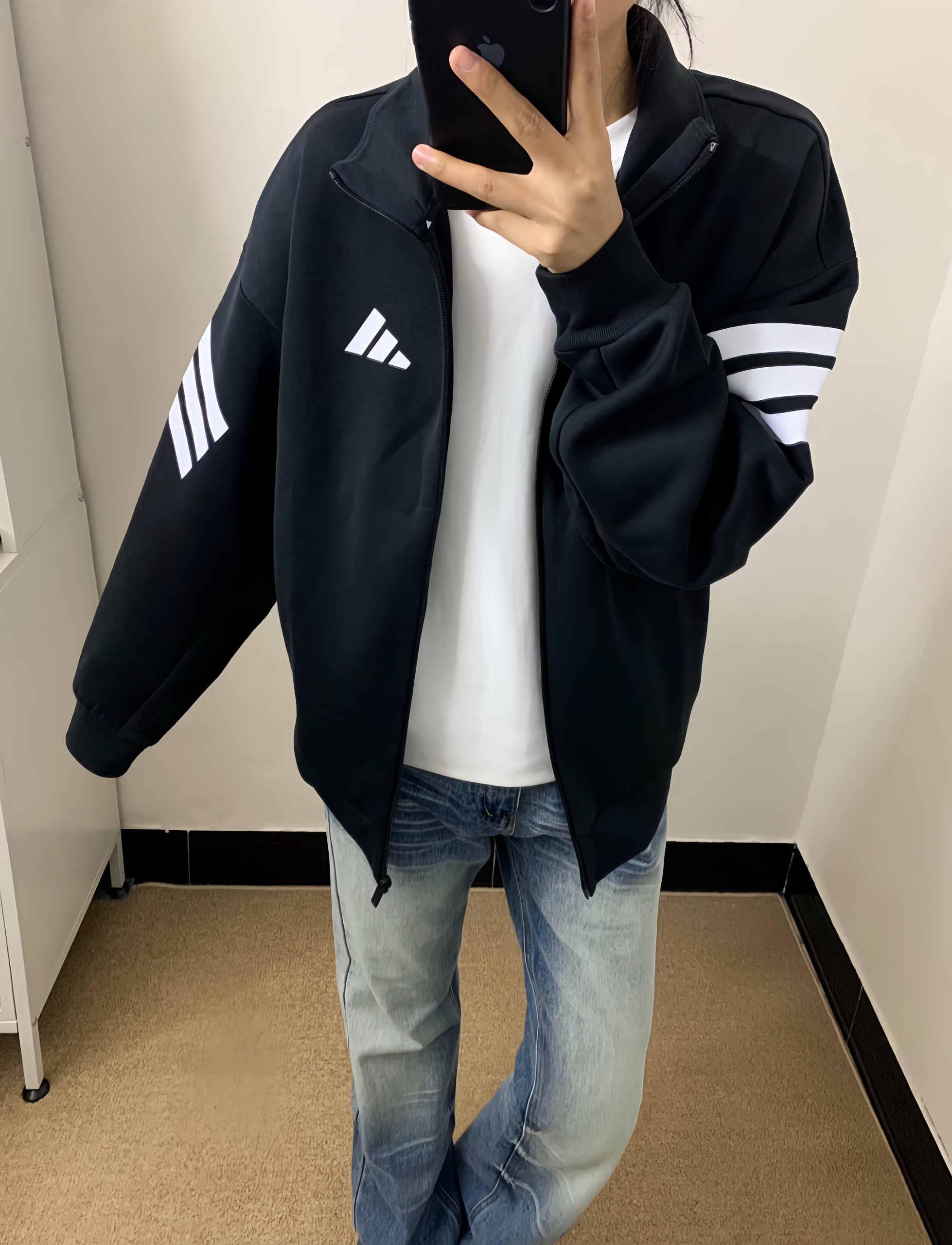 这个版型真的很藏肉 面料软乎乎的 贴身穿也不扎 经典三条杠设计 不管是搭牛仔裤还是运动裤👖都好看 日常通勤或者出门运动都合适 ❌拉链拉到顶的时候有点卡 得慢慢拉 还有面料容易粘毛 黑色款一粘毛就特别明显 洗多了领口容易有点松垮 ✅p1 正儿八经搭个白T牛仔裤 出门随便一套都很干净利落 这才是它该有的样子 ✅p2 如果对细节要求特别高 或者怕麻烦不想天天粘毛的朋友 真的要慎重 不然收到货会有点闹...