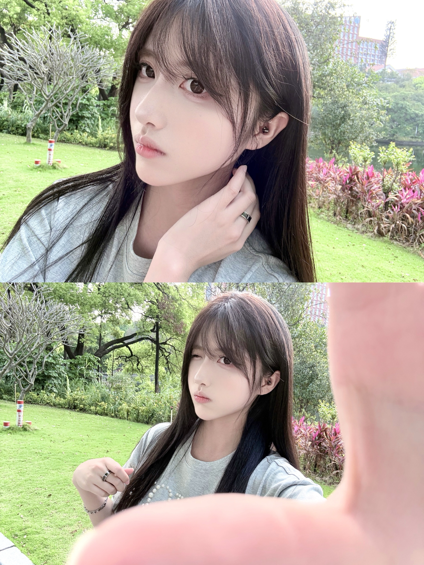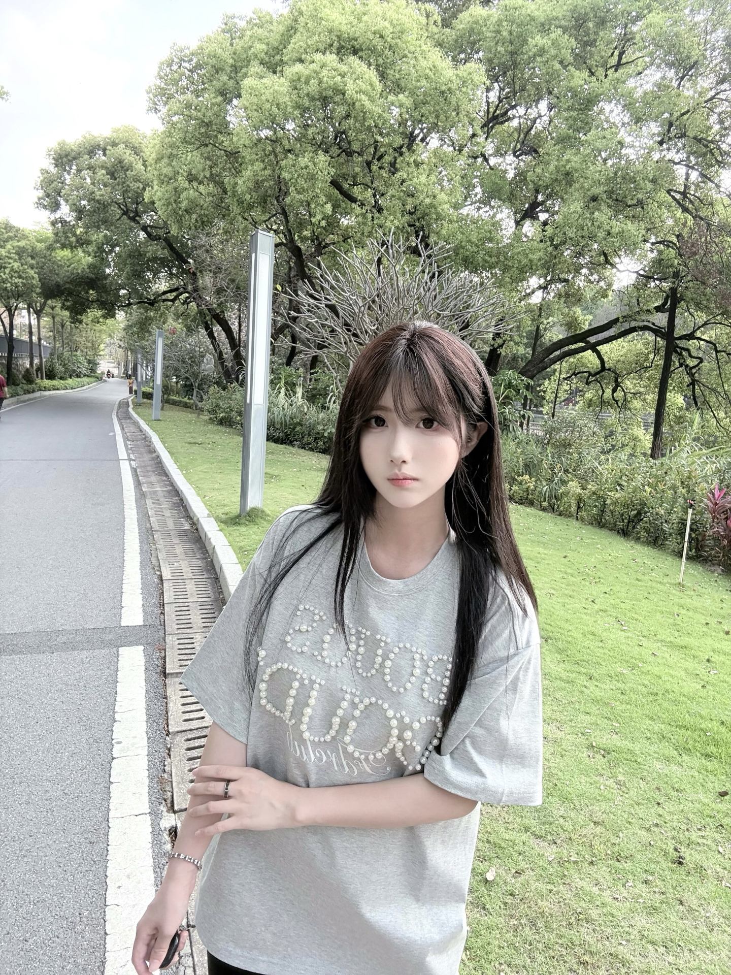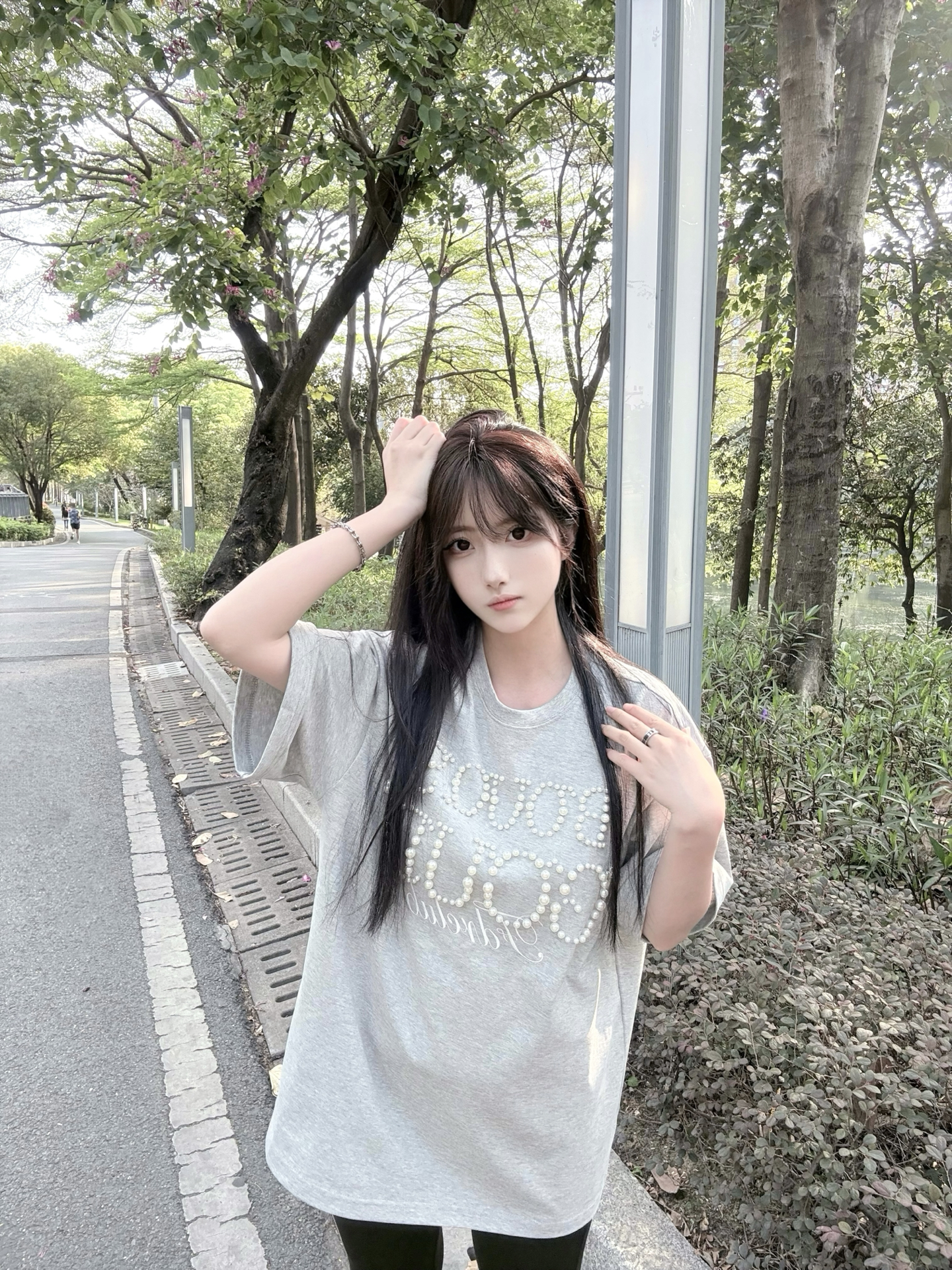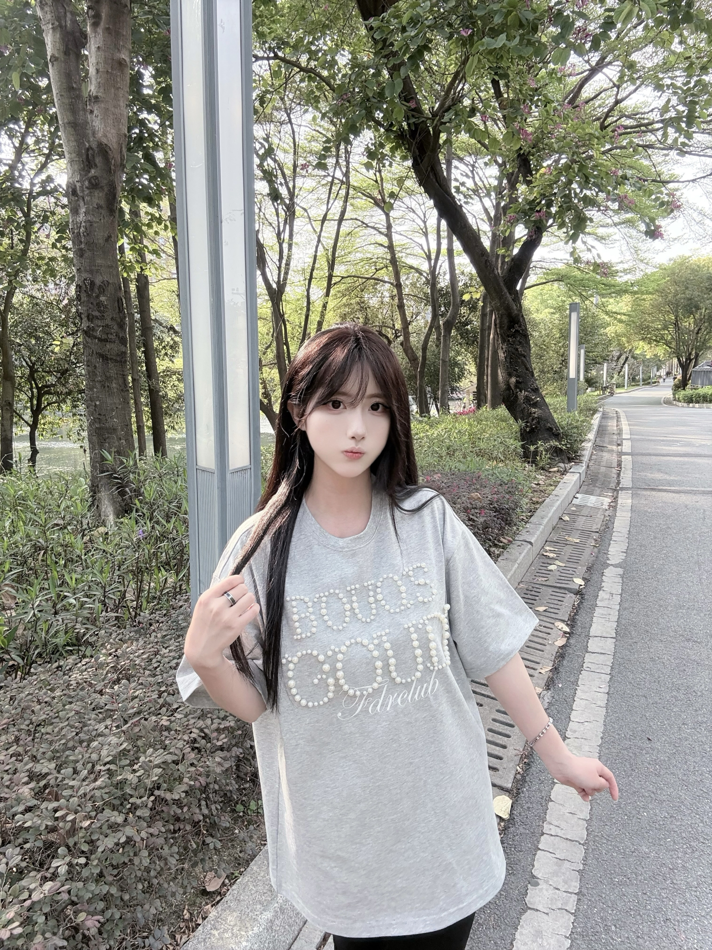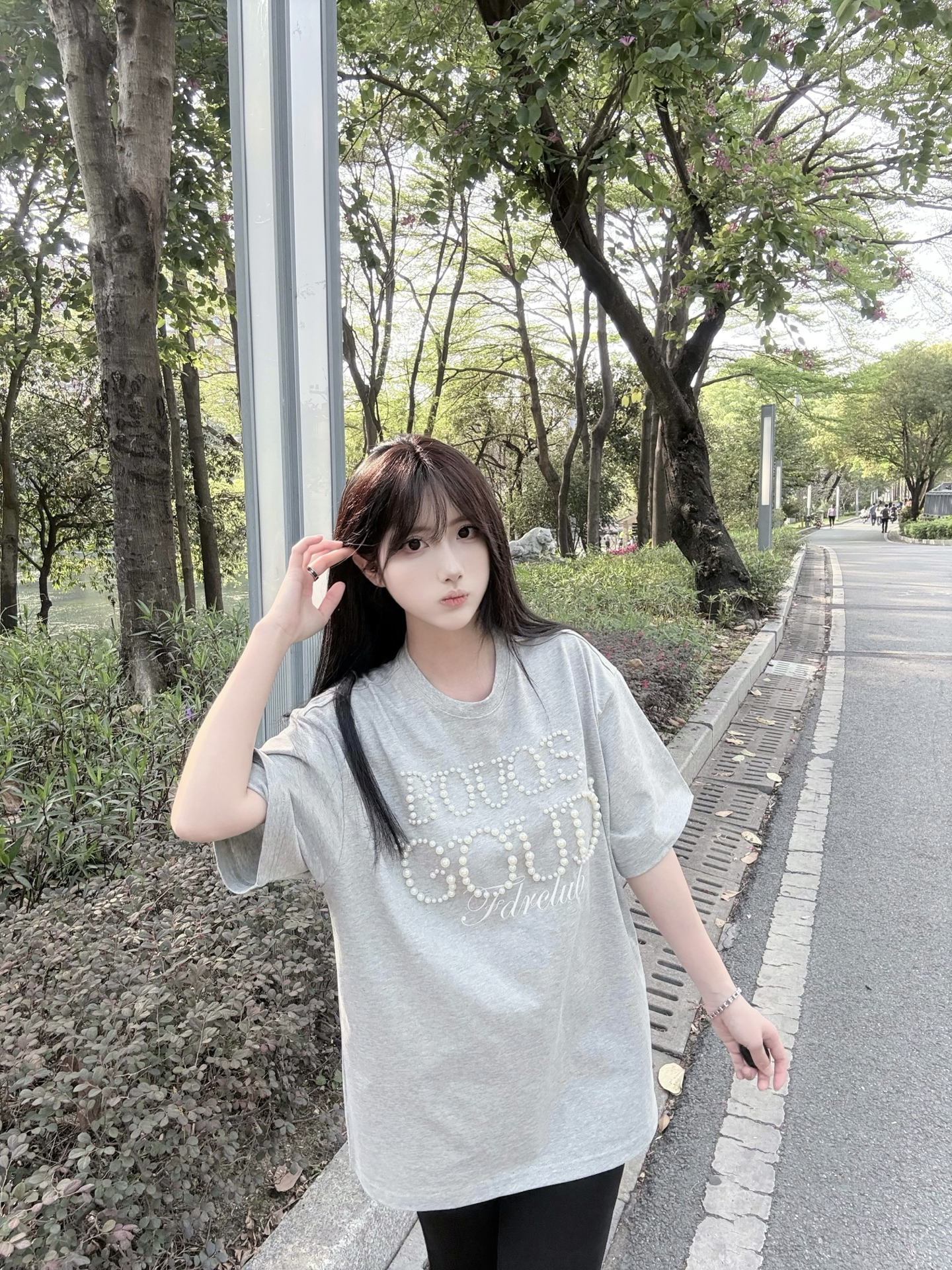 等放学后...想和你散步到世界尽头 嘿嘿😁特别休闲的一套穿搭! 老粉宝宝都知道我很爱穿灰色哈哈哈 穿的 #FDR 的珍珠刺绣短袖🩶 蛮新颖呀 有种运动芭蕾风的感觉~ 然后今天一套配饰都是 #ACIUM 的 主色调也是黑灰色🕶️又酷又飒 摸起来很有质感 随便搭配都好看 而且不分男女 可以和对象换着戴呀 #ACIUM告白好礼 #ACIUM天生一对 #ACIUM耳钉 #ACIUM手链 #这个礼物...