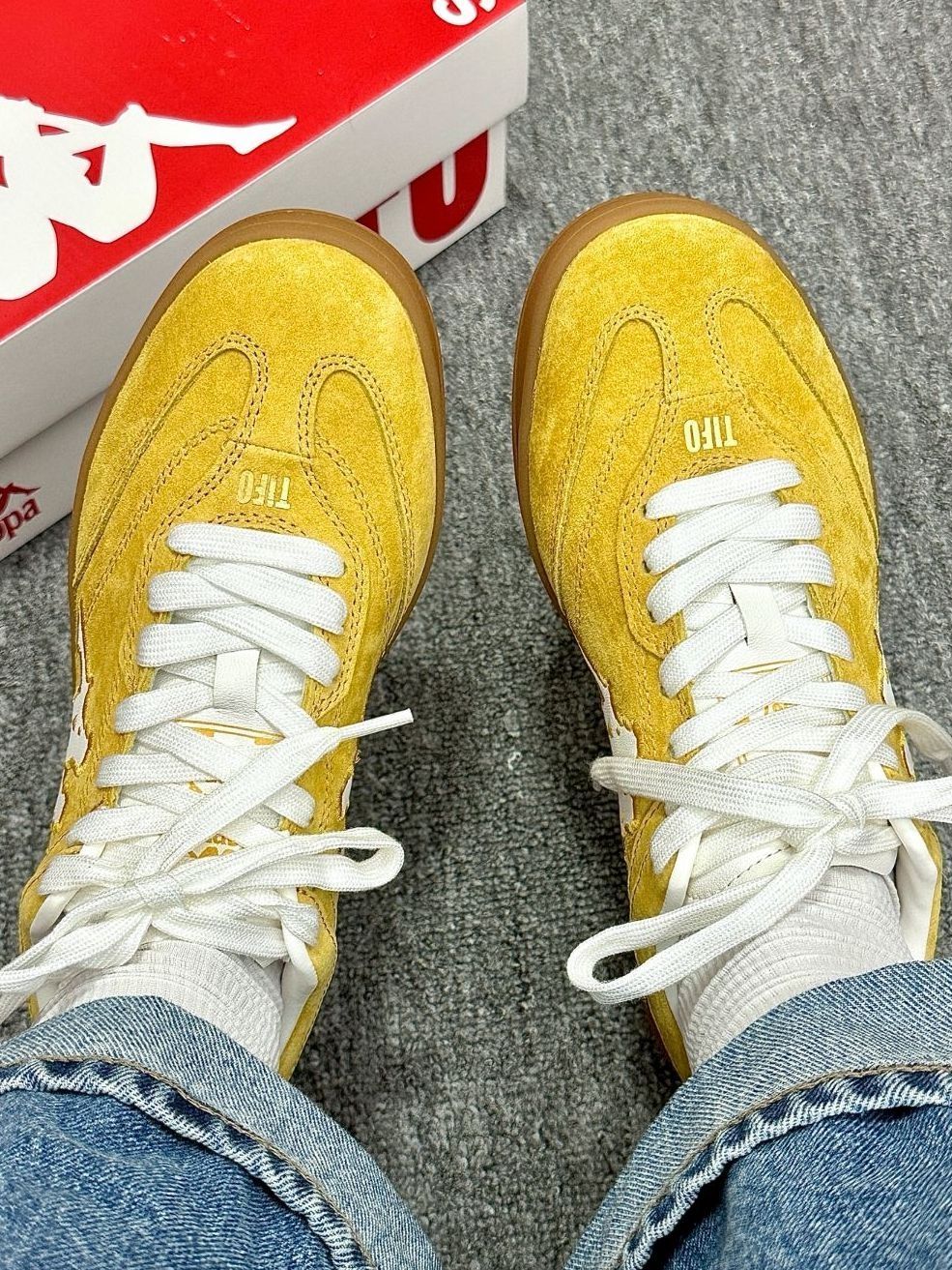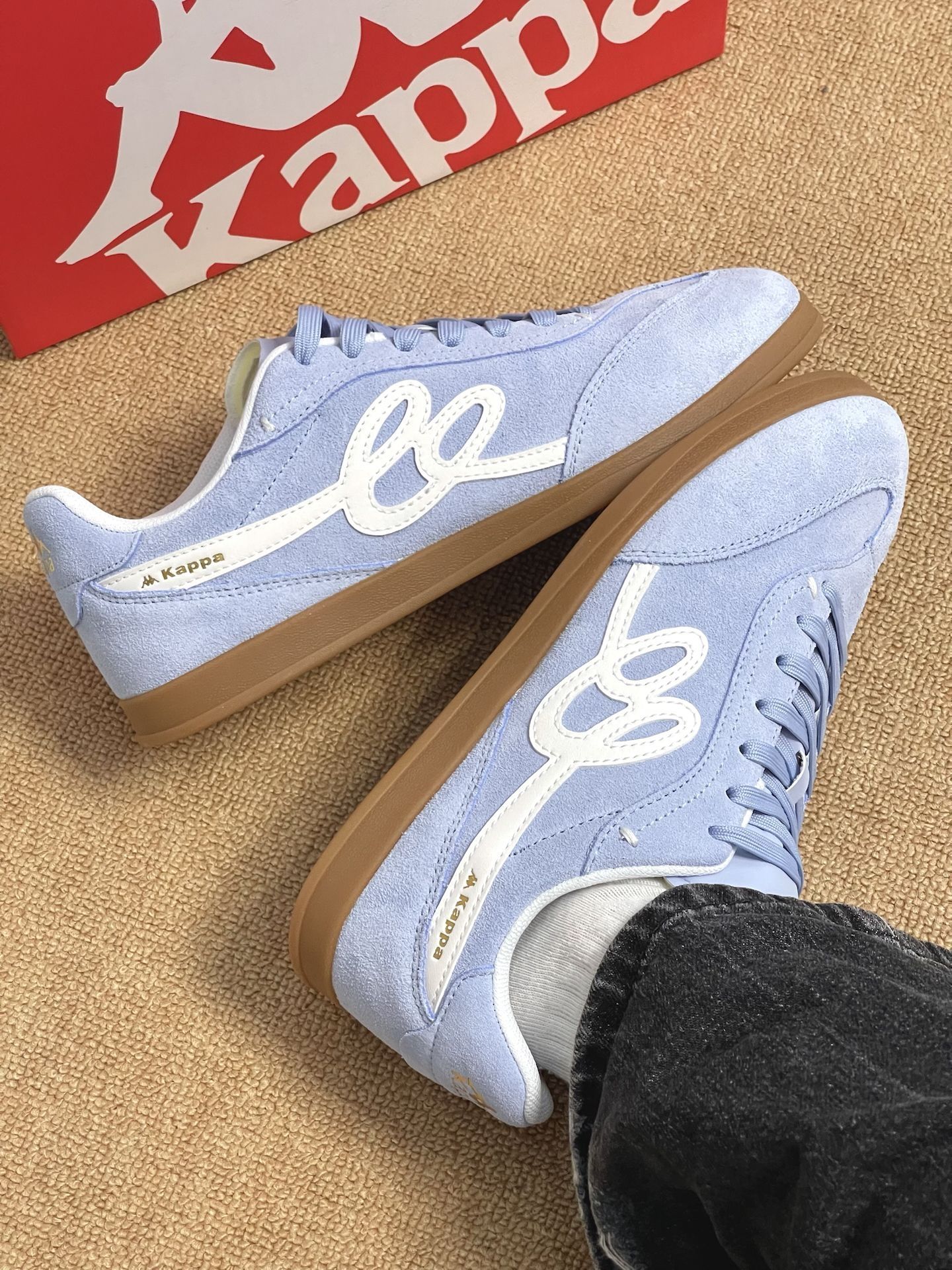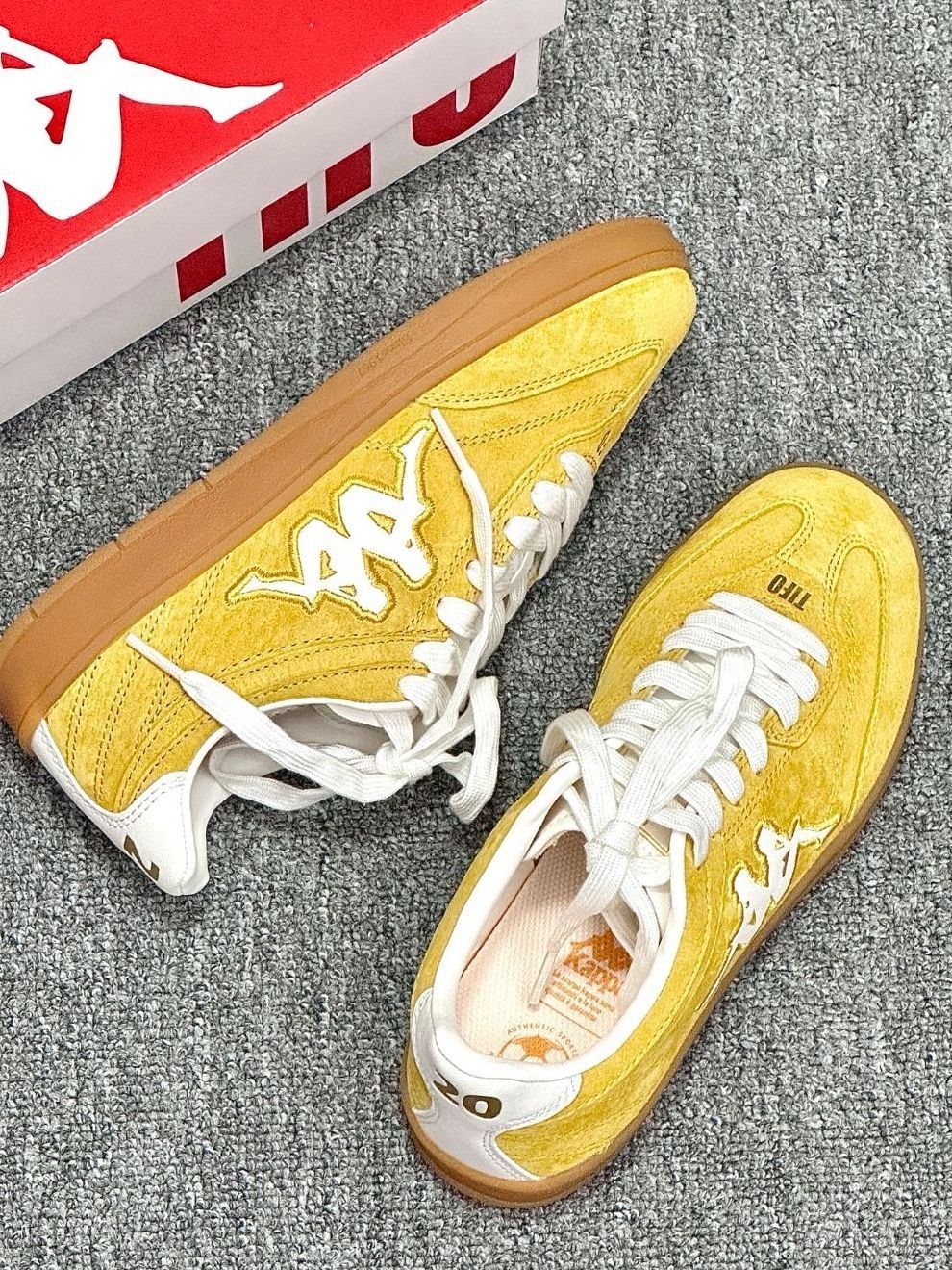 谁懂啊!这双Kappa德训鞋也太会了! 姜黄麂皮+生胶底,像把春日阳光踩在脚下,温暖又显白✨ 白色刺绣背靠背Logo+后跟金色数字,细节拉满,完全不撞款! 低帮鞋型上脚超显瘦,配牛仔裤是美式复古酷盖,搭裙子就是温柔元气少女,春天穿它出门,回头率直接拉满!