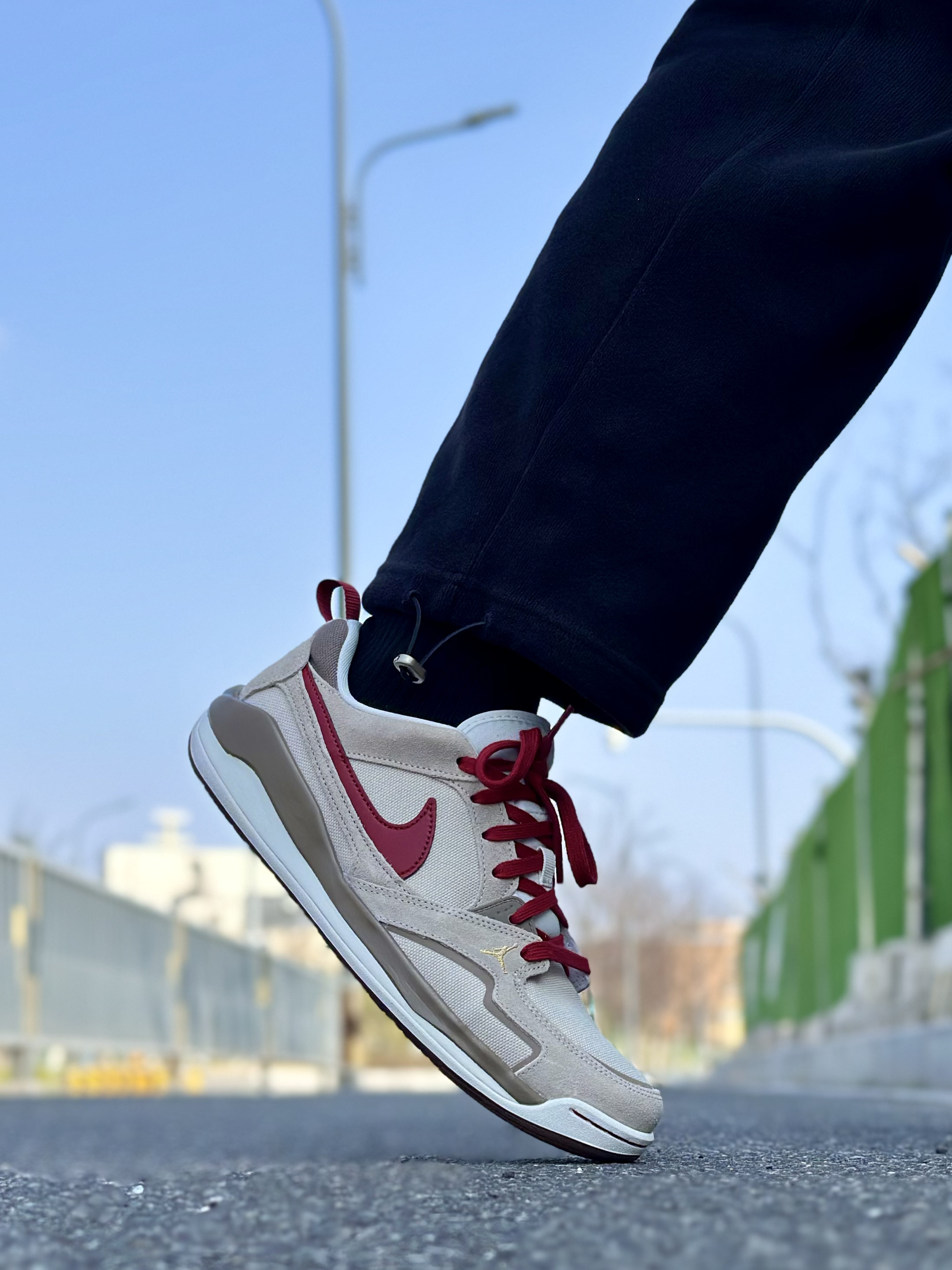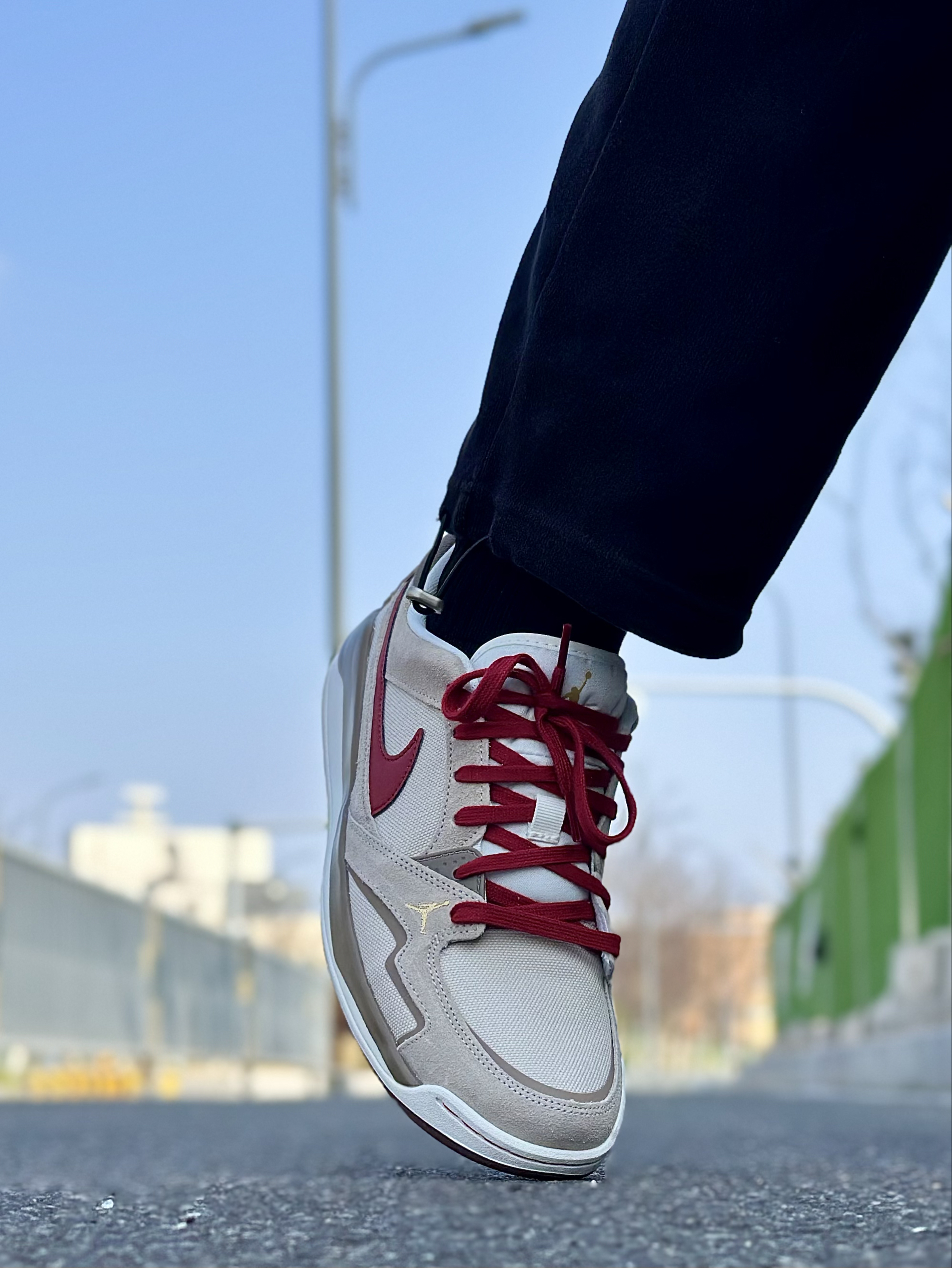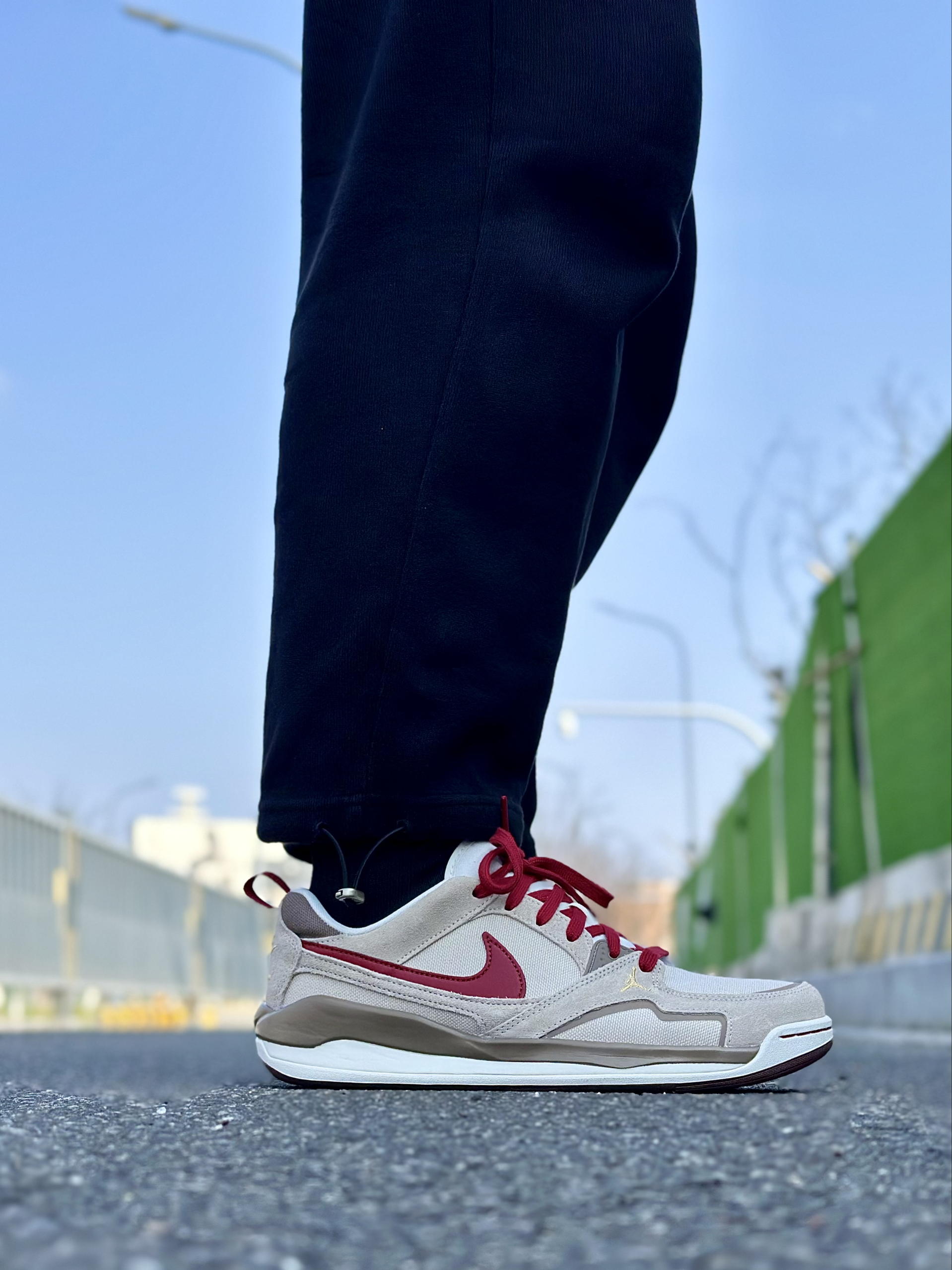 这双耐克鞋真的长在我审美点上!浅灰+酒红的配色温柔又复古,翻毛皮+网布拼接,质感拉满还透气。酒红色鞋带和Swoosh呼应,后跟金色刺绣NIKE标,细节精致不张扬。 上脚软弹舒服,鞋底支撑够稳,走路久了也不闷脚累脚。不管是配运动裤还是牛仔裤都好看,日常通勤、周末出街都能穿,百搭又耐看,颜值和舒适度双在线,越穿越喜欢!