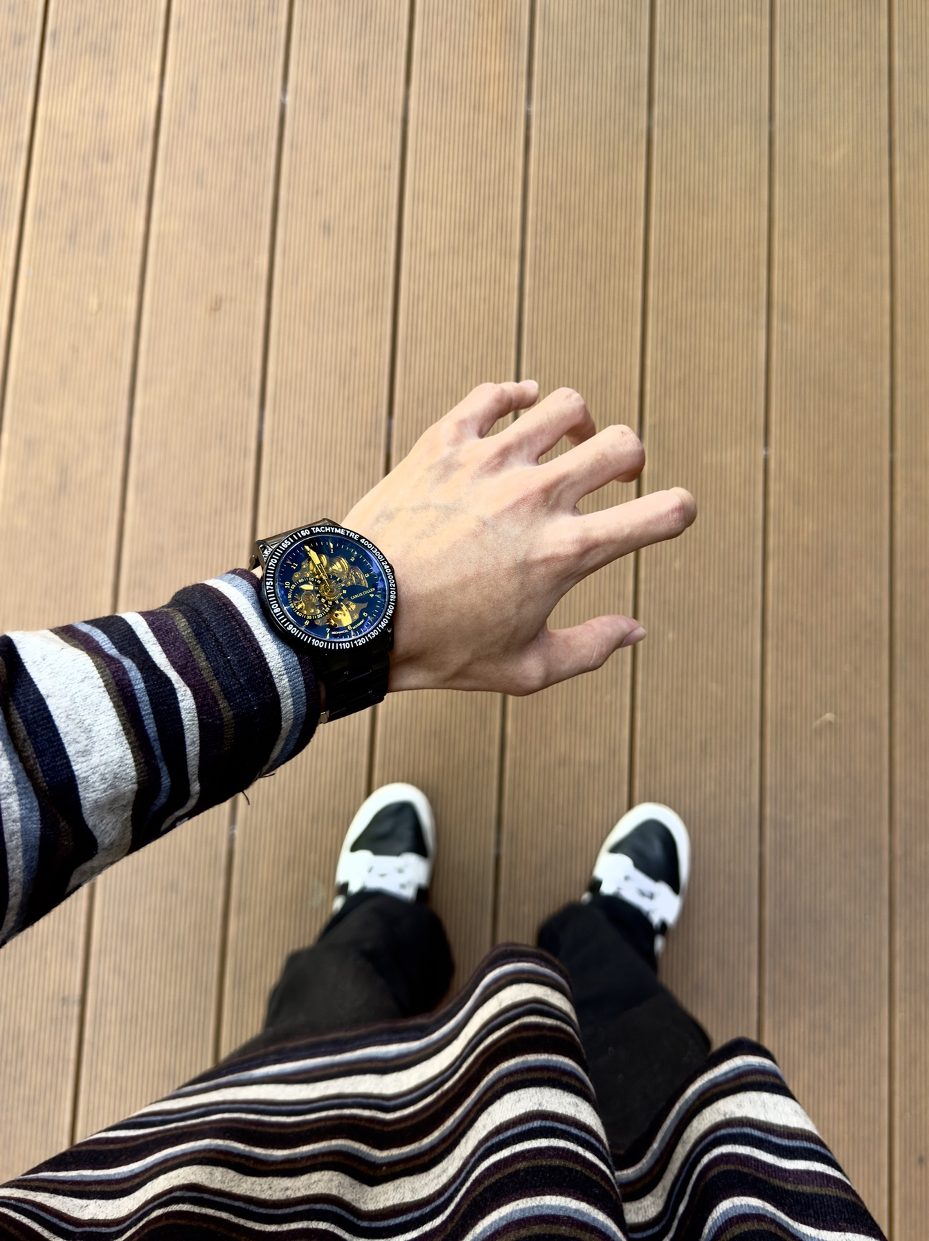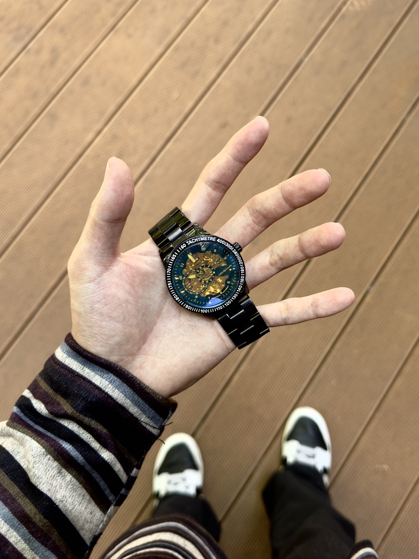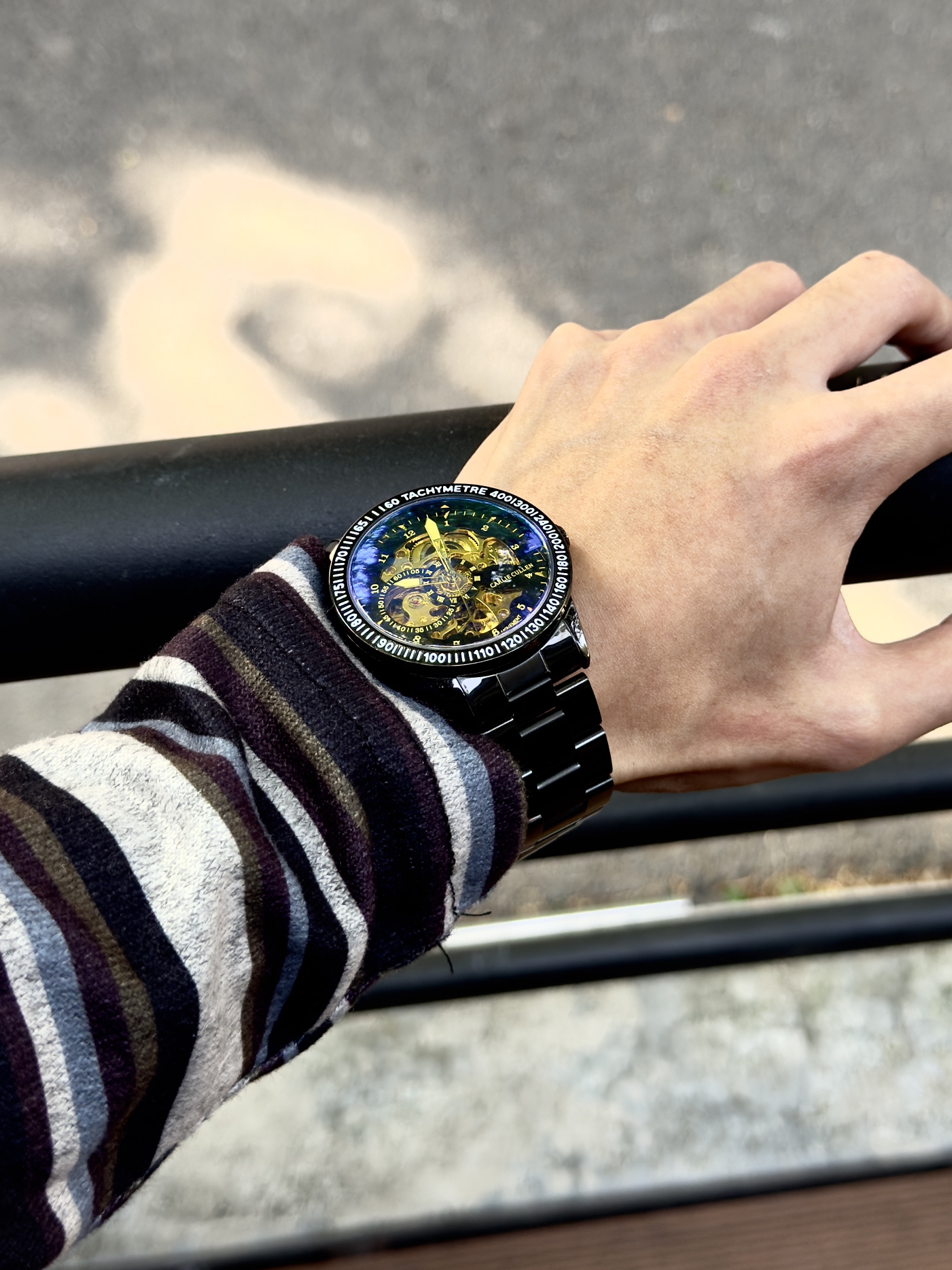 男生还得是戴手表显帅 黑色表身搭配金色表盘 满满的机械感 精钢表带硬朗有质感 是一块能陪我很久的日常表~ 而且精致的礼盒包装给足了仪式感
