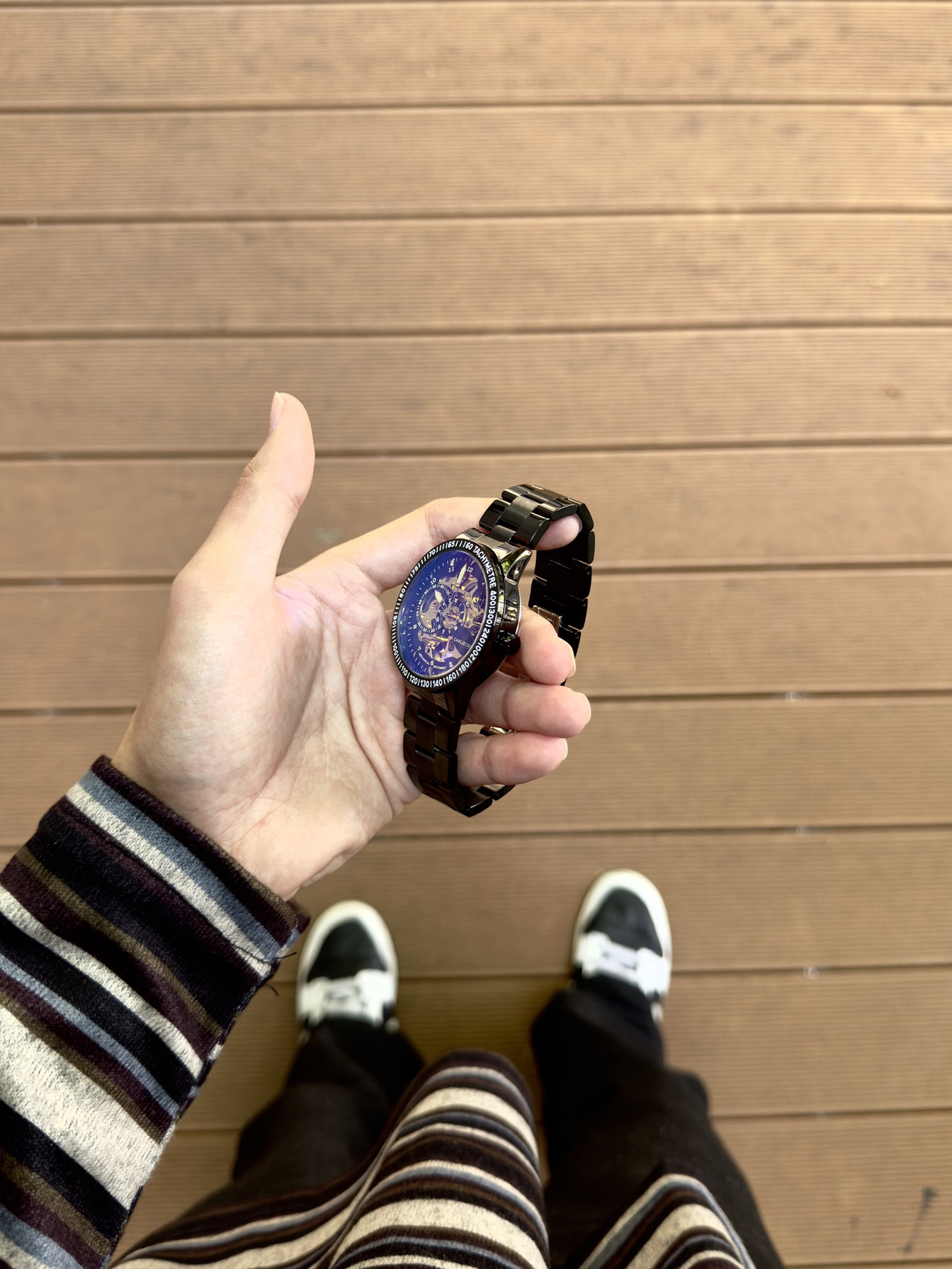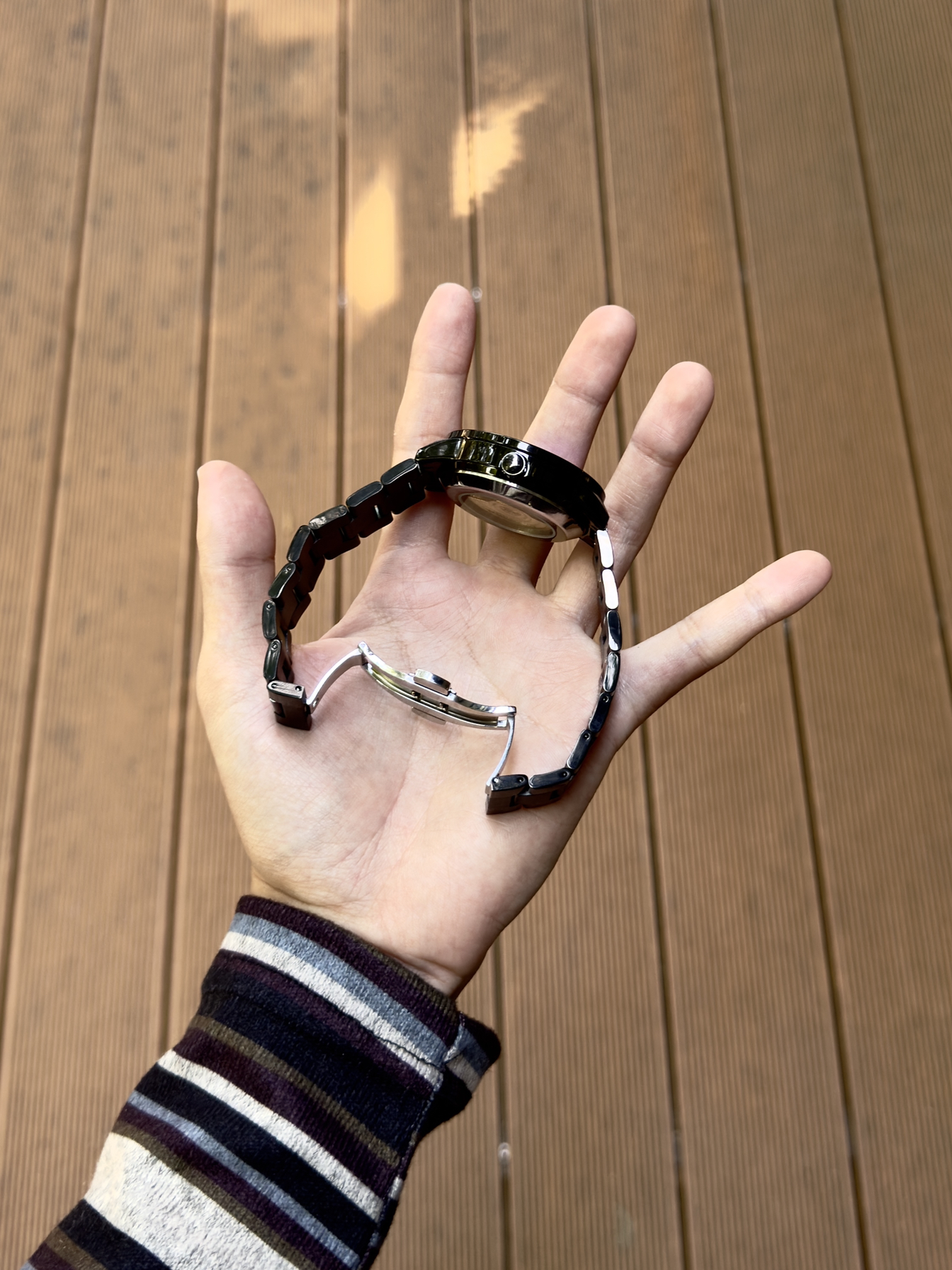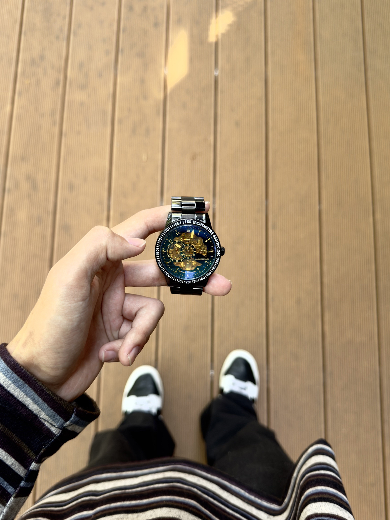 男生还得是戴手表显帅 黑色表身搭配金色表盘 满满的机械感 精钢表带硬朗有质感 是一块能陪我很久的日常表~ 而且精致的礼盒包装给足了仪式感