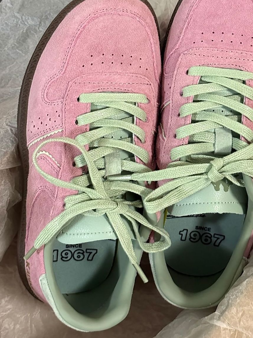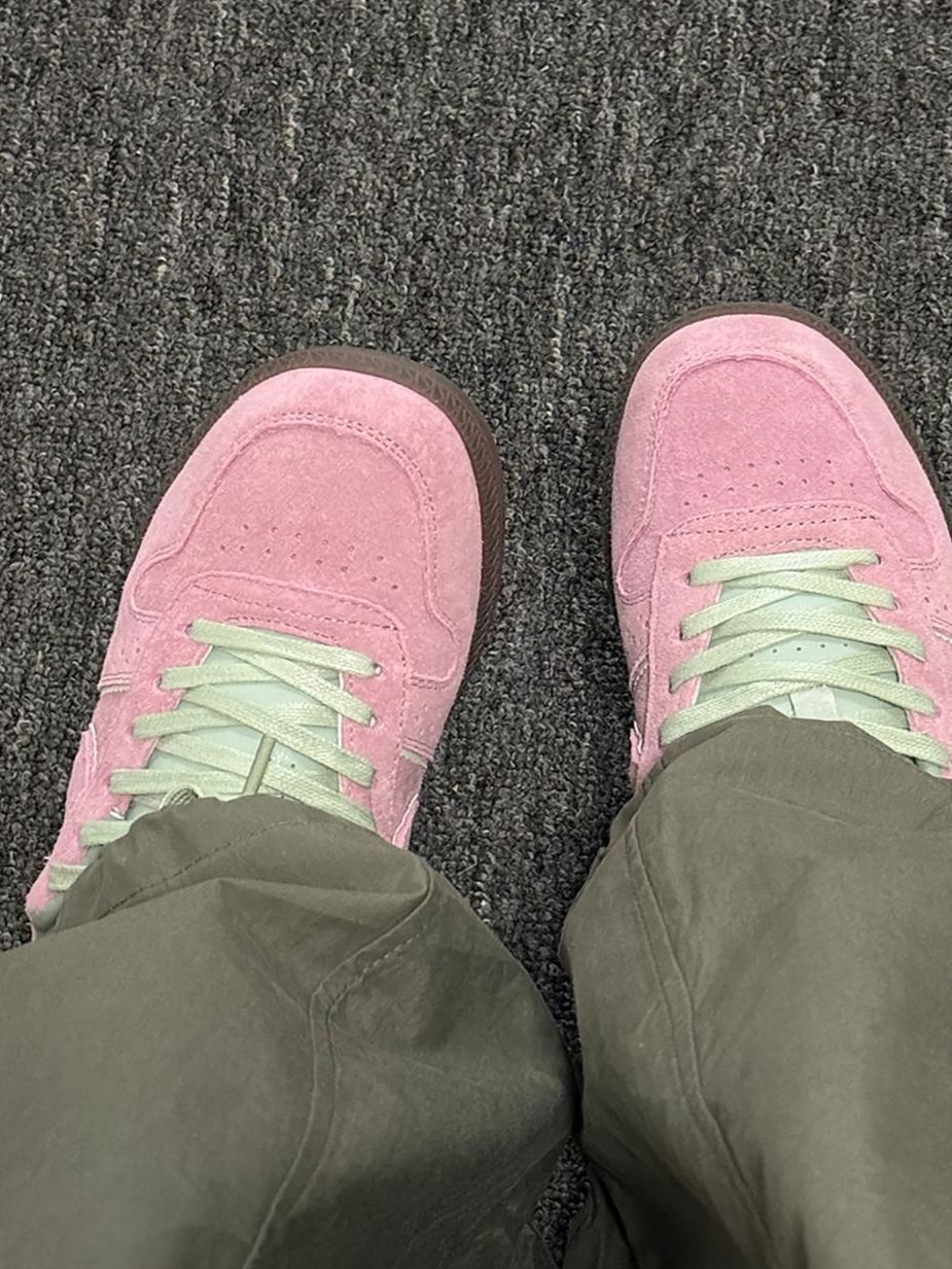 谁懂啊!这双Kappa德训鞋也太会了! 樱花粉麂皮+薄荷绿鞋带,像把春日草莓薄荷奶昔踩在脚下,甜美又显白✨ 生胶底自带复古滤镜,细节拉满,完全不撞款! 低帮鞋型上脚超显瘦,配牛仔裤是甜酷少女,搭裙子就是温柔小仙女,春天穿它出门,回头率直接拉满!