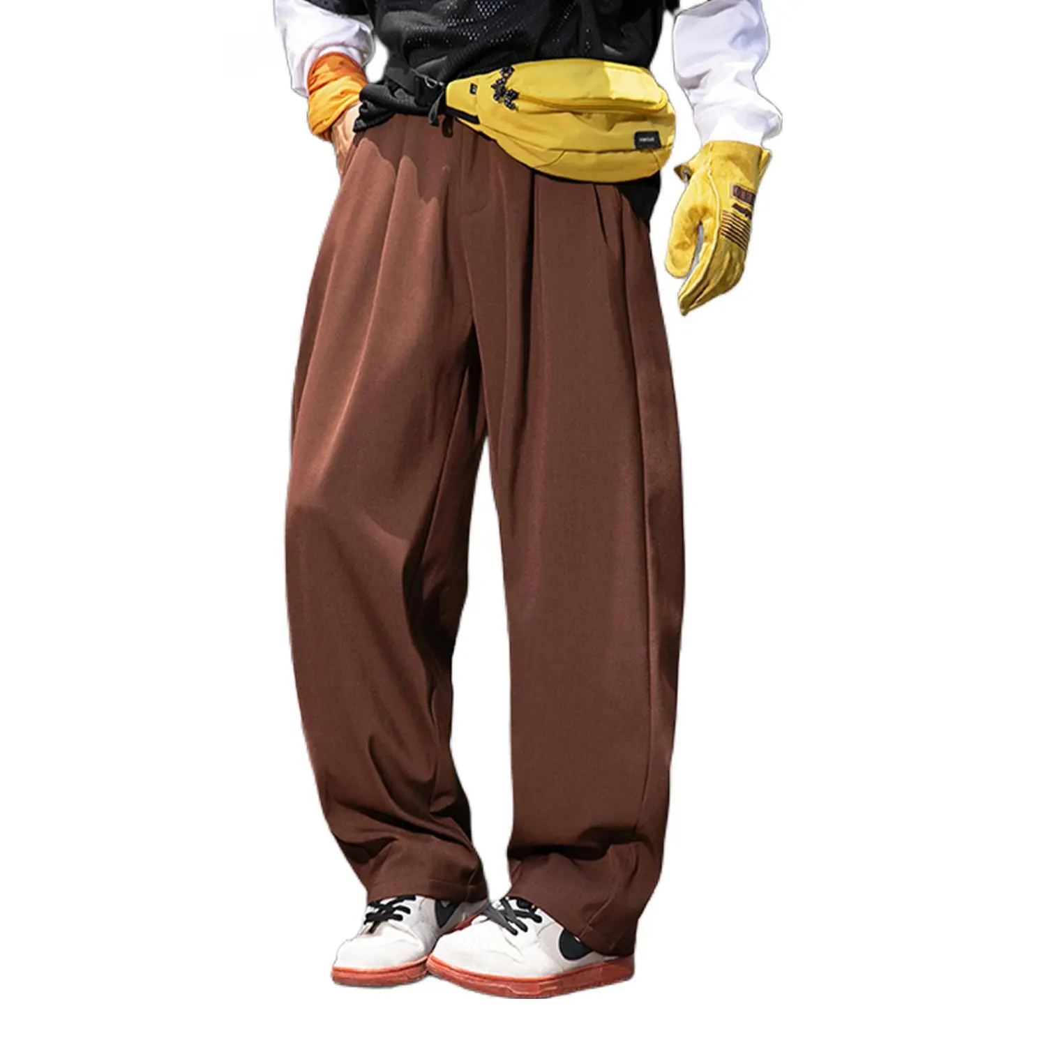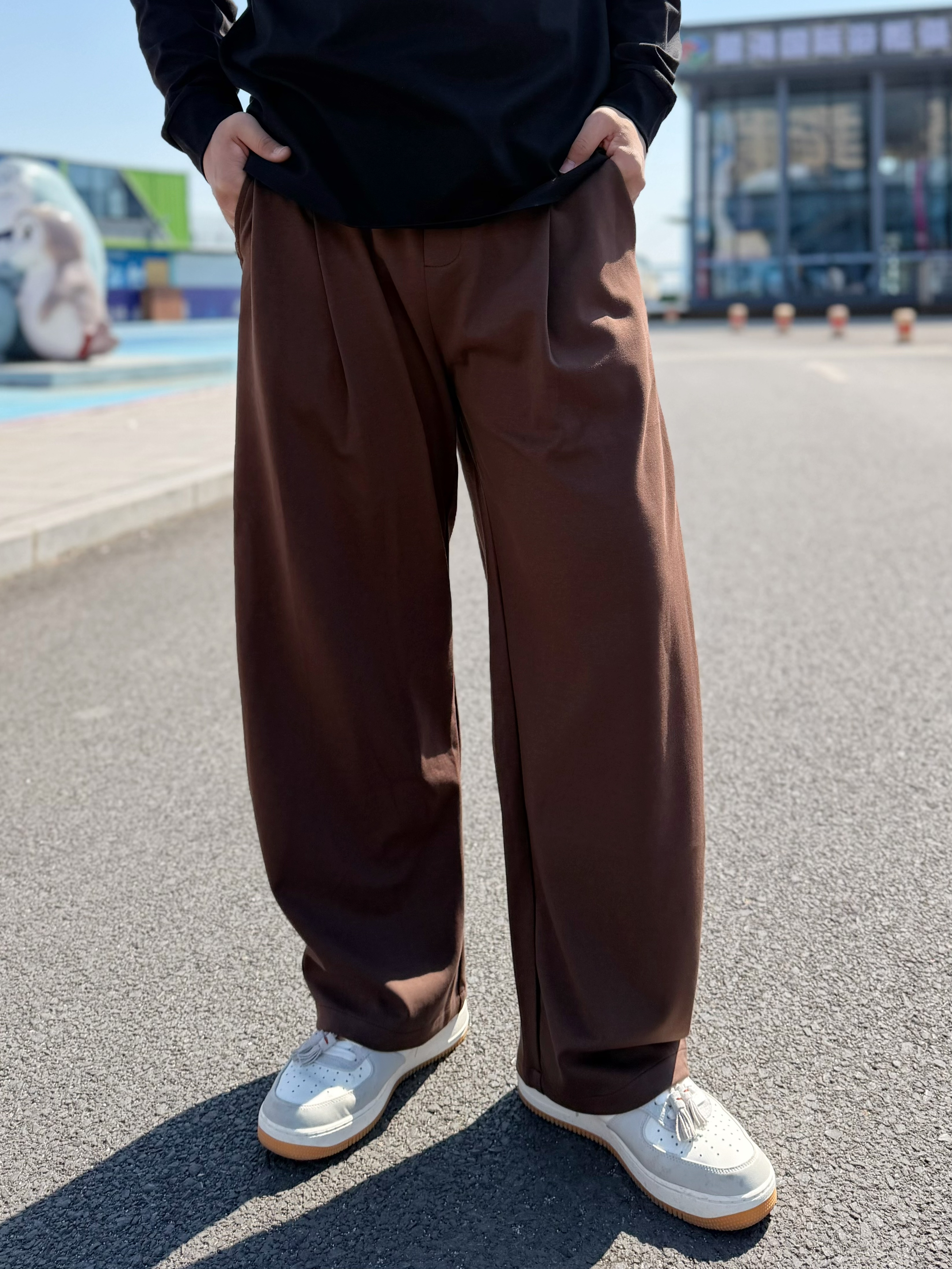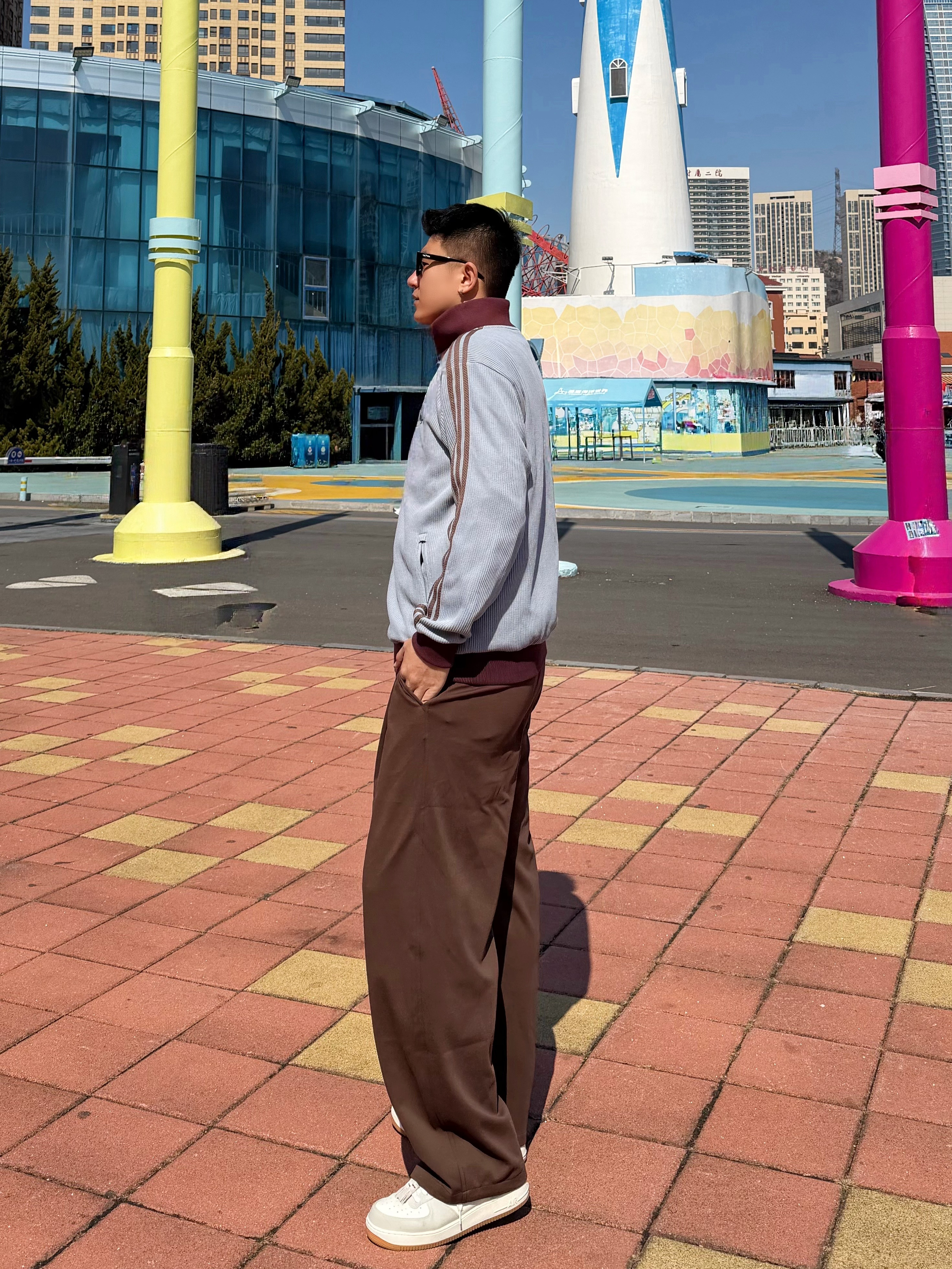 家人们谁懂啊 一件黑T➕这条棕色弯刀裤➕米白板鞋 整个人看起来就是那种 没怎么打扮但就是很会穿的高级感✨ ▪️面料垂坠,很舒服 ▪️棕色很百搭,版型好看 ▪️走路很修饰腿型,腿粗也看不出来 这不就是我想要的cleanfit嘛🖤 👦🏻:188 | 85 👖:XXL