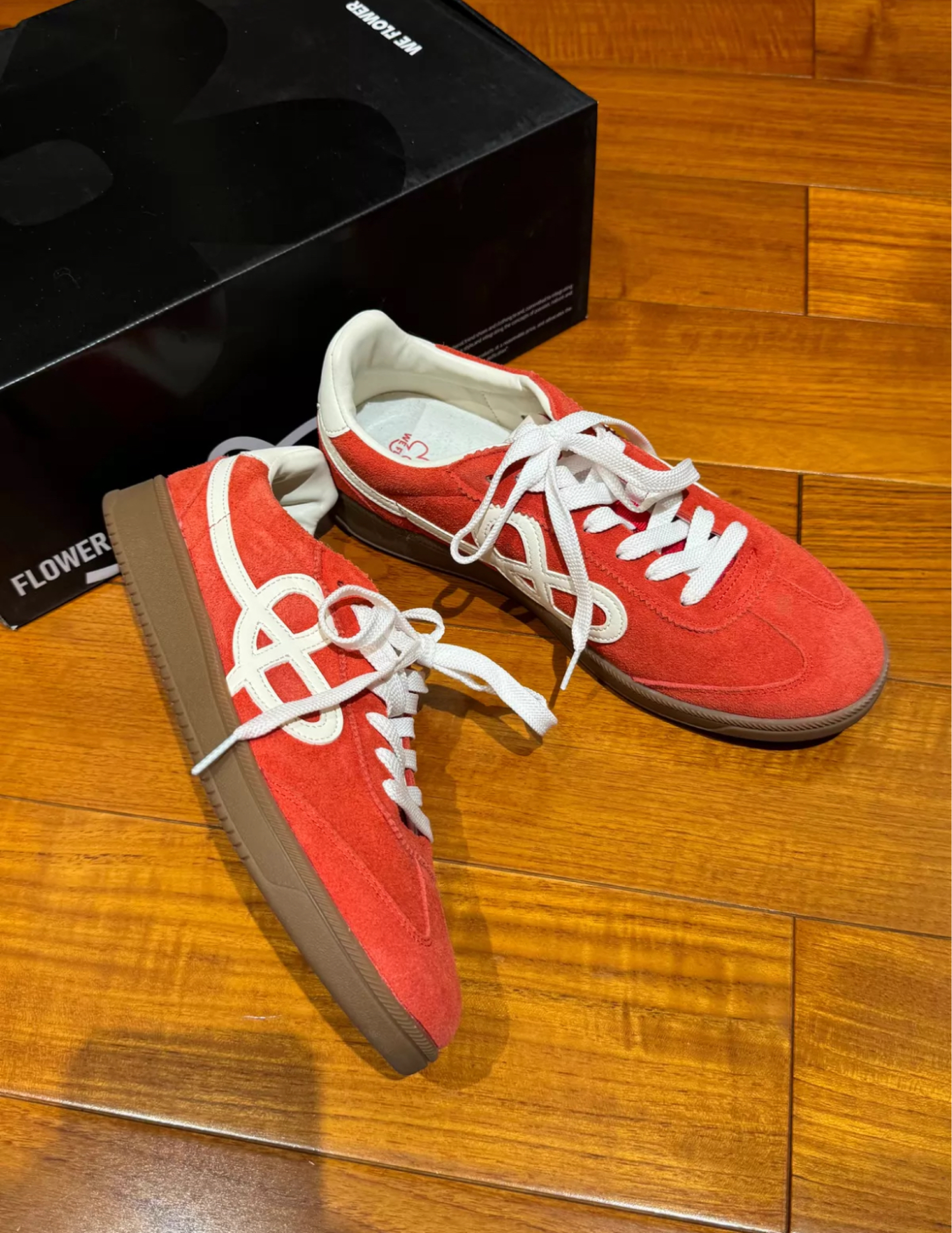 🔥本命红德训鞋!把春天穿在脚上 这双We Flower红德训真的戳中我心巴! 翻毛皮质感软糯又复古,鞋侧小花logo超精致 生胶底+软弹中底,暴走一天都不累脚 搭牛仔裤是美式复古辣妹,配小裙子秒变甜妹 红得很正,显白又吸睛,春天氛围感直接拉满✨