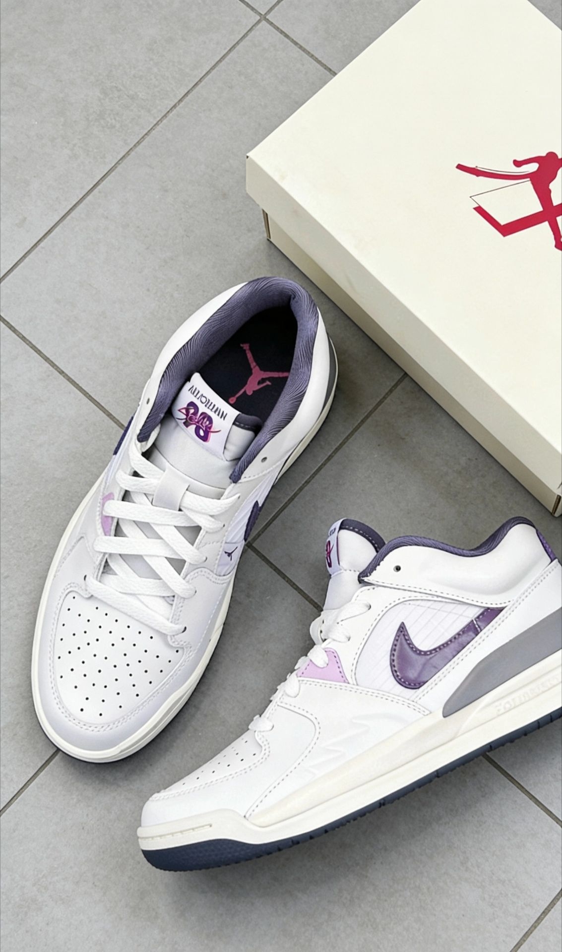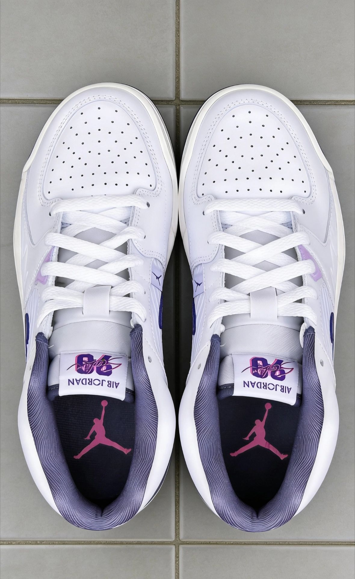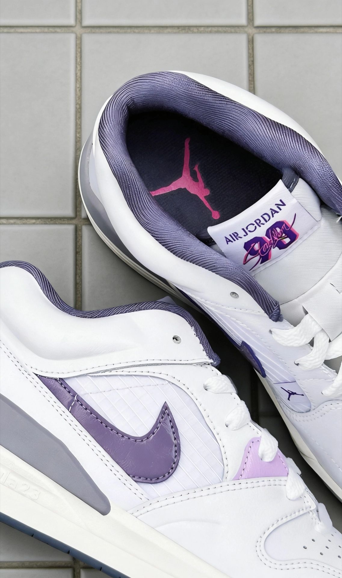 这双AJ复古鞋上脚真的太惊喜了!白紫灰撞色温柔又高级,鞋型利落不臃肿,小个子也能轻松驾驭。鞋舌和后跟的细节设计很有辨识度,走在街上回头率超高。 脚感方面,Formula 23中底软弹适中,日常通勤或逛展久走也不累,包裹性刚好,不磨脚不挤脚。皮革鞋面质感细腻,微微做旧的米白中底自带复古滤镜,搭配牛仔裤、运动裙都很适配,是一双能hold住多种风格的宝藏鞋款,颜值与舒适度双在线!#复古潮鞋天花板 #复...