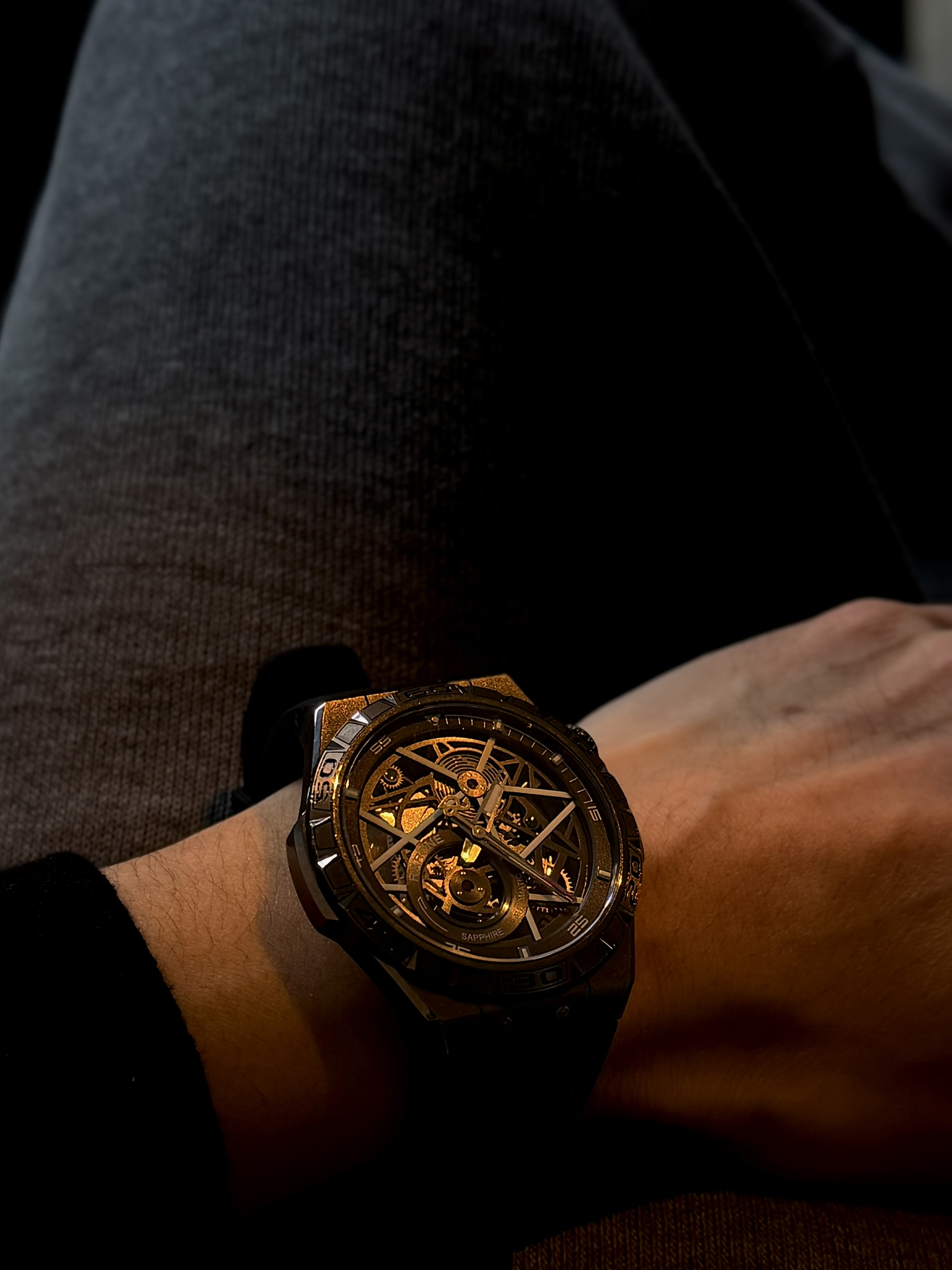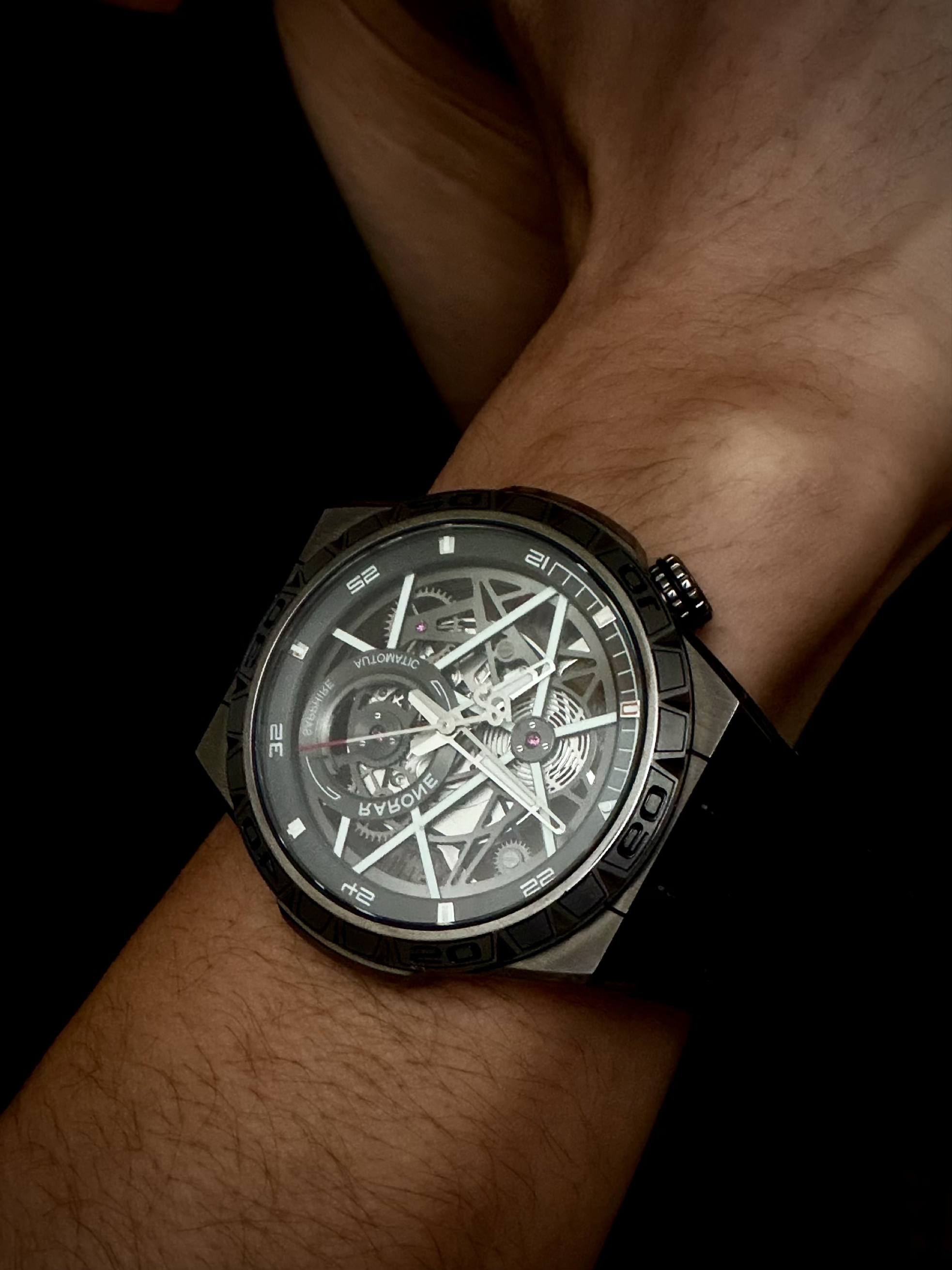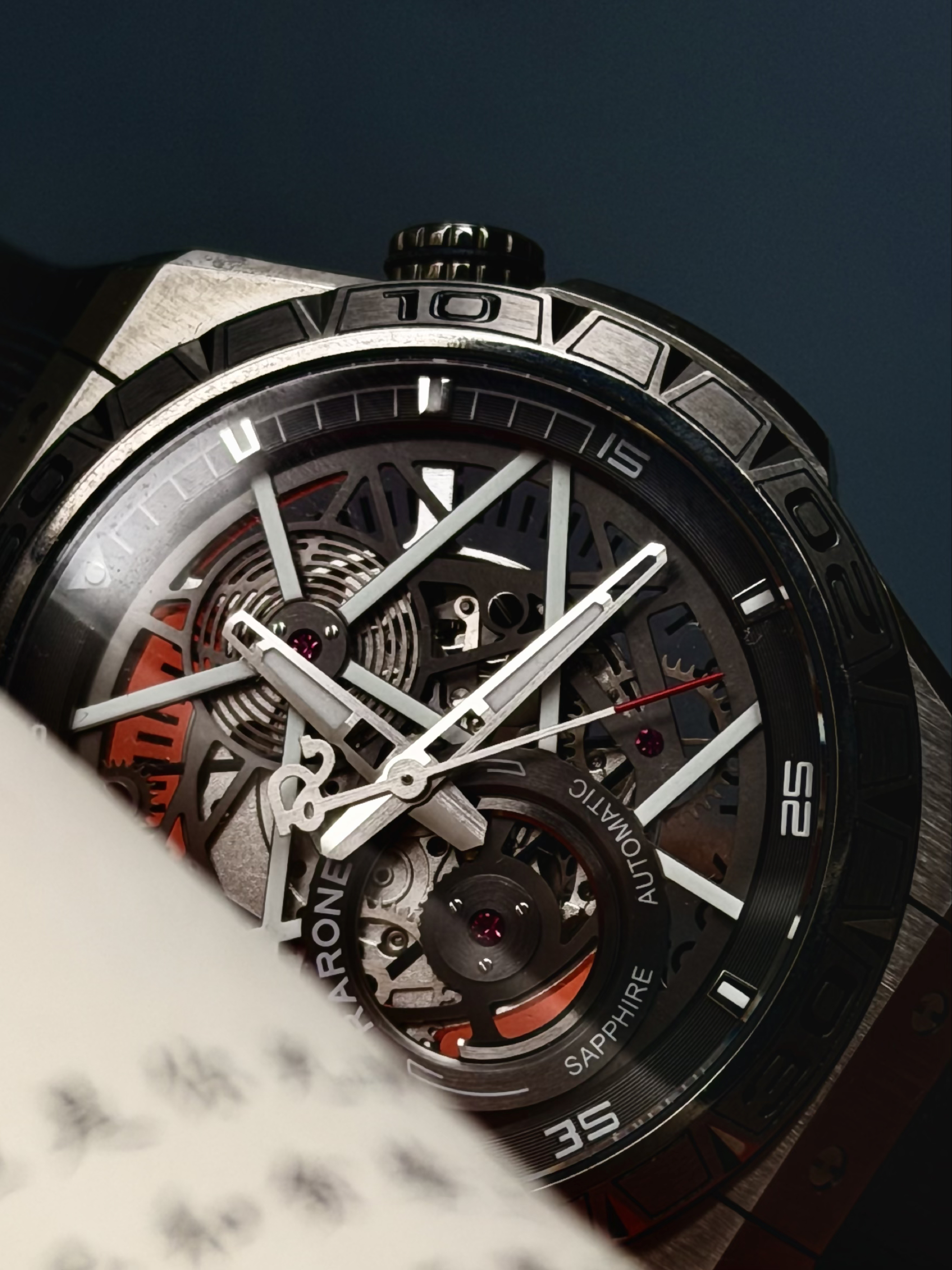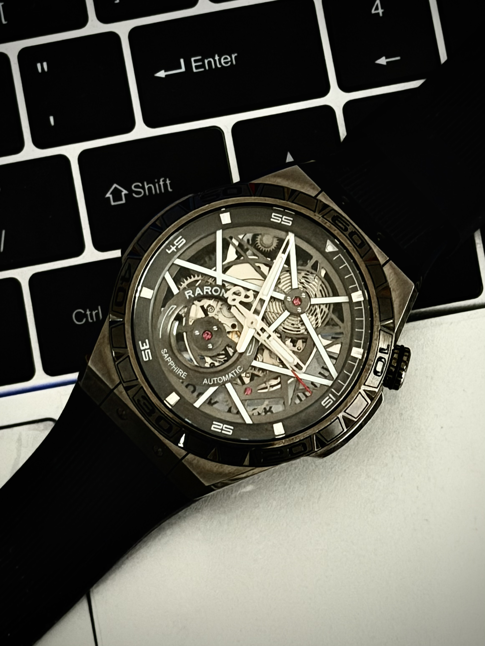 大学那会儿,刷到过一张图——全镂空的机械表盘,齿轮在玻璃底下慢慢转动,黑色的表盘深邃又高级。 当时就想着:等工作了,第一份工资就买它。 后来这张图早就不记得存哪了,但那种“想要一块镂空机械表”的念头,一直没散。 上个月刷得物,看到 RARONE雷诺表 双子星——全镂空机芯,黑色表盘,硅胶表带,夜光防水…… 脑子里突然就蹦出那句话:就是它了。 开箱那一刻 礼盒装,打开的时候还有点仪...