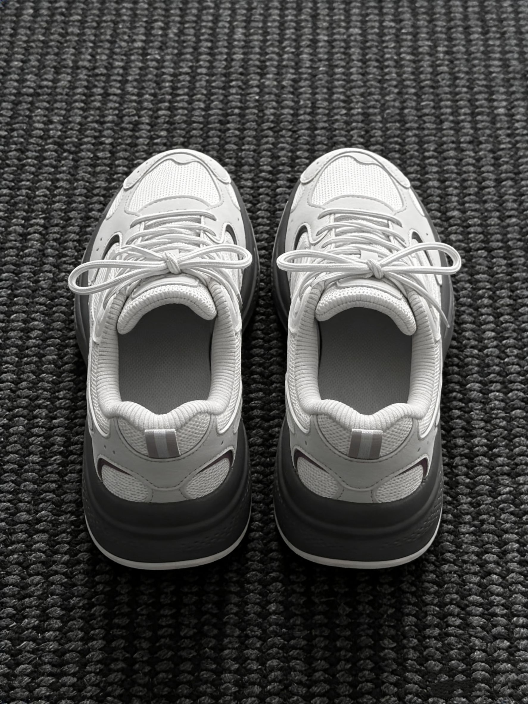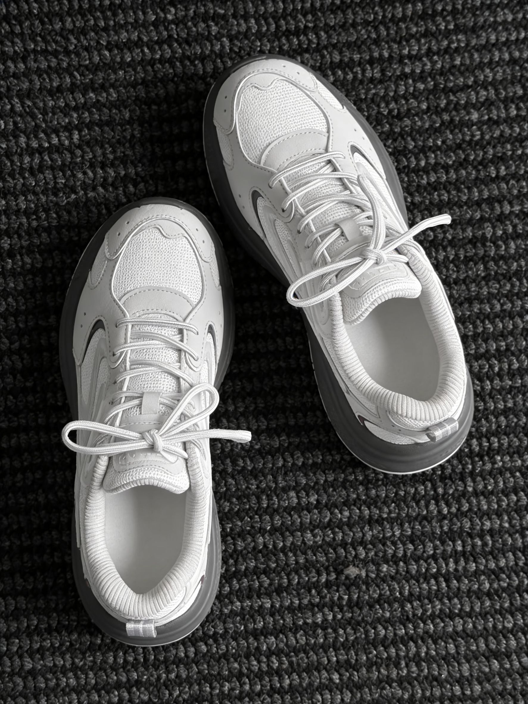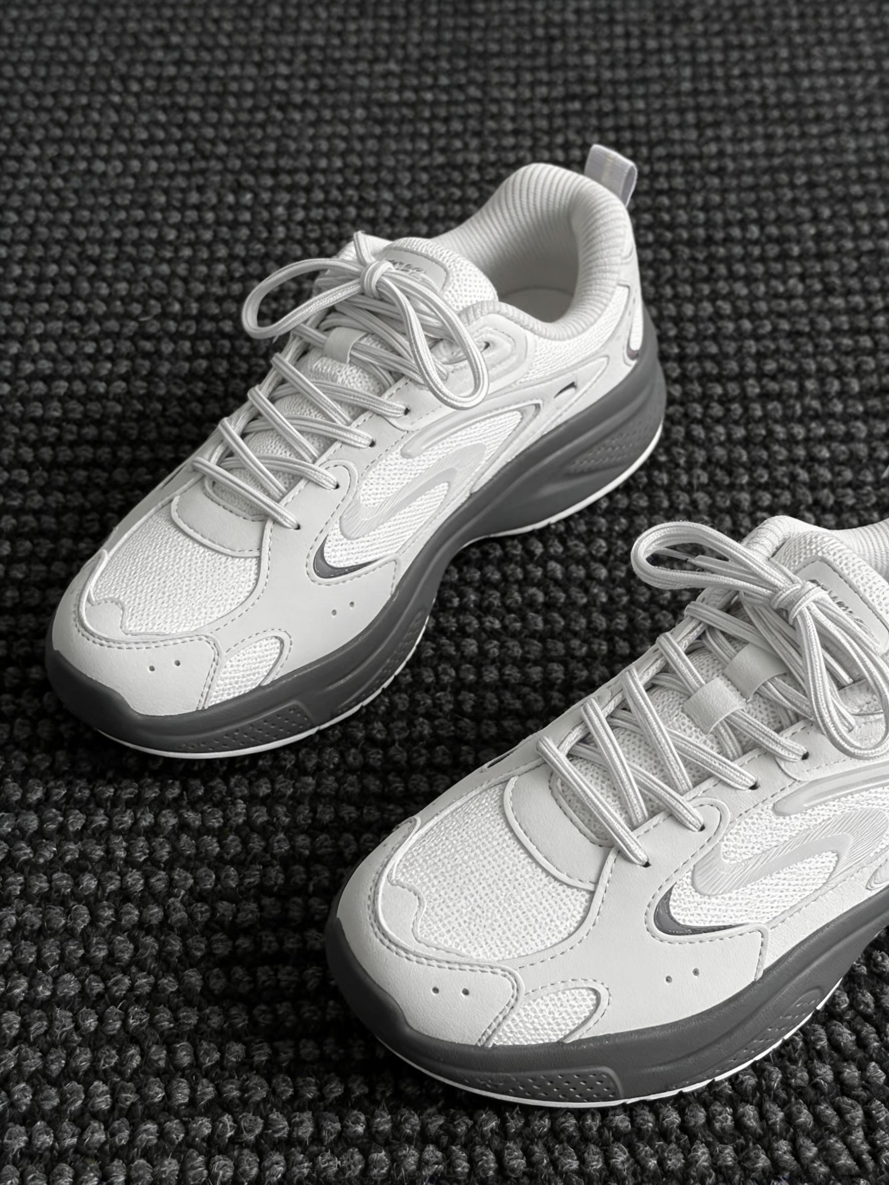 这是一双安踏星光3,纯白配色搭配网布与皮革拼接,线条立体流畅,自带千禧风滤镜。上脚第一感觉是轻盈,厚底设计悄悄拉长腿部比例,日常通勤、逛街、校园漫步都毫无压力,脚感软弹不累脚,简直是“增高+舒适”双buff叠加。 不过它也有小缺点:鞋身结构复杂,清洁时需花点心思;网面虽透气,但雨天或泥泞路面容易脏,需勤打理。如果你是追求颜值与舒适并重的“懒人党”,这双鞋绝对是春夏出街的宝藏单品。你平时穿老爹鞋最...