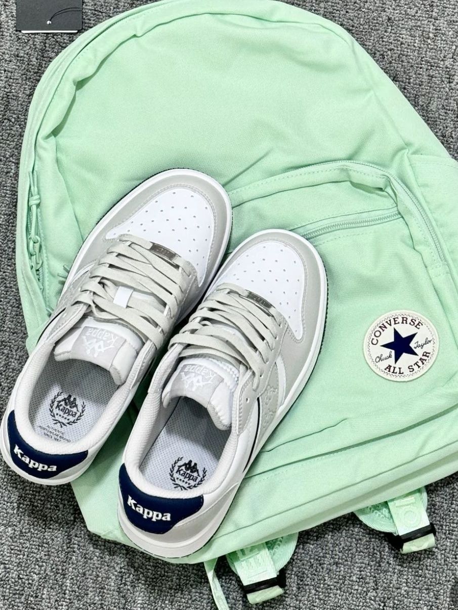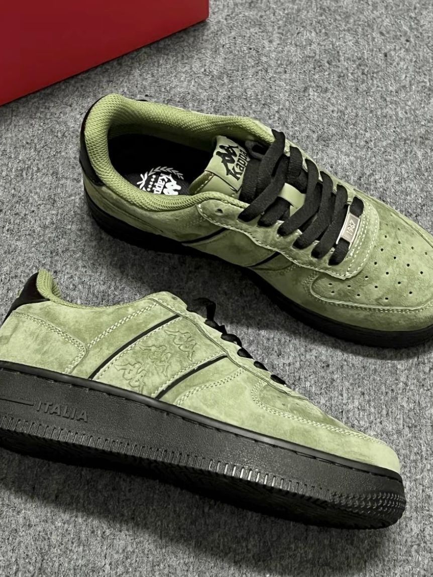 这双Kappa橄榄绿板鞋把复古工装风拿捏住了!麂皮材质自带高级质感,黑绿撞色鞋带+金属鞋扣,后跟刺绣小人标细节拉满。厚底设计悄悄增高,配工装裤、牛仔裙都超适配,酷飒随性还显质感,是春日街头穿搭的宝藏鞋款。