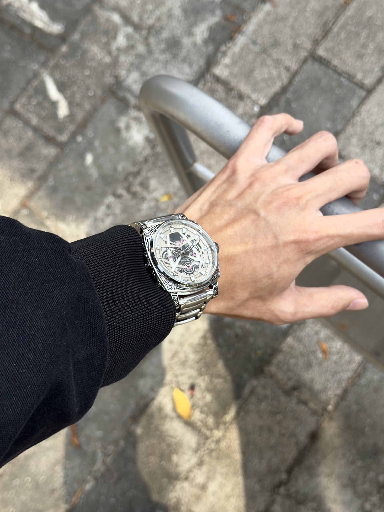 被我发现了一块帅气的机械表⌚️ 素奥刻家的~ 表盘设计尊嘟好酷诶 红钻石镶嵌也泰酷了吧 blingbling滴~ 男生戴还蛮有清爽少年感的 搭配T恤干净利落 无需多余的装饰