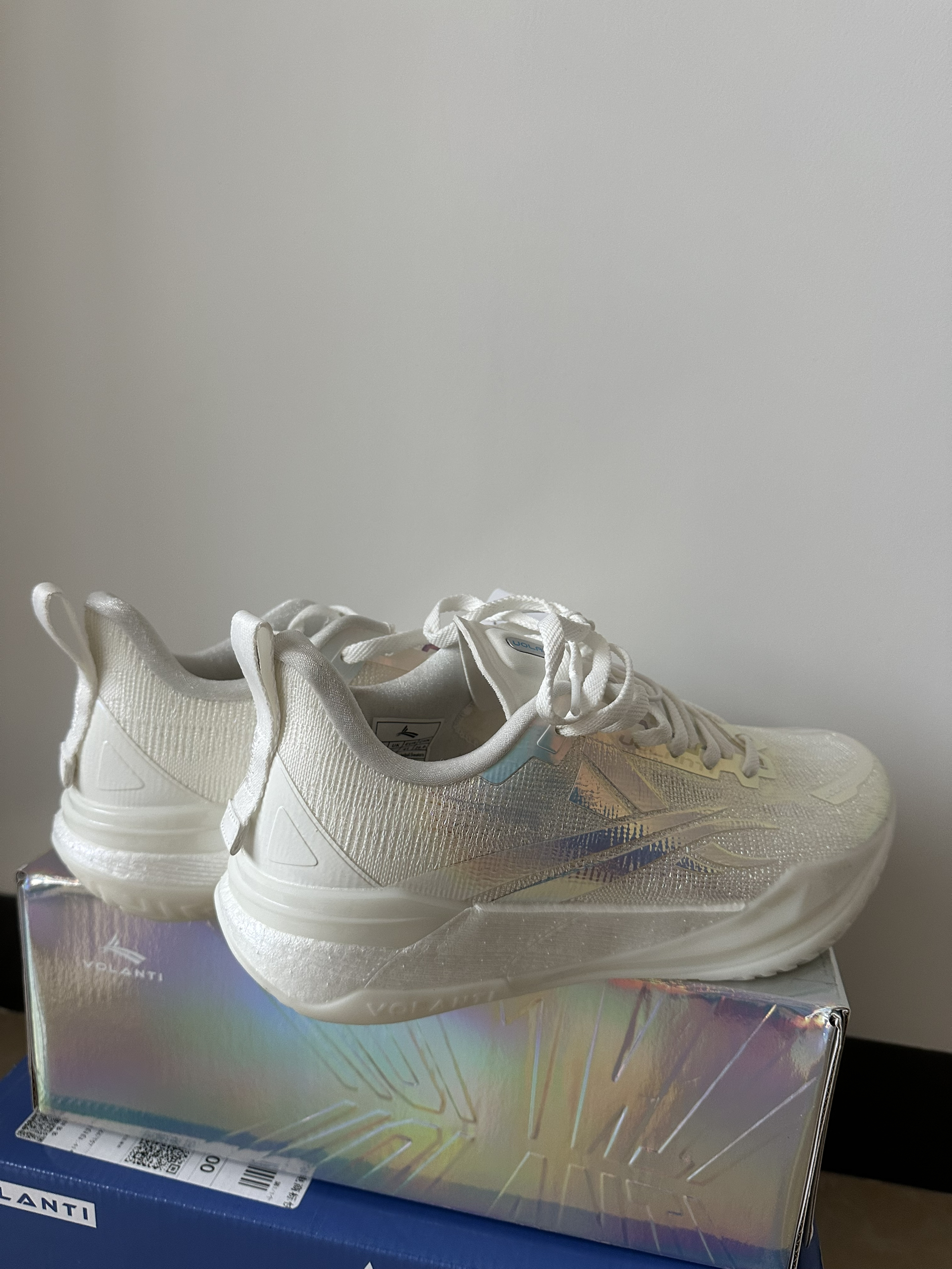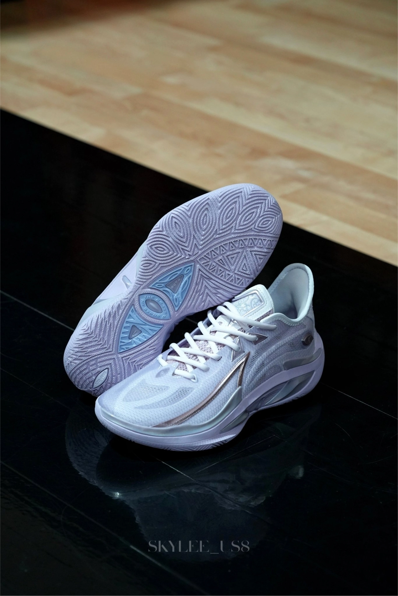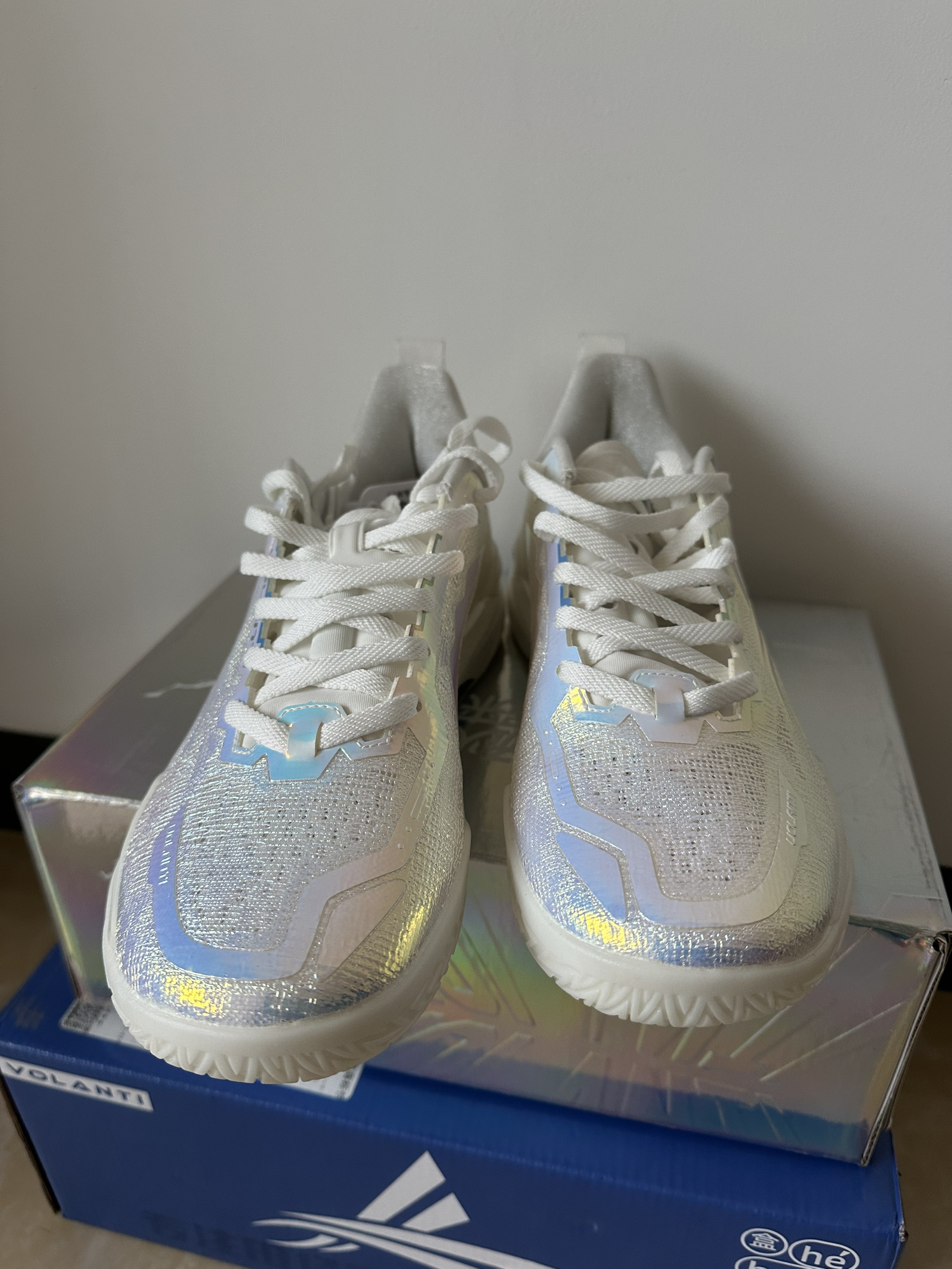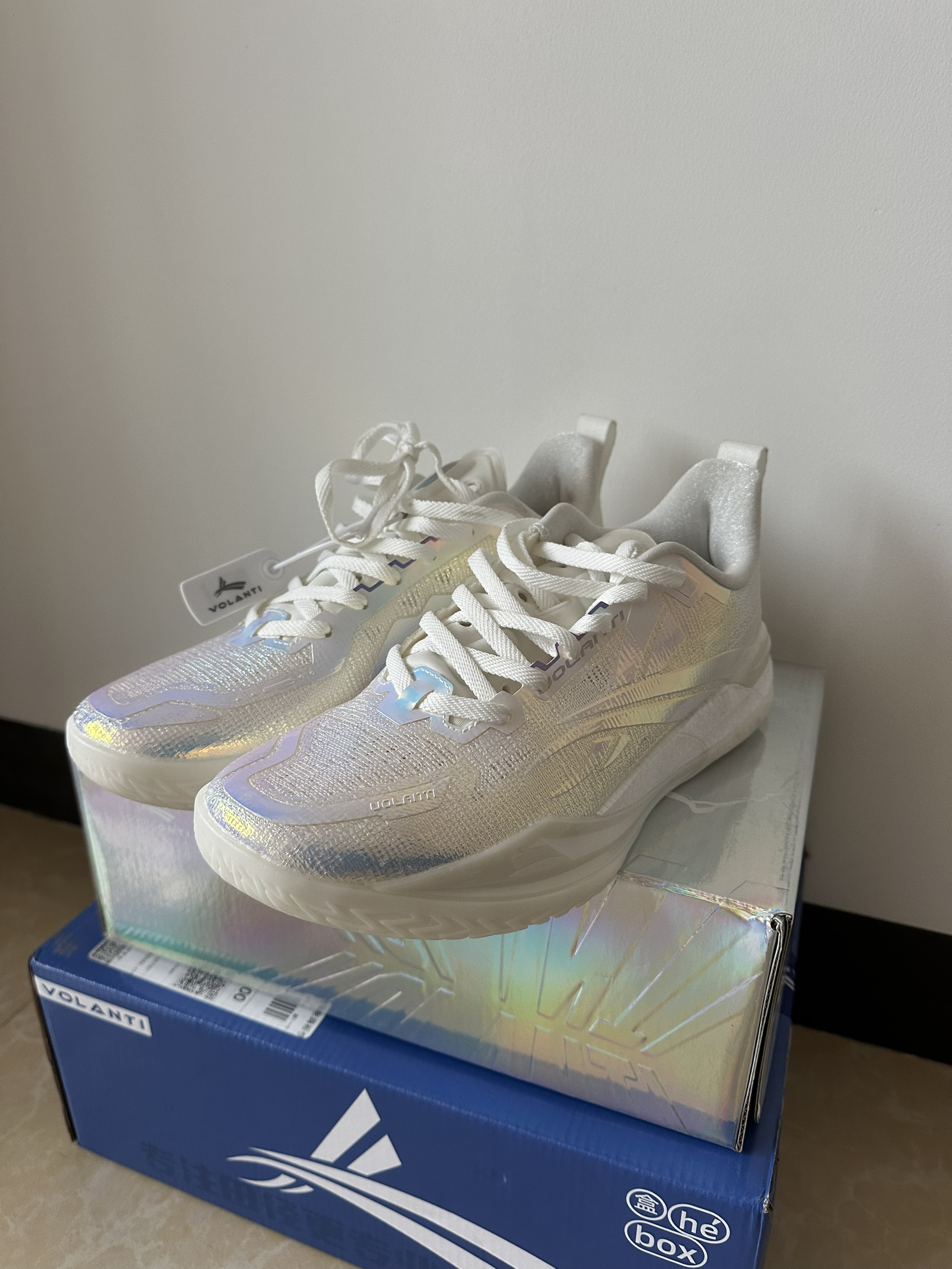 #校园篮球实战党 这周校园联赛开始,开箱刚到手沃兰迪911篮球鞋,镭射蓝银鞋面在灯光下泛着彩虹光泽,鞋身的闪银材质和透明冰底搭配,低帮鞋型勾勒出利落线条。本人一百四十斤比赛时上脚打两节比赛,中底反馈偏韧弹,突破启动蹬地超干脆,场地感拉满。鞋面的包裹紧致不压脚,系紧鞋带后变向稳得很,只是镭射材质有点沾灰,打理起来麻烦。校园球员、颜值党都能穿,就是大体重穿它不清楚缓震够不够?