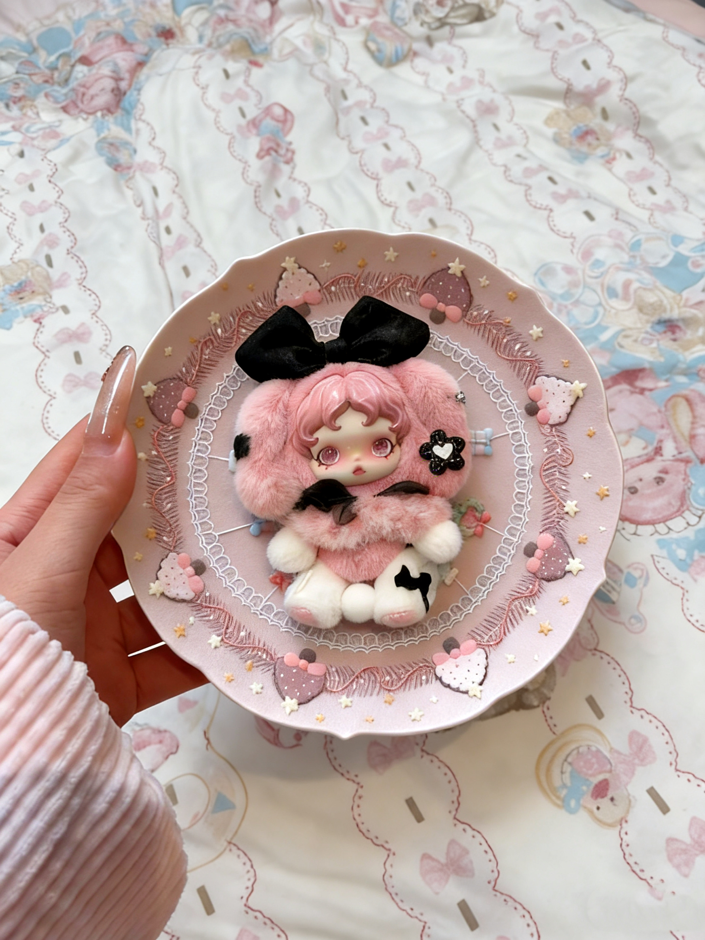 终于蹲到泡泡玛特和美乐蒂的联名挂件啦,粉粉的毛绒质感软乎乎的,上手摸着超舒服~黑蝴蝶结和小装饰的细节戳中少女心,挂在包上或者摆着都超敲好看 ~ 实物比图片还要精致很多。拆袋的瞬间真的被可爱晕了,这种甜酷的风格我很喜欢,感觉是近期买到最合心意的小物件啦✨ #POPMART泡泡玛特 #2025年度好东西 #三丽鸥美乐蒂 #分享我的宝藏毛绒挂件 #泡泡玛特毛绒挂件