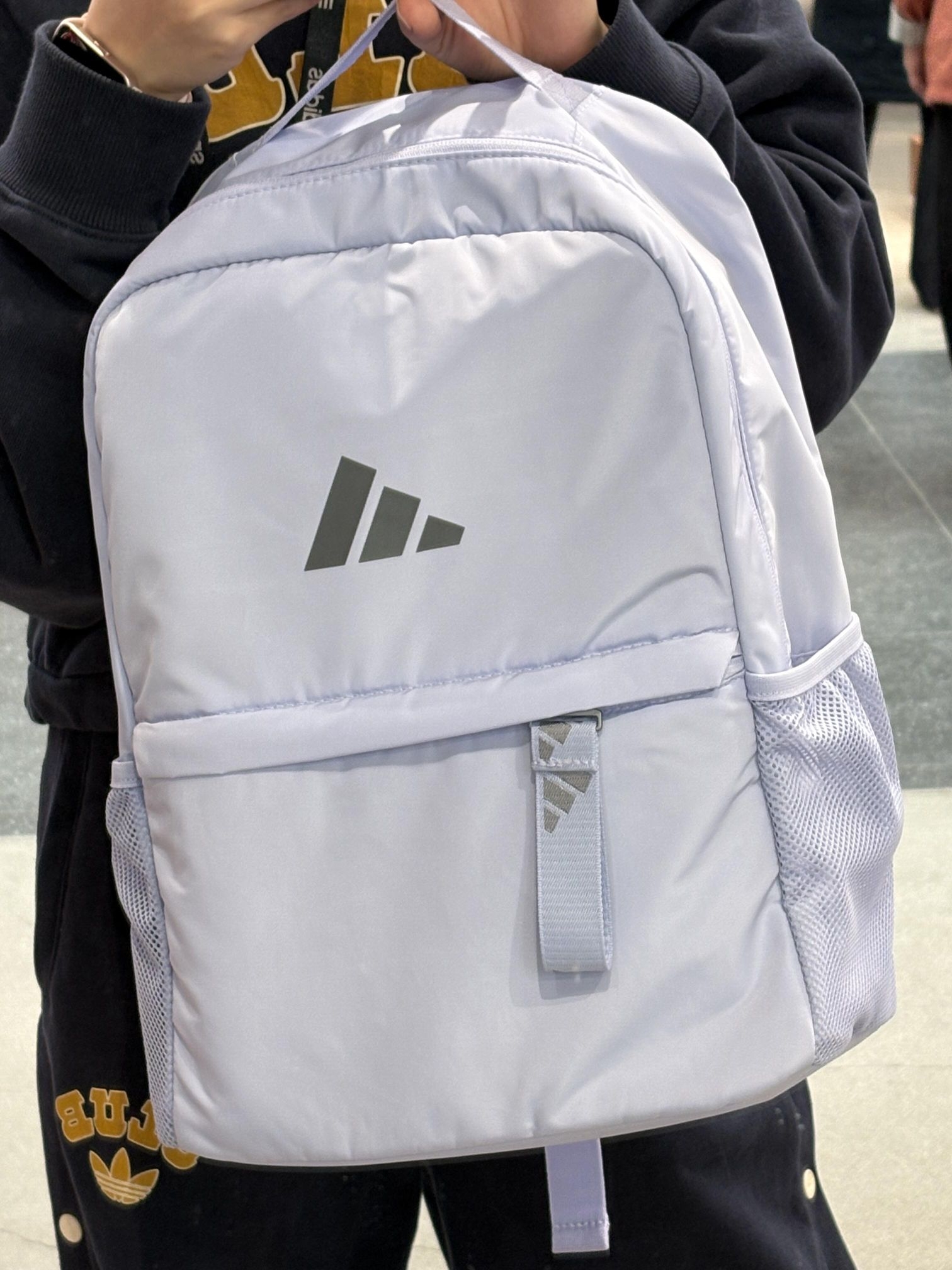 妈耶,这个香芋紫的书包真的好适合学生党呀 包包👜超多,可以分类装好多东西 细节拉链上都有logo 爱了爱了#adidas #适合学生党的双肩包