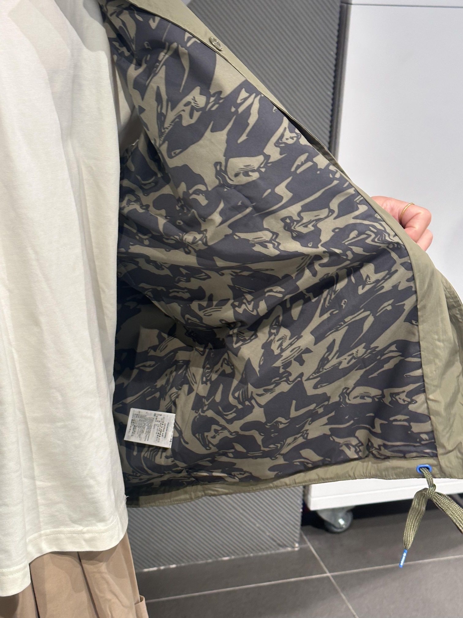 采用再生材质,环保又实用。墨绿色简约设计,蓝色三叶草Logo点缀,辨识度满分✨。轻薄面料,宽松廓形,下摆抽绳可调节,适合多种身材。翻领+按扣开合,穿脱方便,日常通勤或户外都很OK!