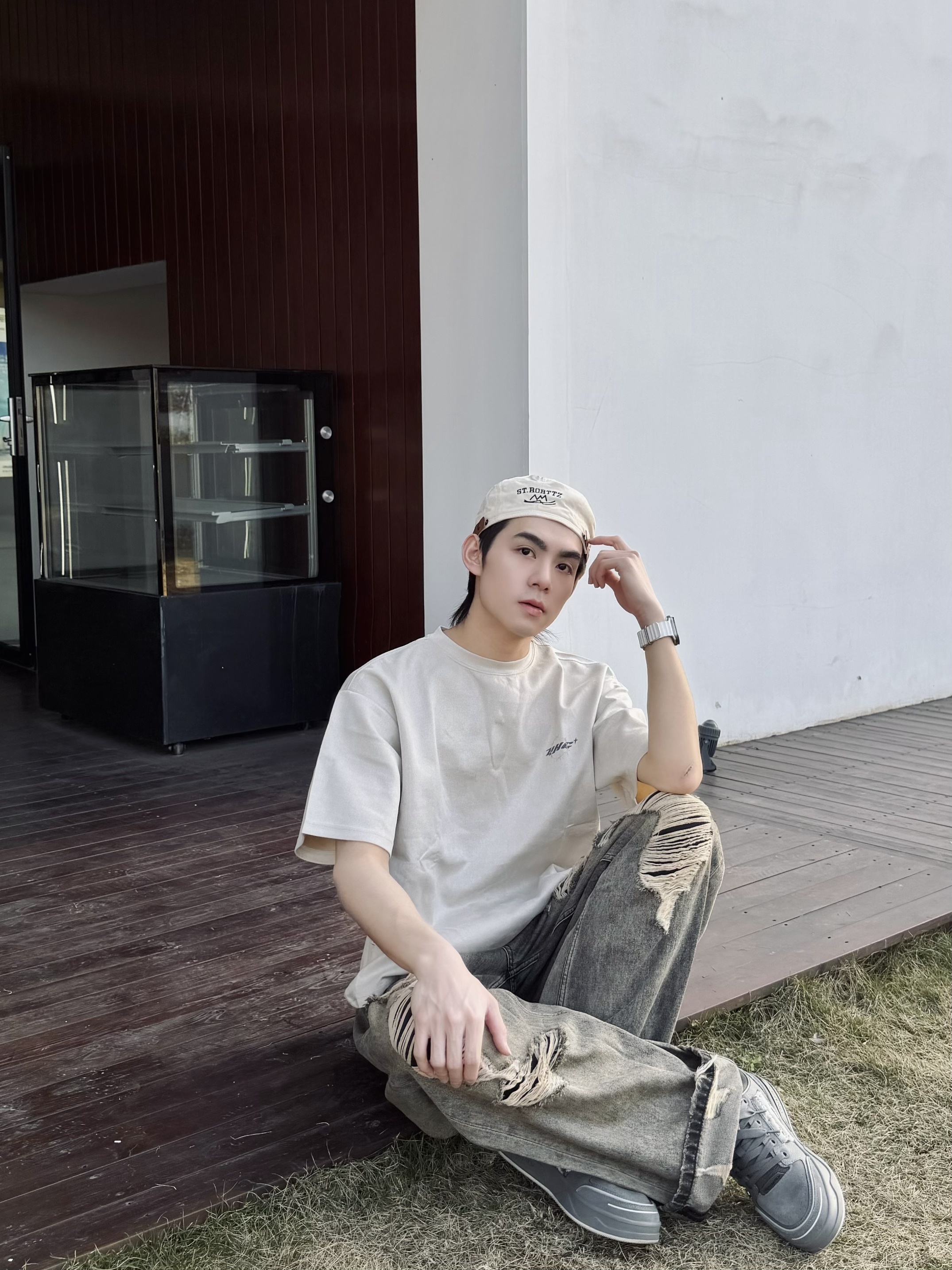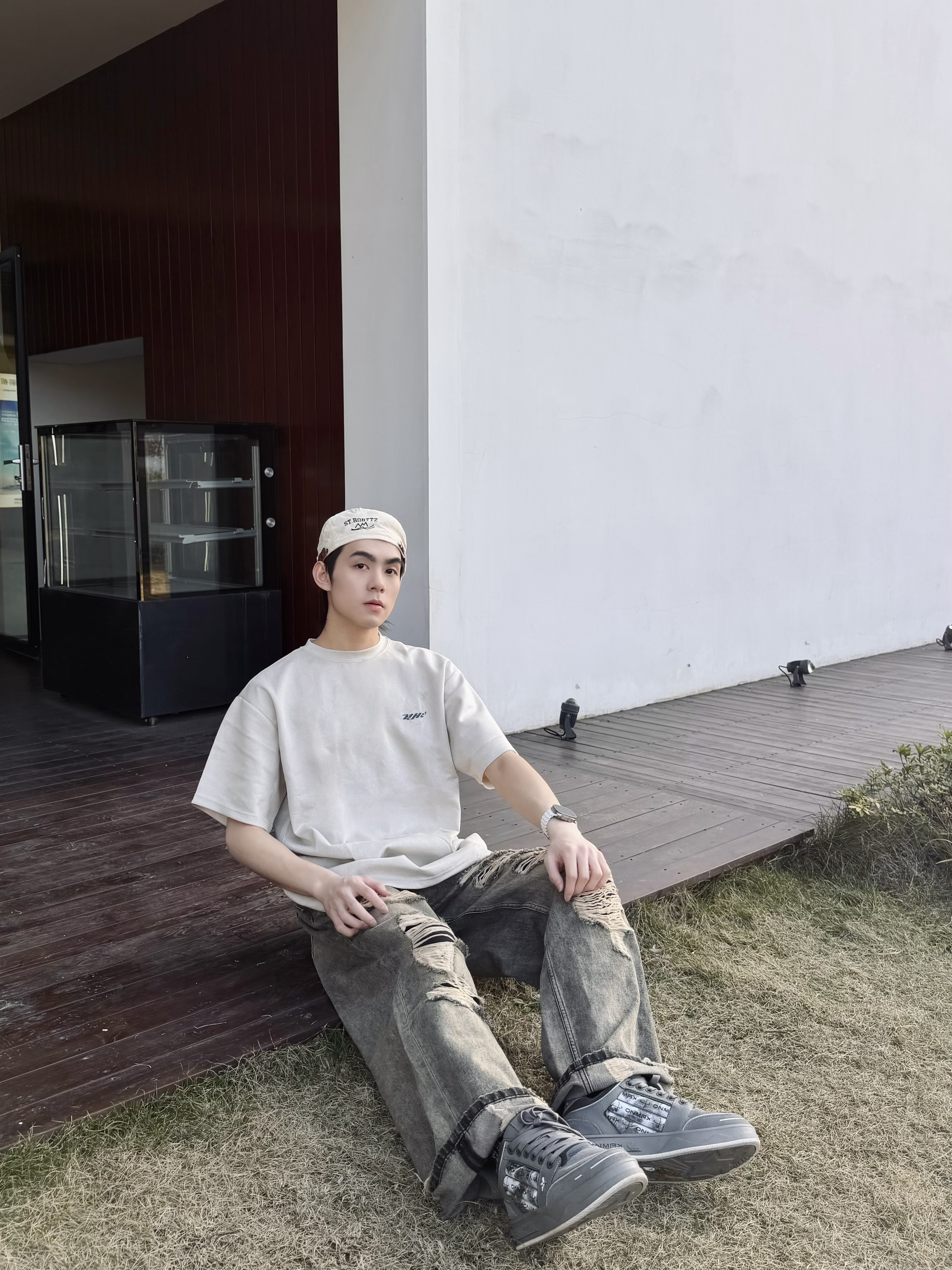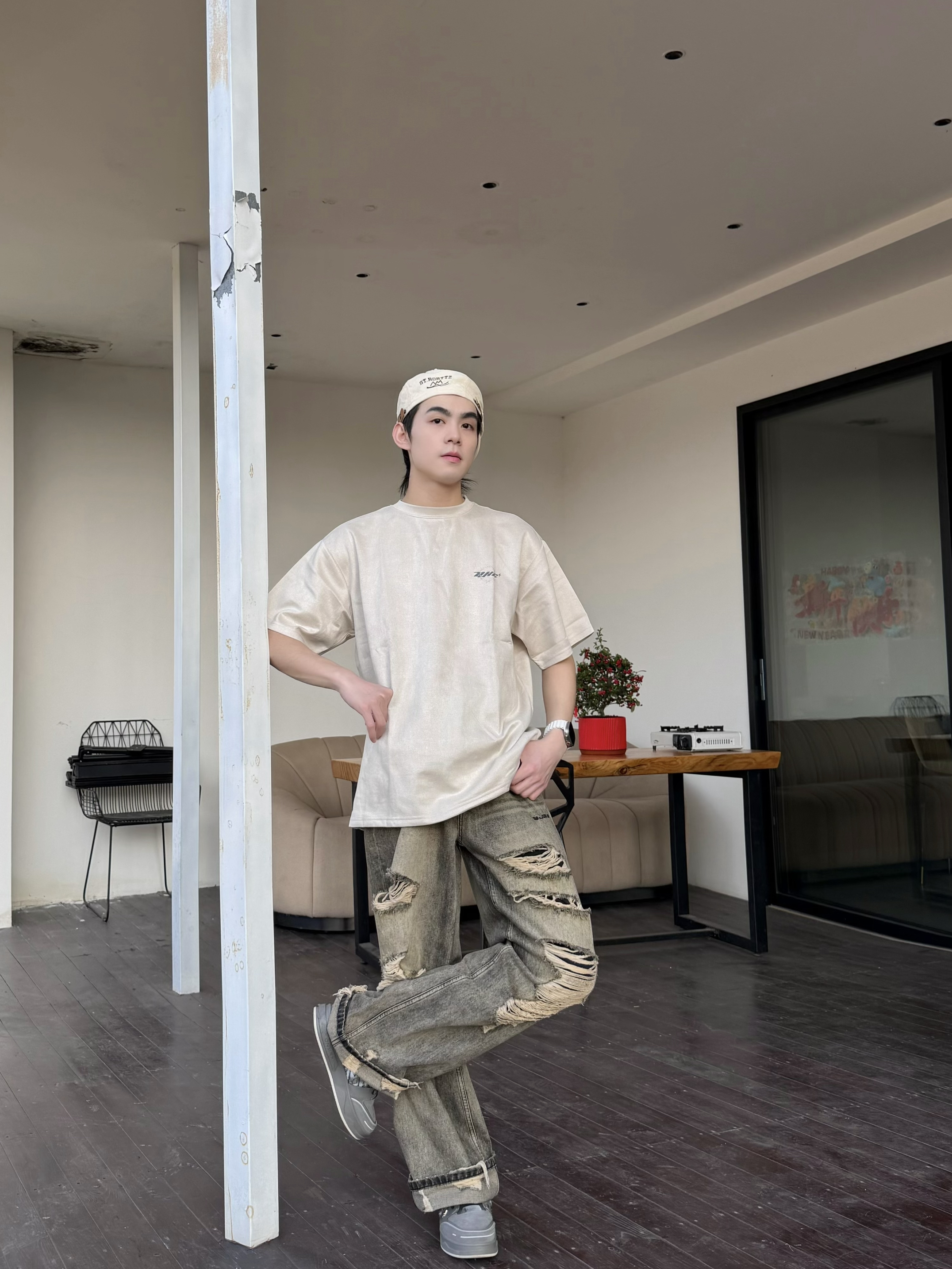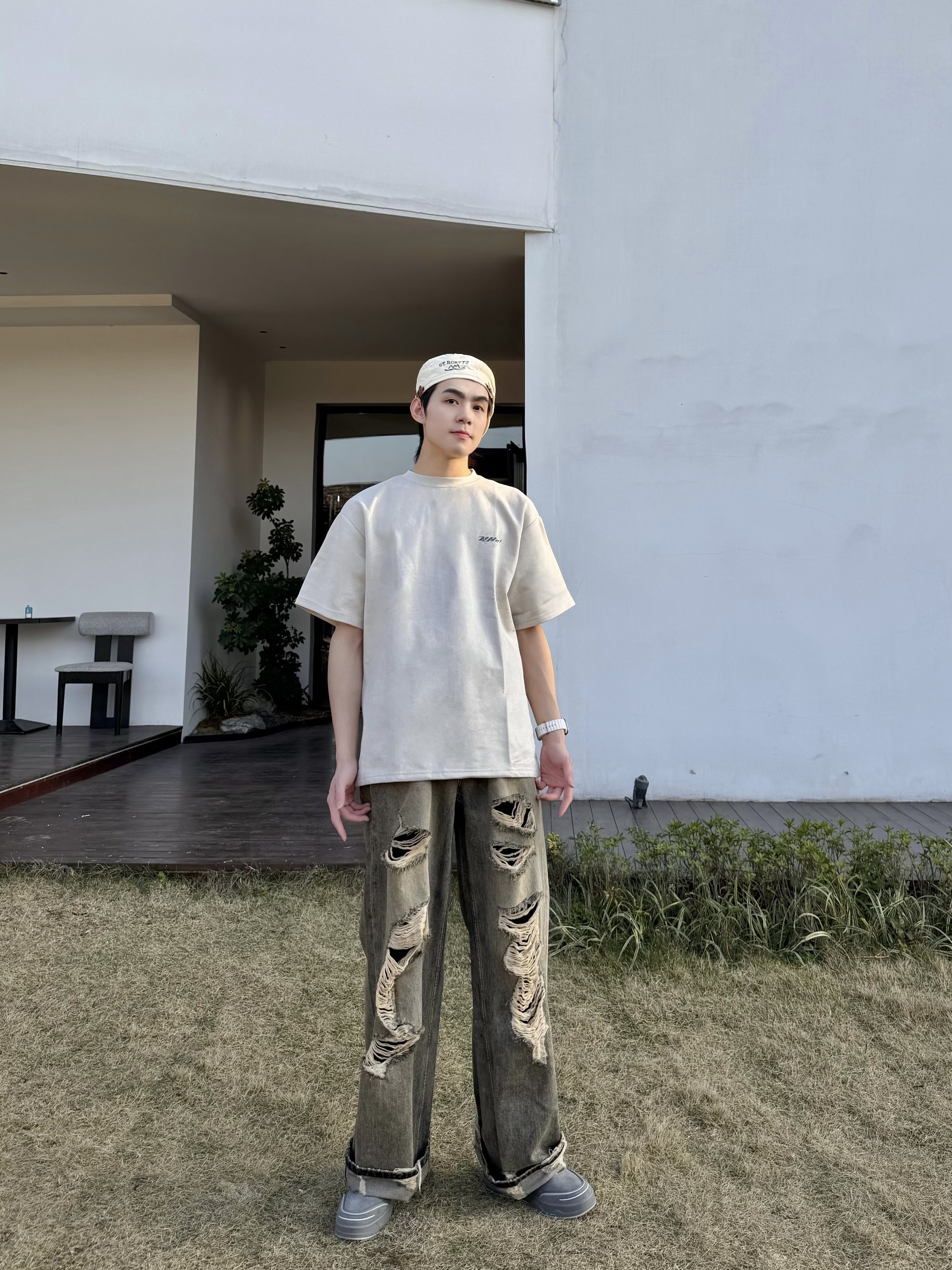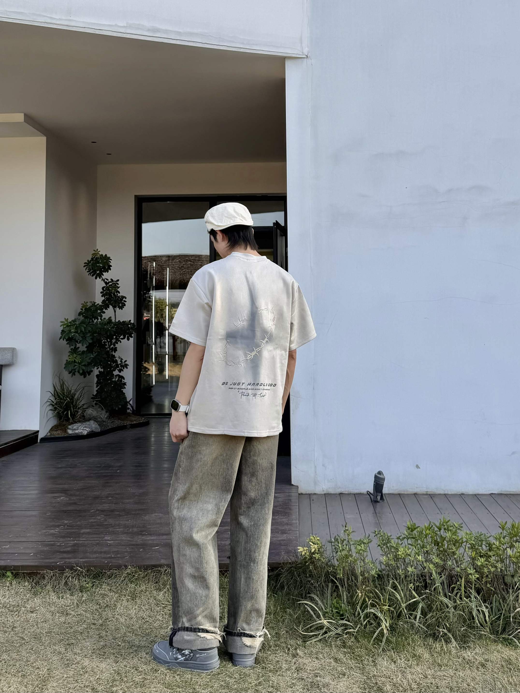 最近沉迷复古街头把夏天的短袖提前搬出来了 意外和这条破洞牛仔裤搭得一塌糊涂 米杏色T恤做旧的面料自带慵懒滤镜 背后的荆棘印花低调又有态度 单穿就很有味道随便搭条牛仔裤穿出松弛感 反季穿搭的快乐大概就是在微凉的天气里用一件短袖找回夏天的自由感 不用刻意追赶潮流舒服自在就是最好的风格