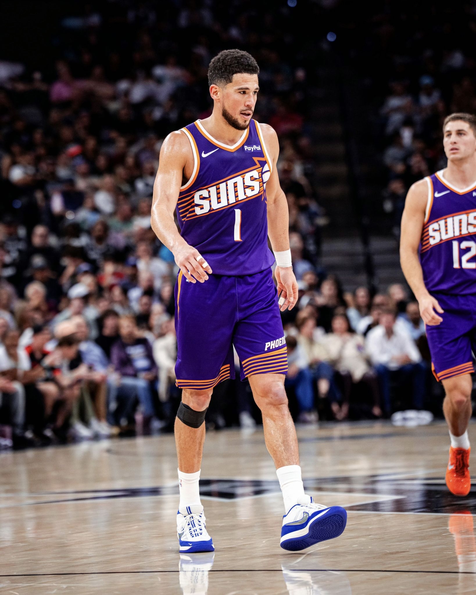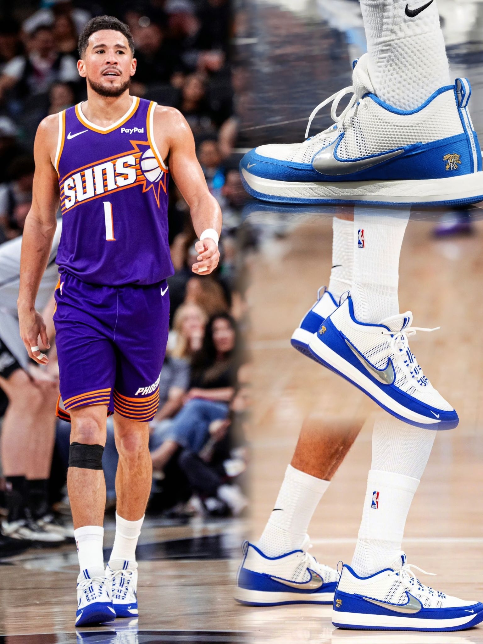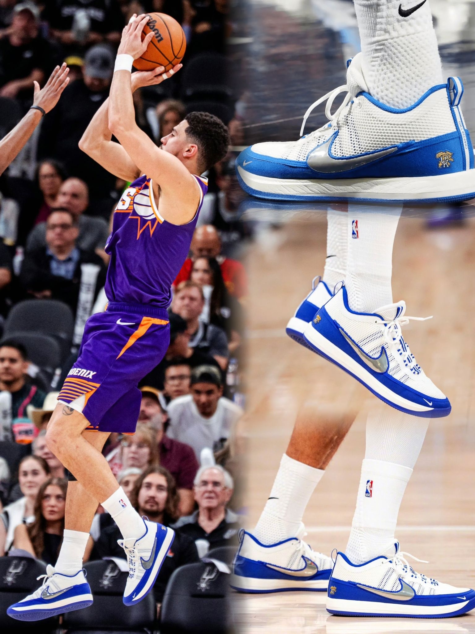 太阳1分惜败马刺,布克全场出战34分钟,21投8中砍下22分5助攻,场上还直接换起了球鞋。 一双Nike BOOK2 Warning Label全明星配色,亮眼吸睛;另一双Kentucky Wildcats肯塔基PE,经典白蓝梦回大学。 球虽然输了,但鞋是真没输,颜值和质感双双在线。 这两双神鞋,你更偏爱哪一款?