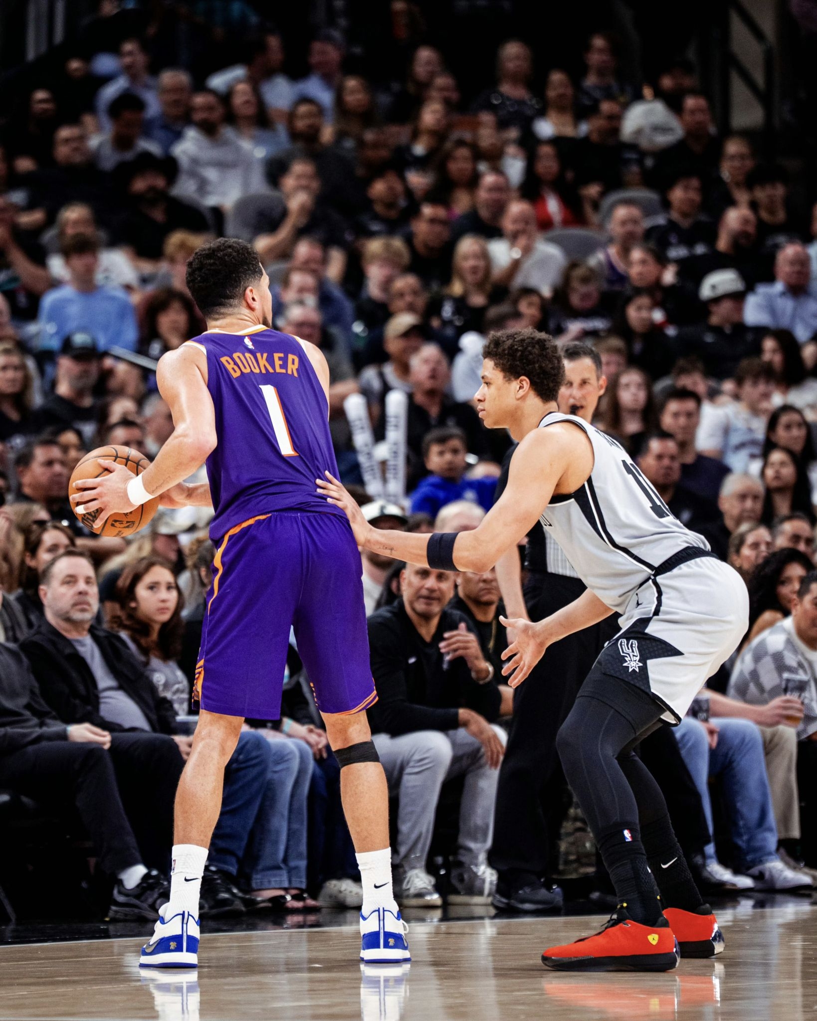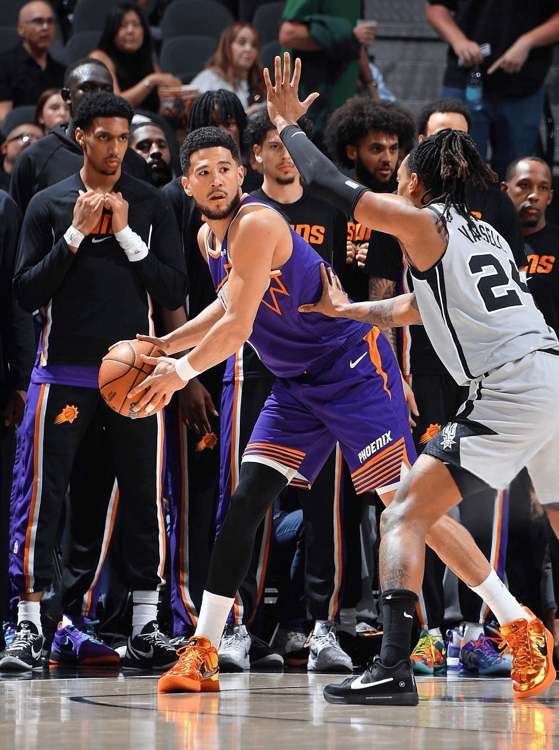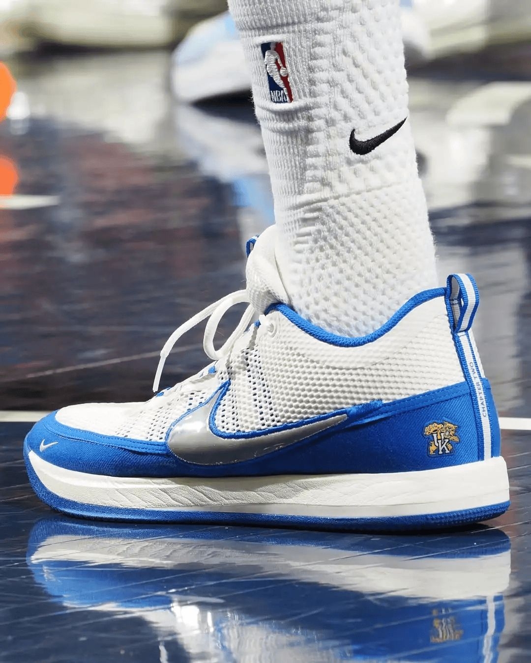 太阳1分惜败马刺,布克全场出战34分钟,21投8中砍下22分5助攻,场上还直接换起了球鞋。 一双Nike BOOK2 Warning Label全明星配色,亮眼吸睛;另一双Kentucky Wildcats肯塔基PE,经典白蓝梦回大学。 球虽然输了,但鞋是真没输,颜值和质感双双在线。 这两双神鞋,你更偏爱哪一款?